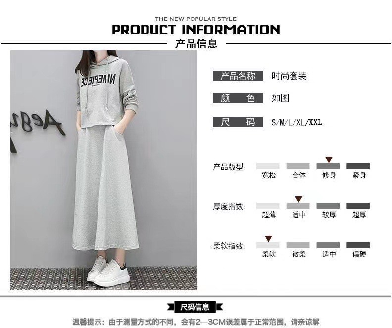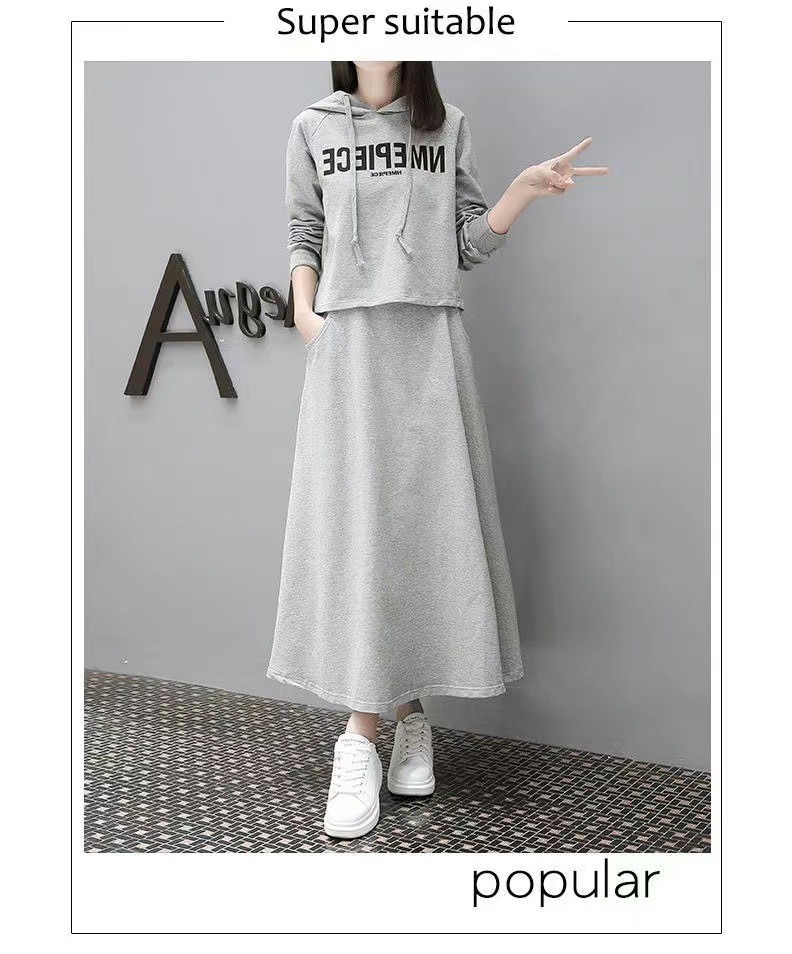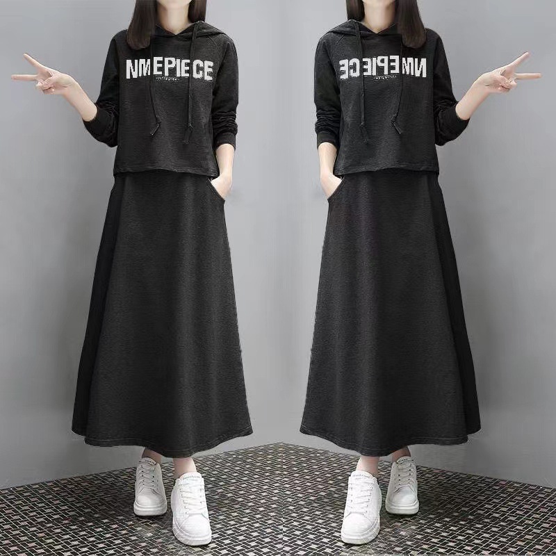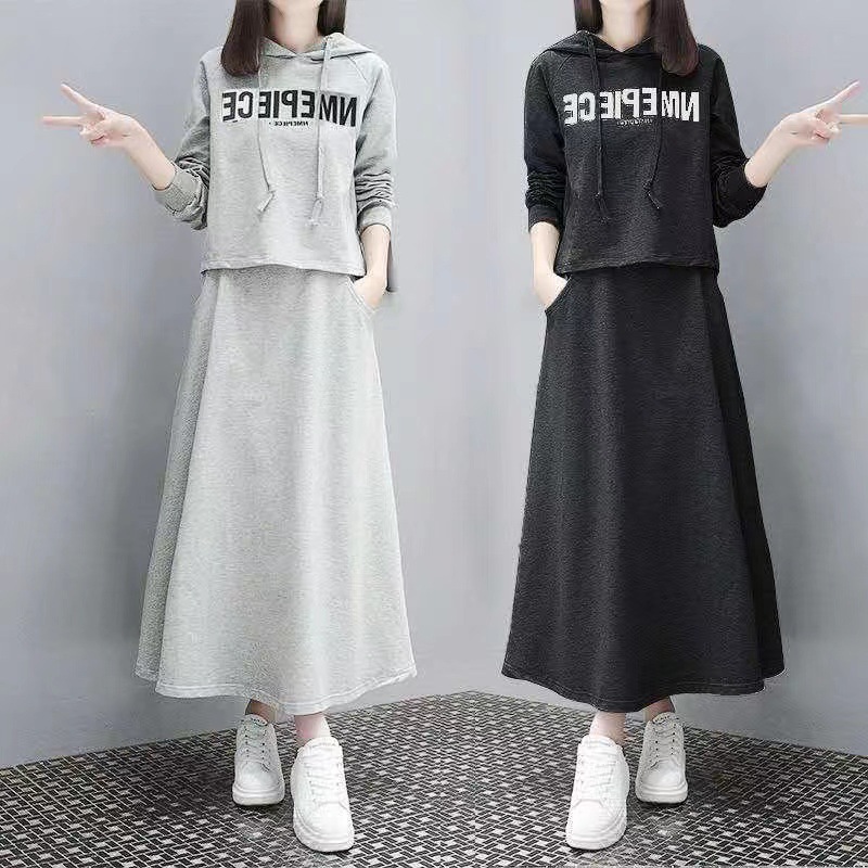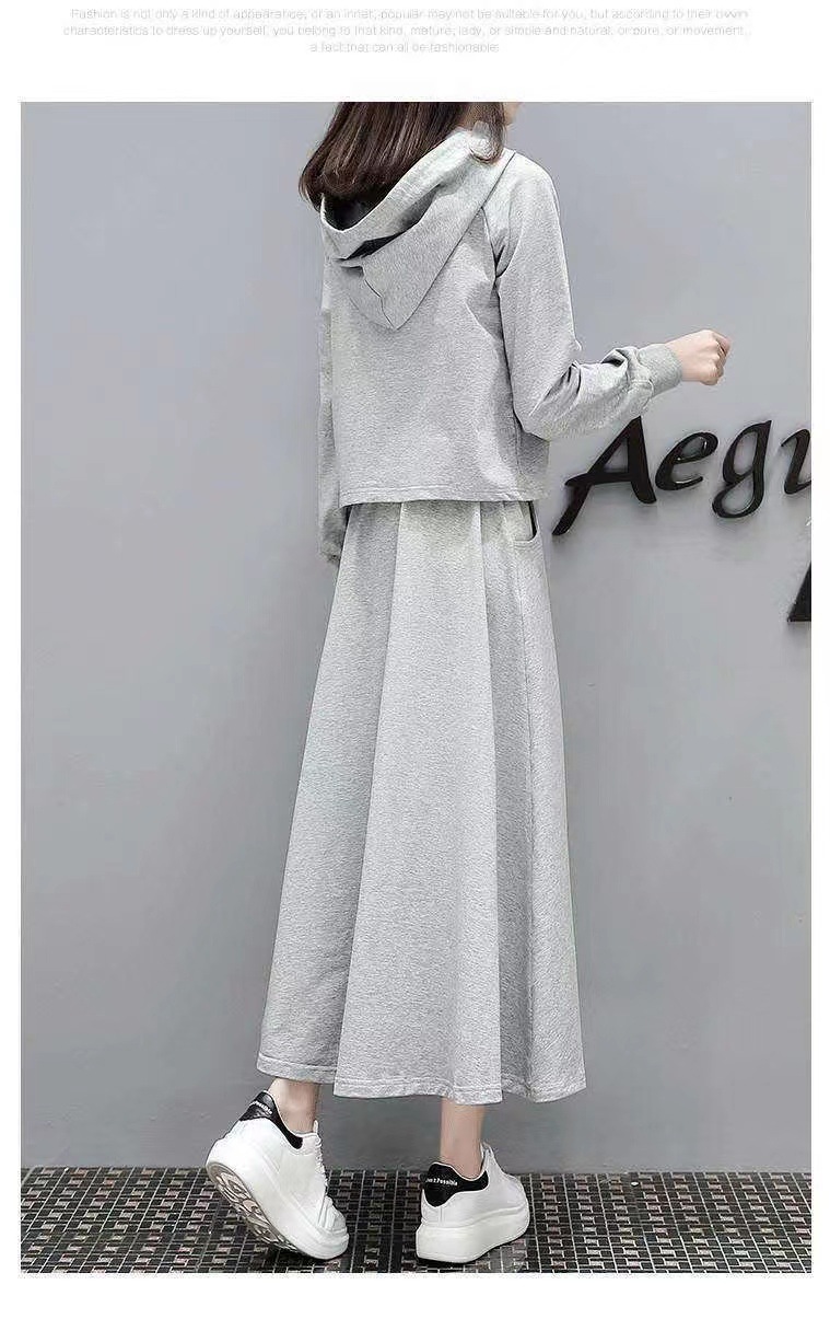 유럽 스테이션 봄과 가을 새로운 긴 스웨트 슈트 여성 스커트 캐주얼 한국 패션 세련된 투피스 세트 크로스보더스토어 가기