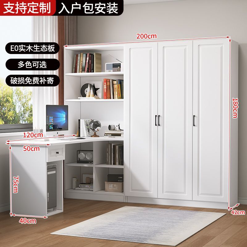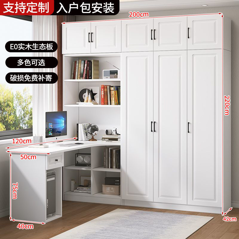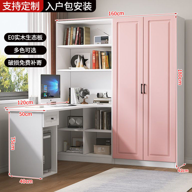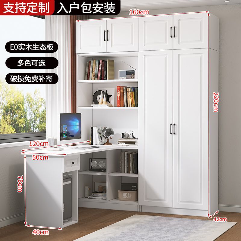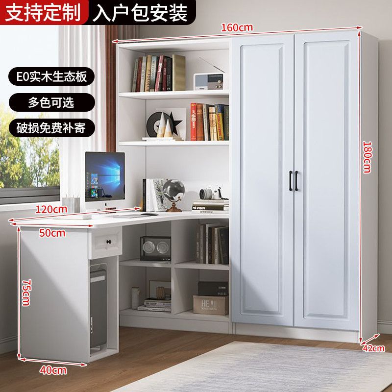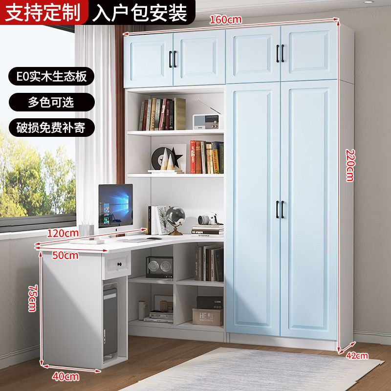 단단한 나무 옷장 책상 통합 조합 가정용 간단한 코너 학생 컴퓨터 책상 침실 옷장 결합 책장스토어 가기