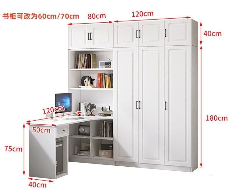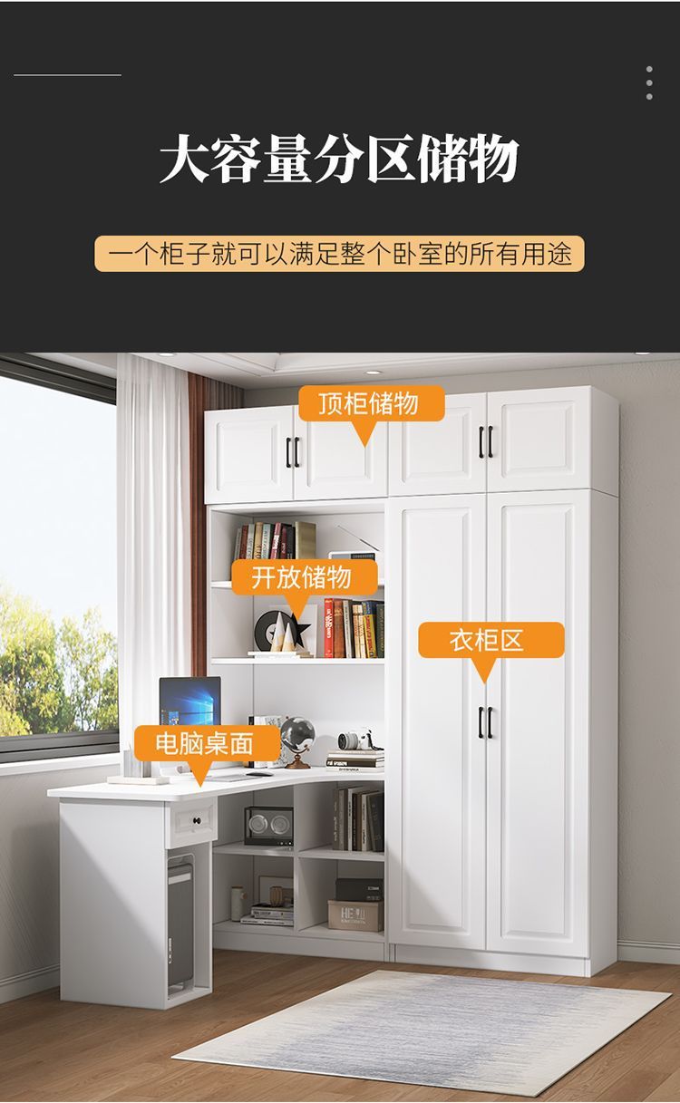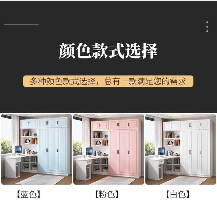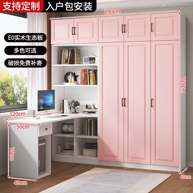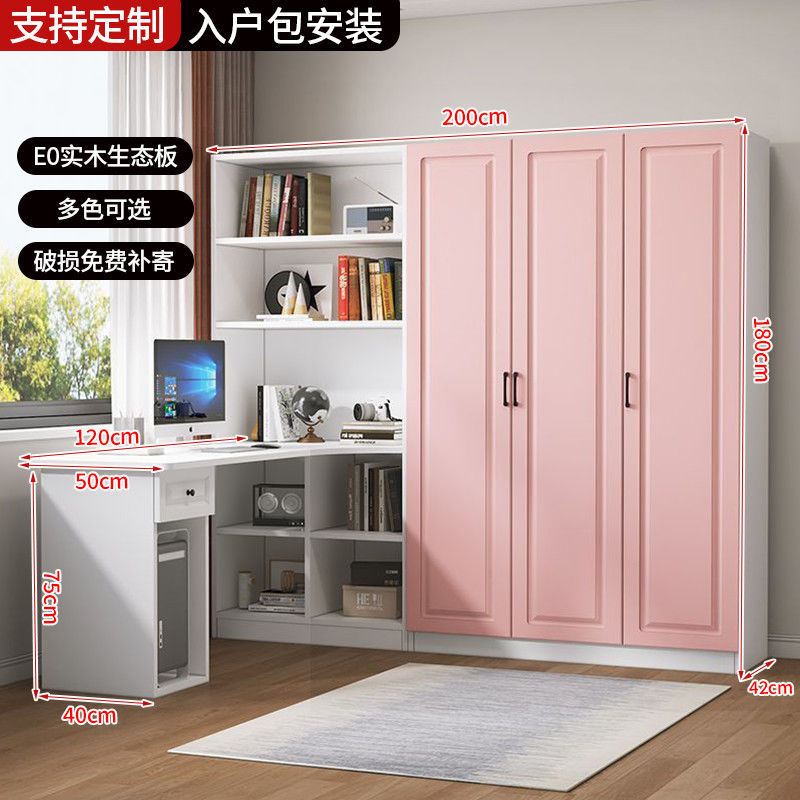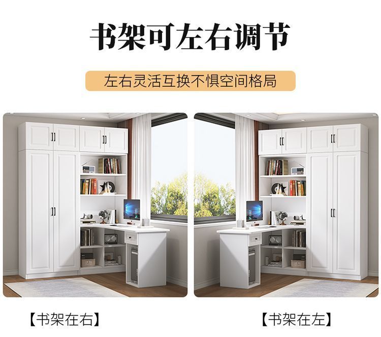단단한 나무 옷장 책상 통합 조합 가정용 간단한 코너 학생 컴퓨터 책상 침실 옷장 결합 책장스토어 가기