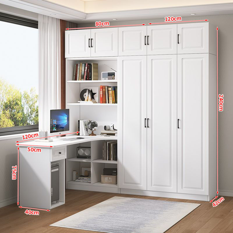 단단한 나무 옷장 책상 통합 조합 가정용 간단한 코너 학생 컴퓨터 책상 침실 옷장 결합 책장