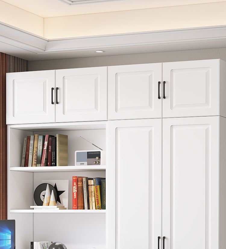 • 흰색 2.4M 높이 3도어 + 책상 + 상단 캐비닛