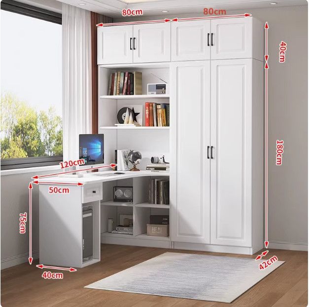 • 흰색 2.4M 높이 문 2개 + 책상 + 상단 캐비닛
