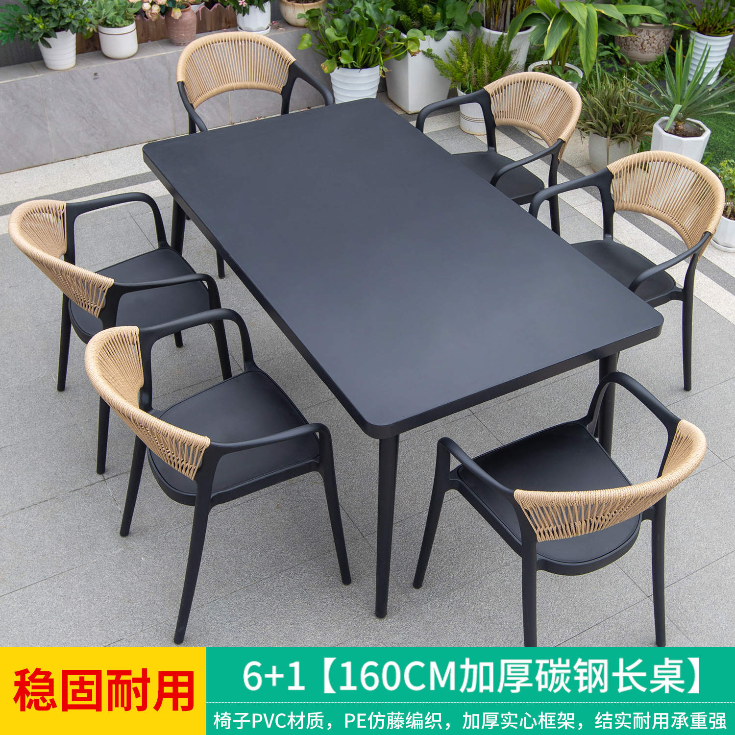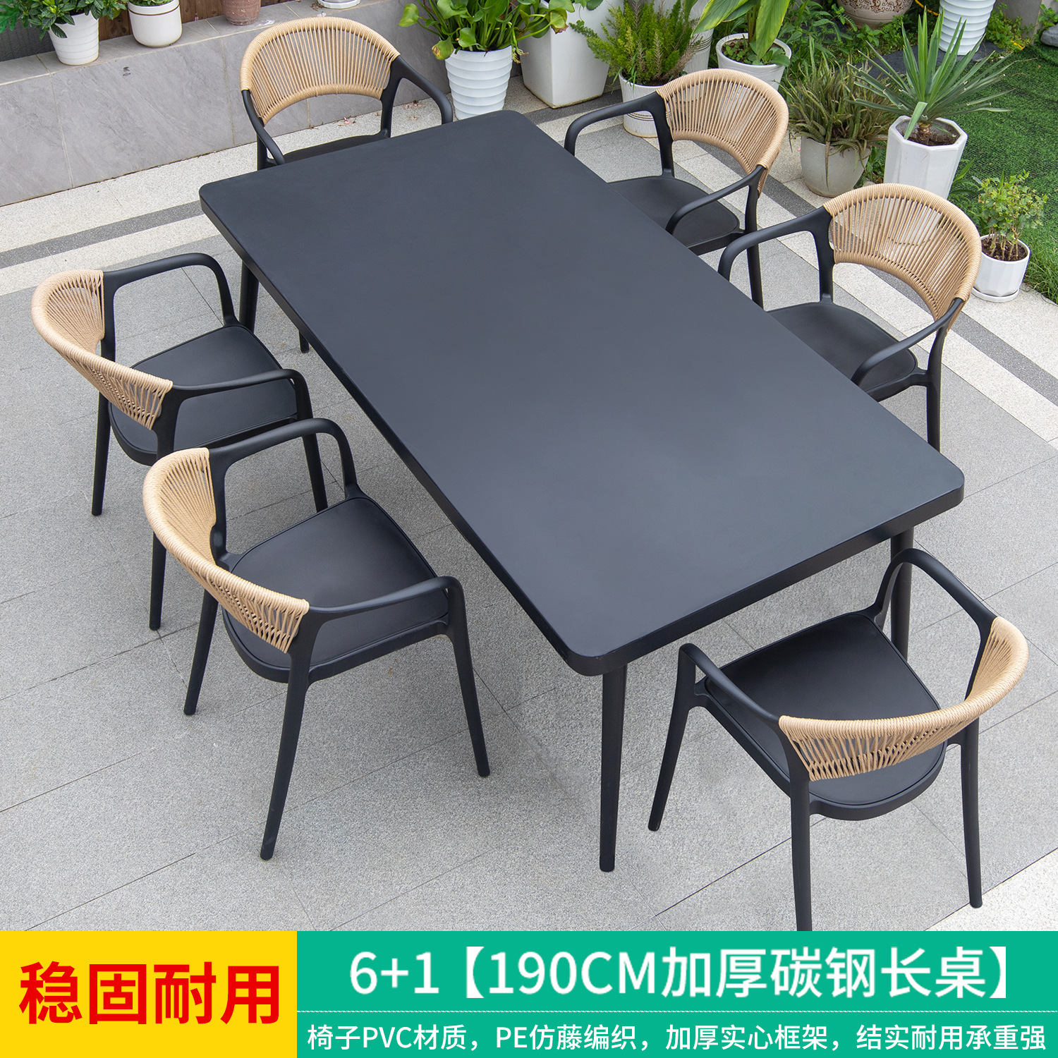 • 만라 의자 8개 + 210X100 두꺼운 탄소강 긴 테이블