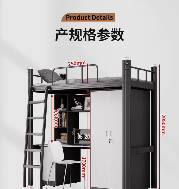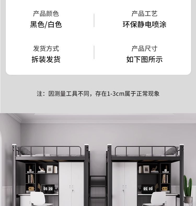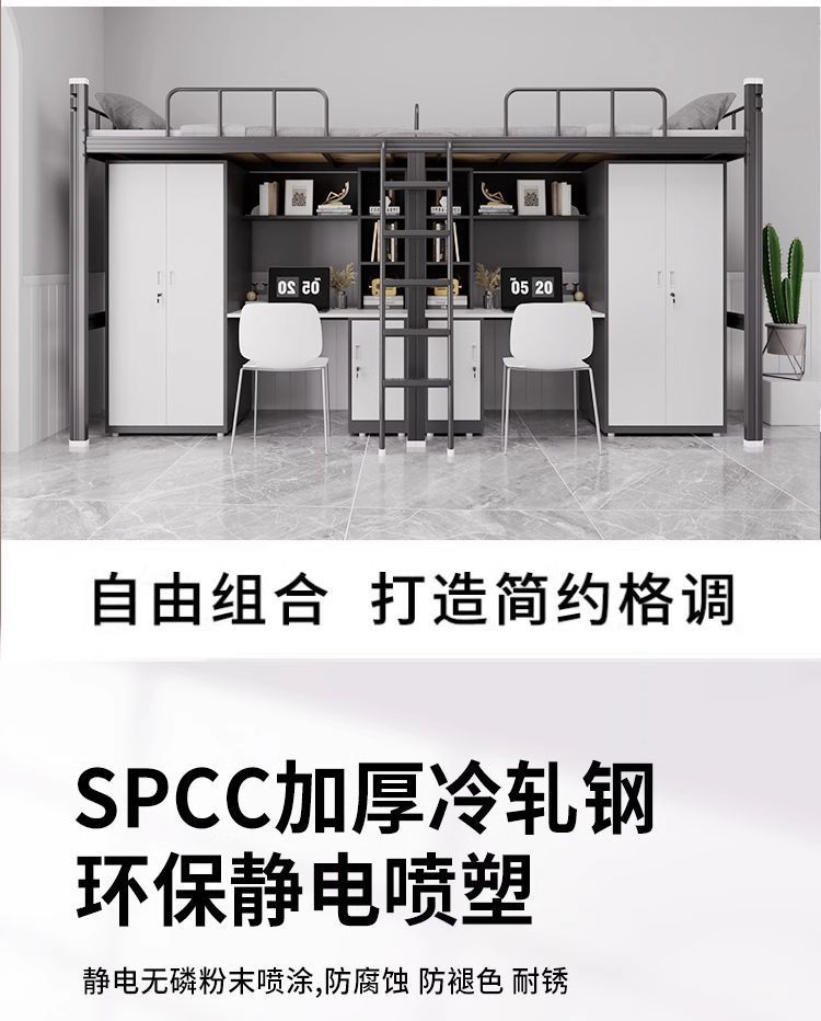 아파트 침대 아래 테이블 조합 침대 학생 기숙사 높은 침대 바닥 사다리 철제 이층 직원 새 침대