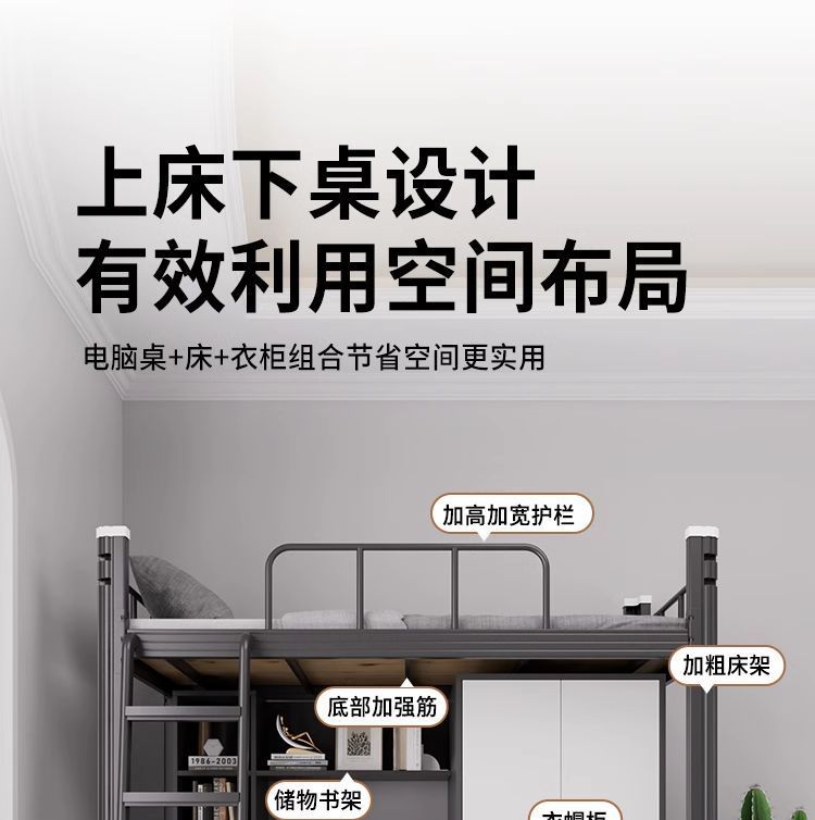 아파트 침대 아래 테이블 조합 침대 학생 기숙사 높은 침대 바닥 사다리 철제 이층 직원 새 침대스토어 가기
