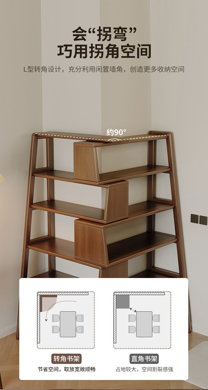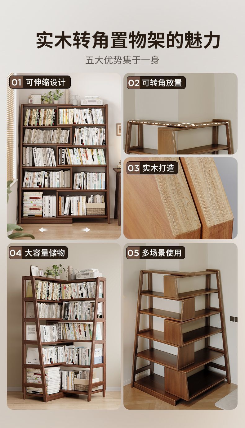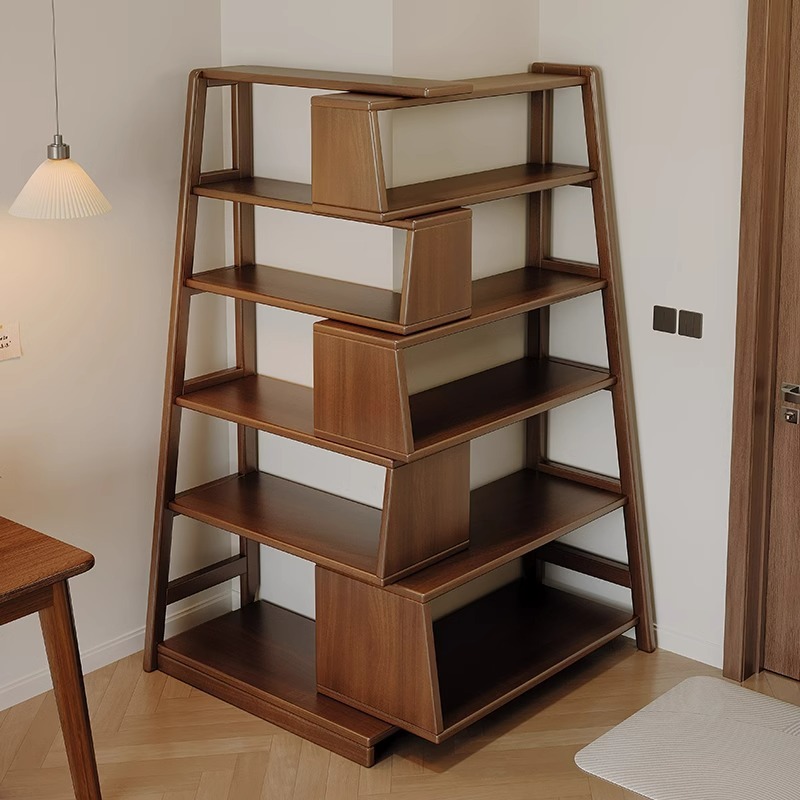 단단한 나무 선반 다기능 코너 다층 책장 바닥에서 벽까지 가정용 개폐식 수납 선반