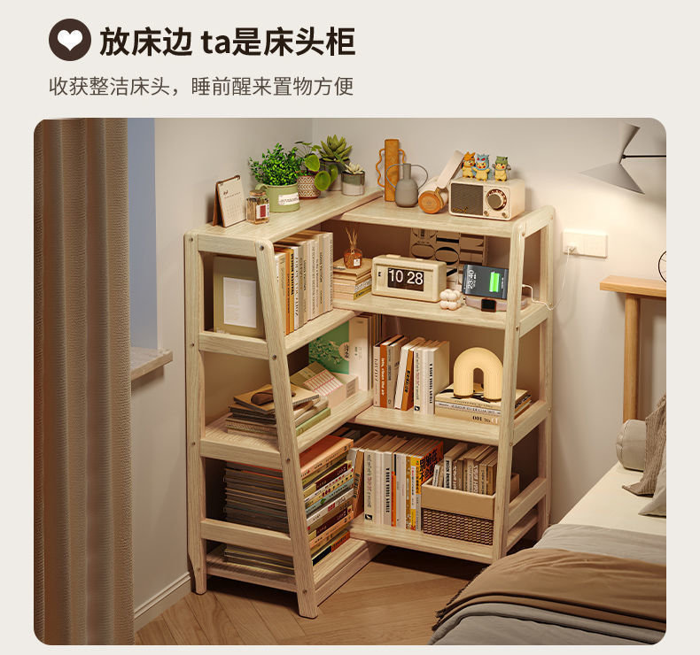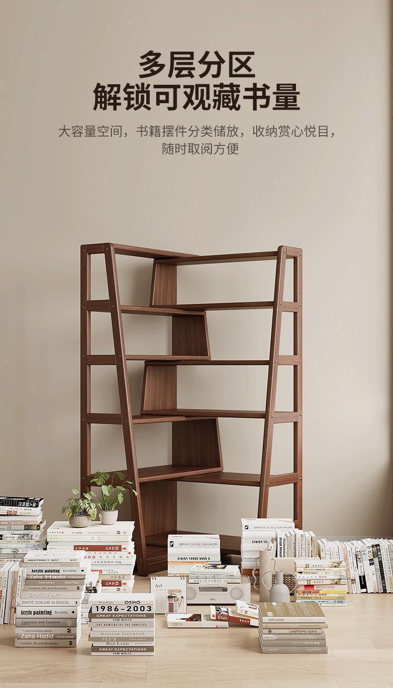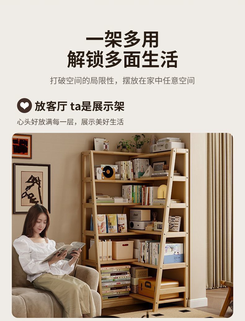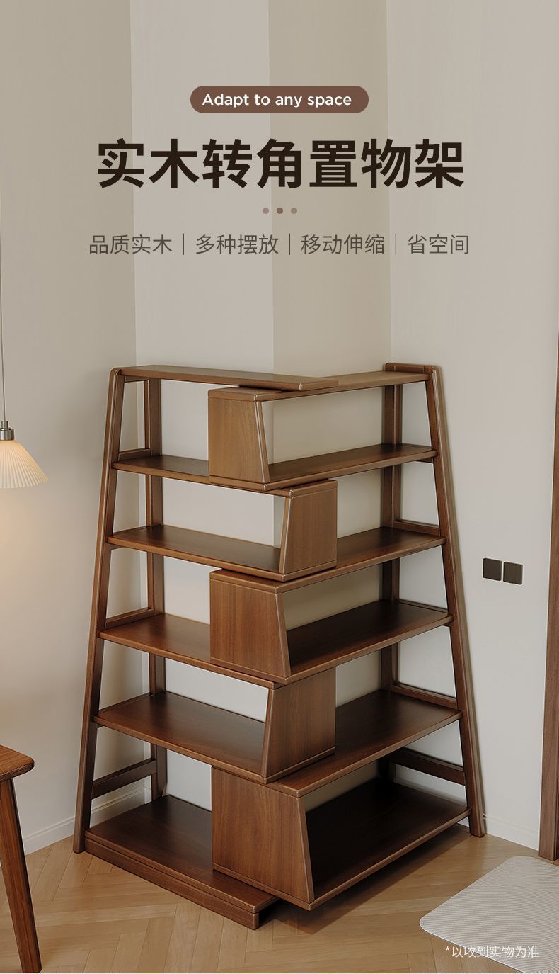 단단한 나무 선반 다기능 코너 다층 책장 바닥에서 벽까지 가정용 개폐식 수납 선반
