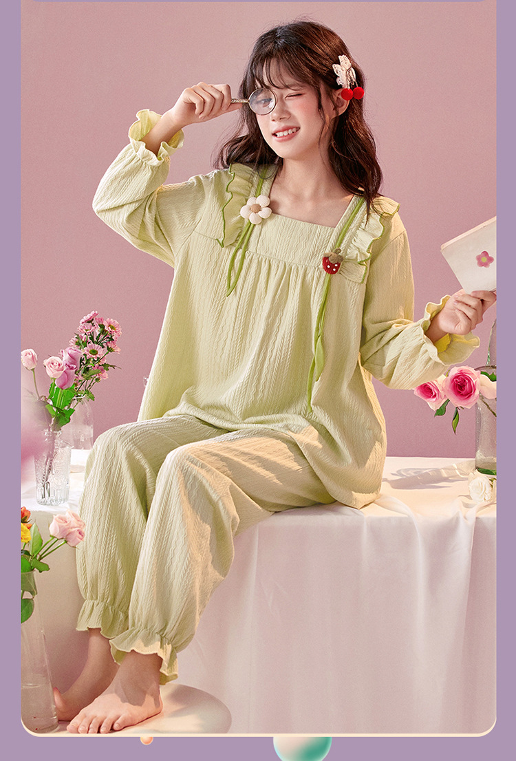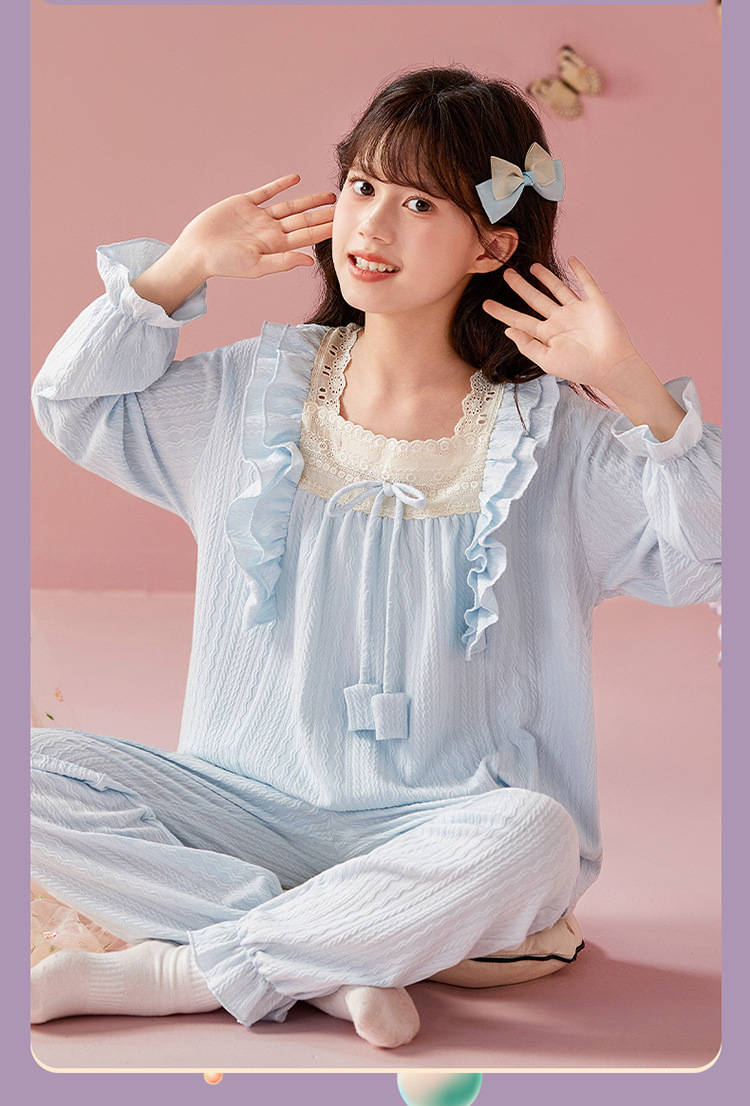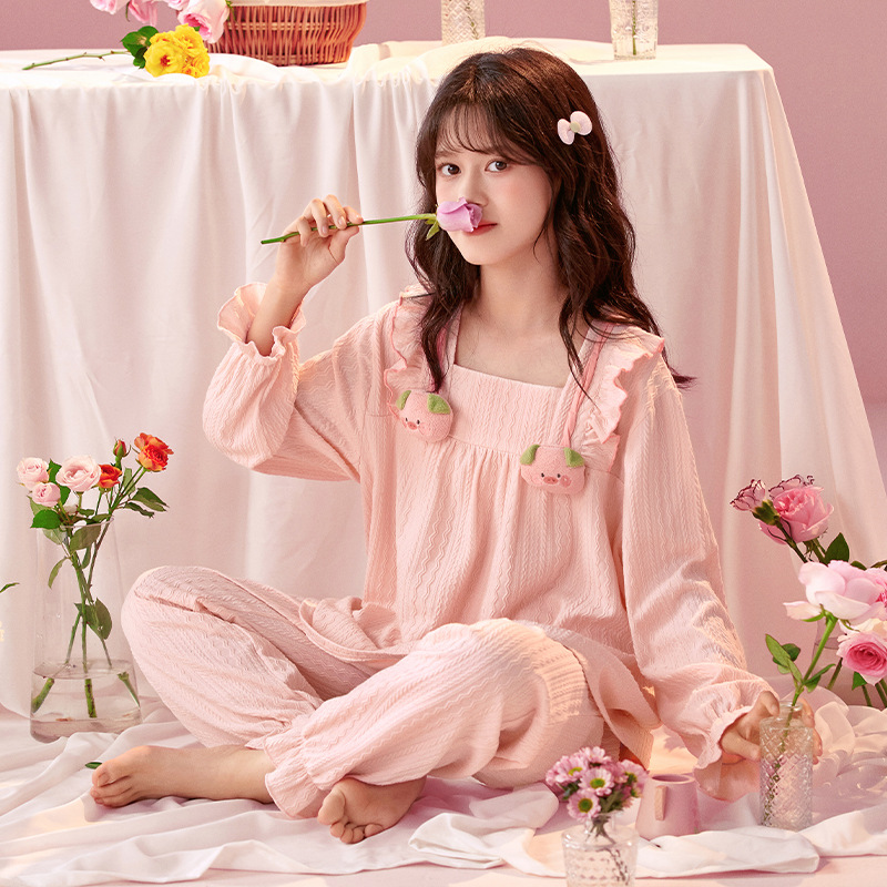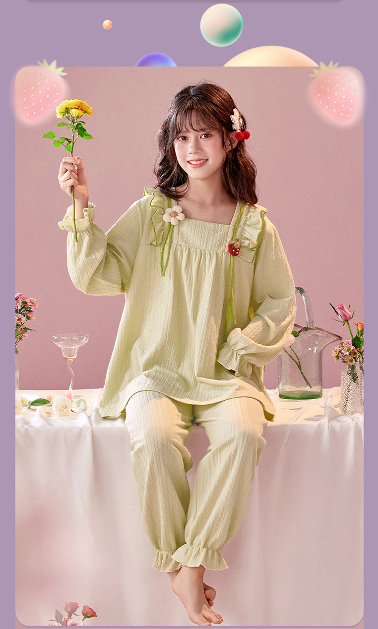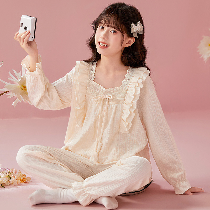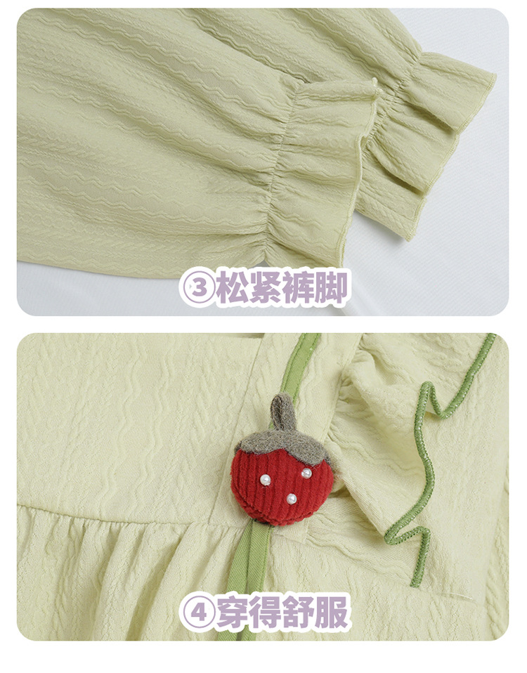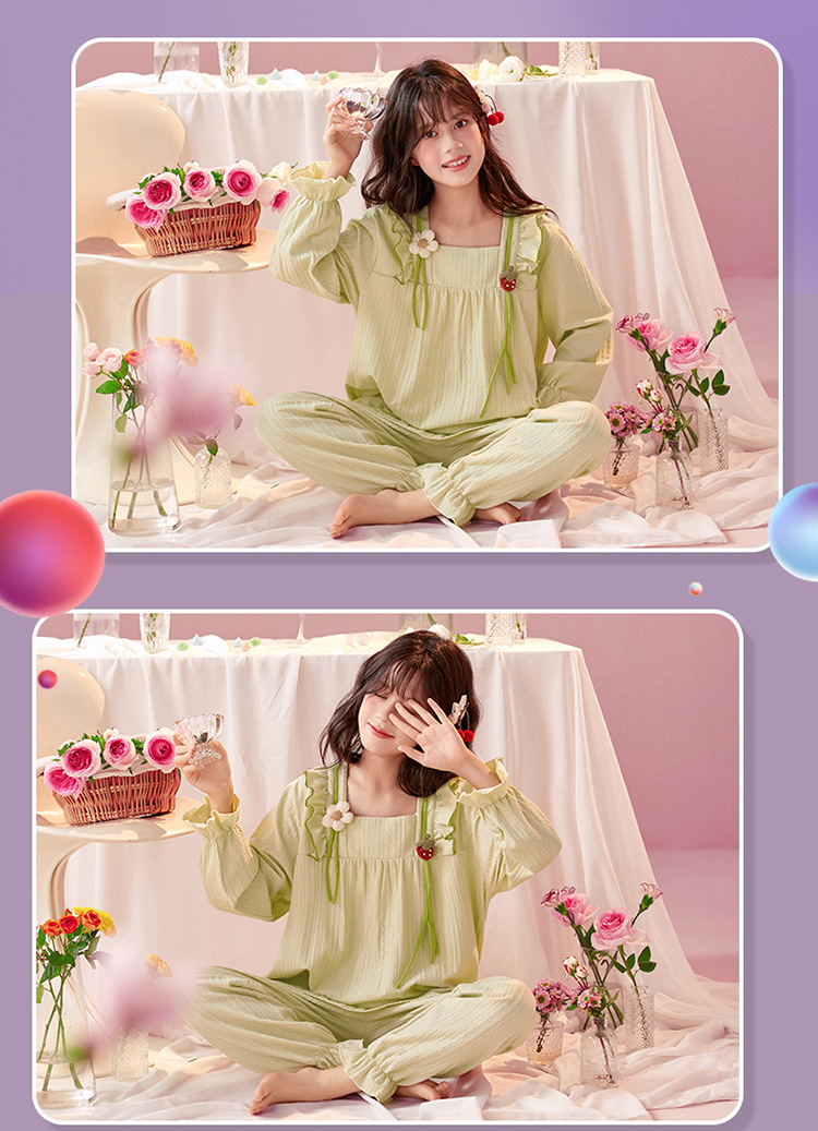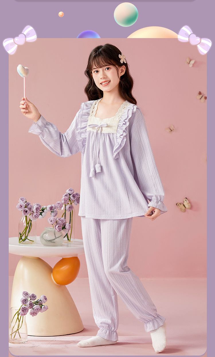 여아용 면 잠옷, 가슴 패드가 있는 어린이 봄, 가을 긴팔 공주 스타일 가정복, 부모-자식 중대형 아동복스토어 가기