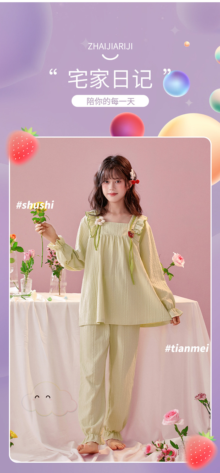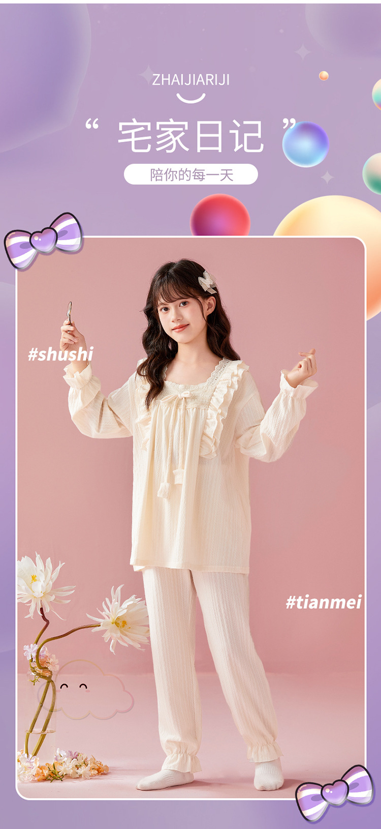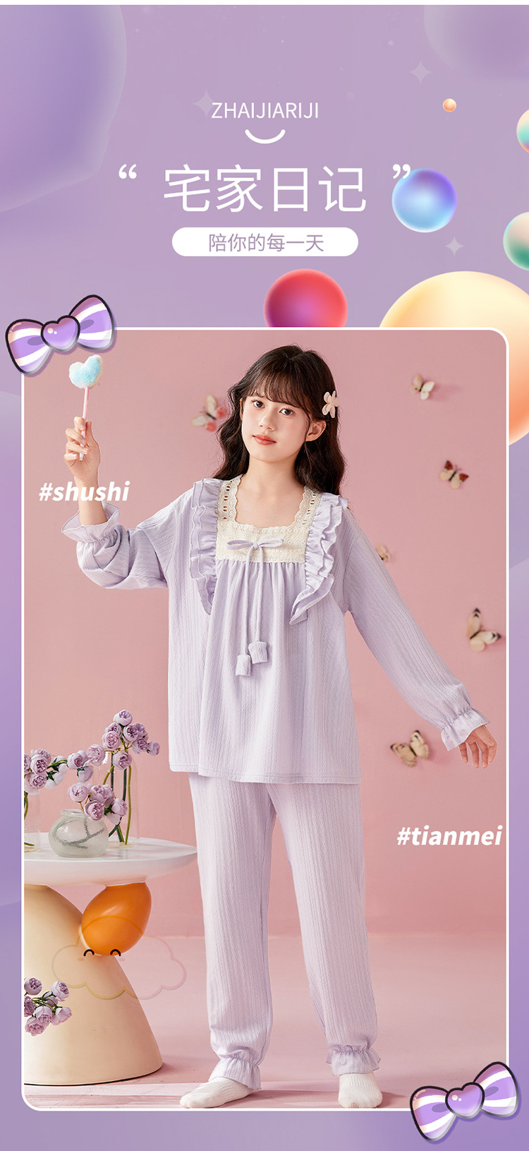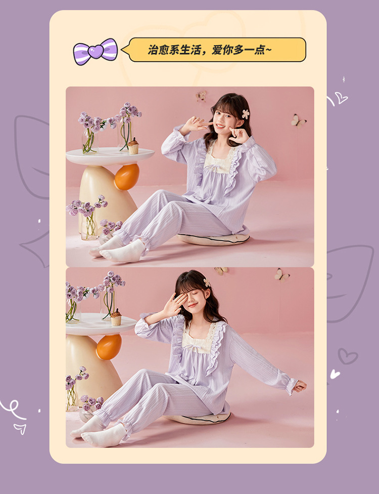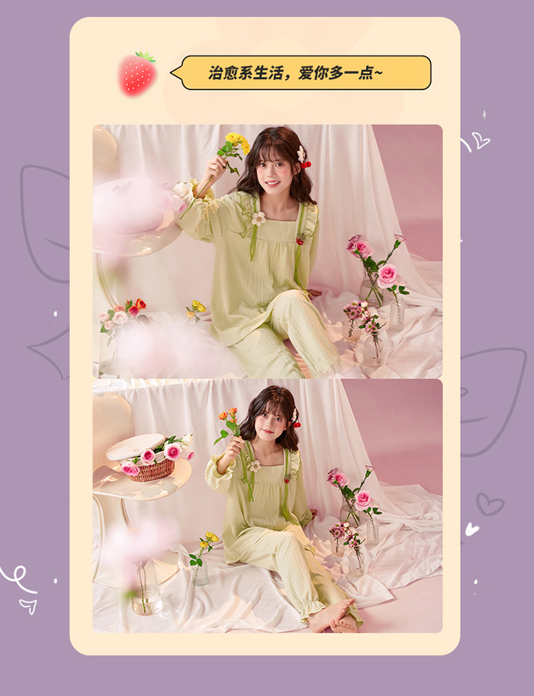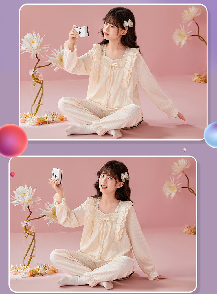 여아용 면 잠옷, 가슴 패드가 있는 어린이 봄, 가을 긴팔 공주 스타일 가정복, 부모-자식 중대형 아동복스토어 가기