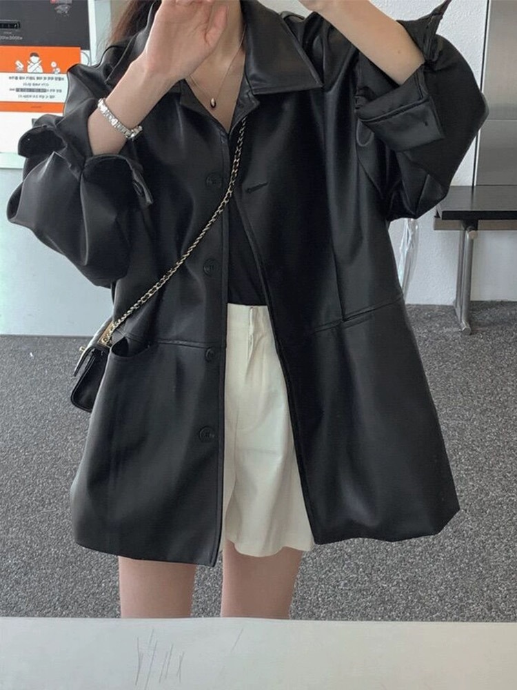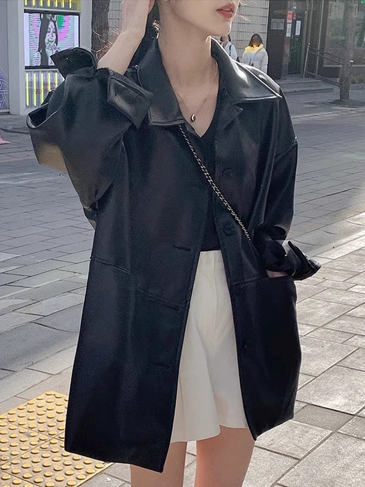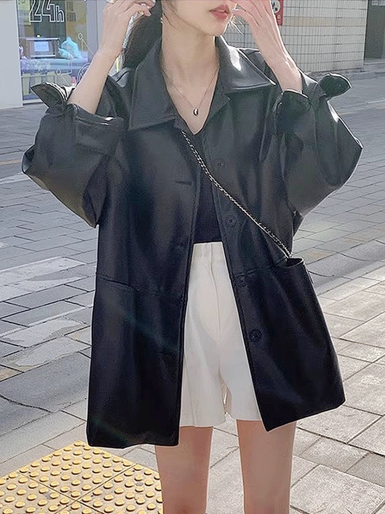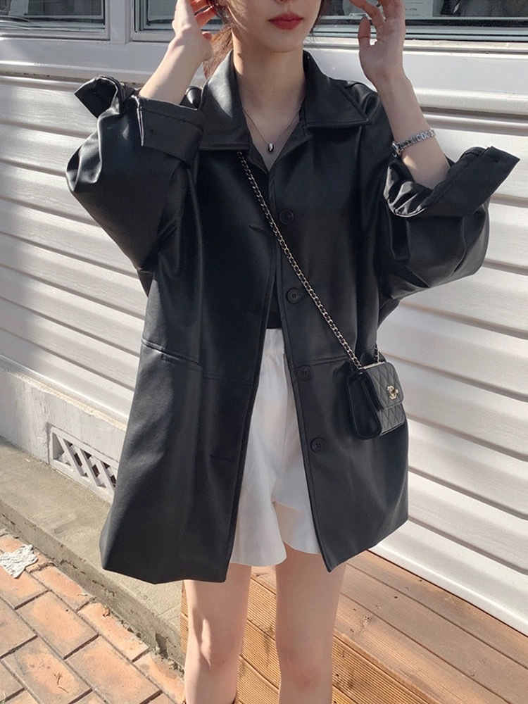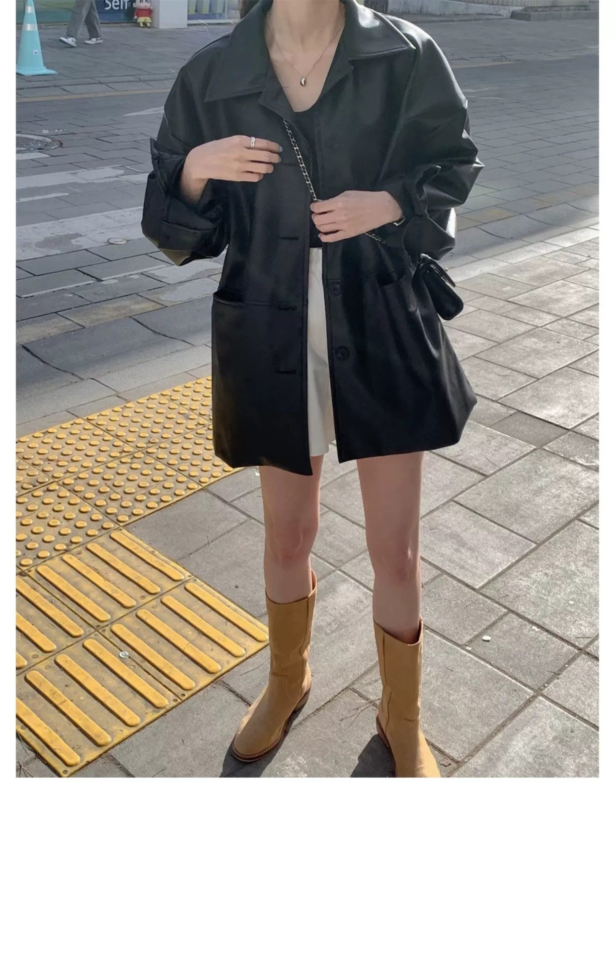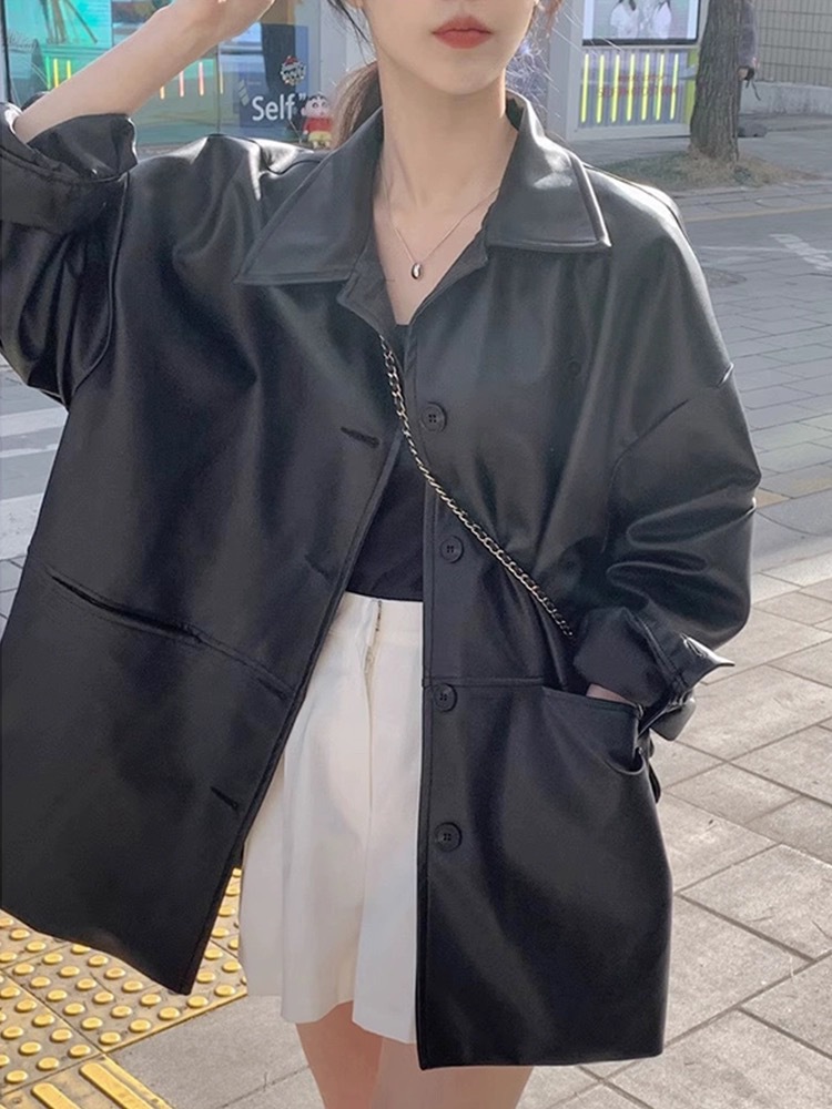 블랙 가죽 자켓 여성 봄 자켓 2025 새로운 홍콩 스타일 핫 스타일 디자인 아메리칸 레트로 하이 엔드 소형스토어 가기