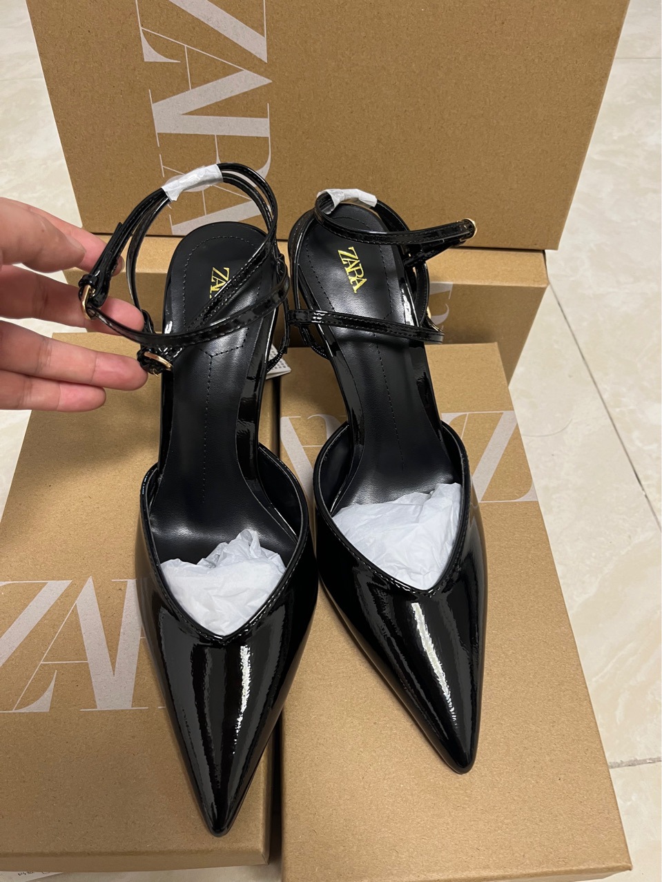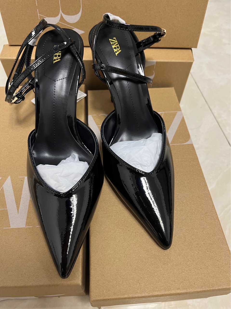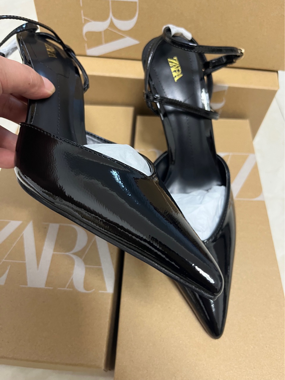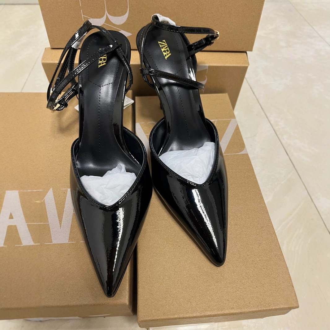 재고 있음 za 여성 신발 2025 봄과 가을 새로운 패션 하이힐 틈새 프랑스 스타일 발가락 샌들 뾰족한 신발스토어 가기