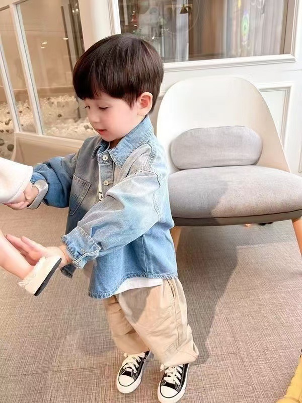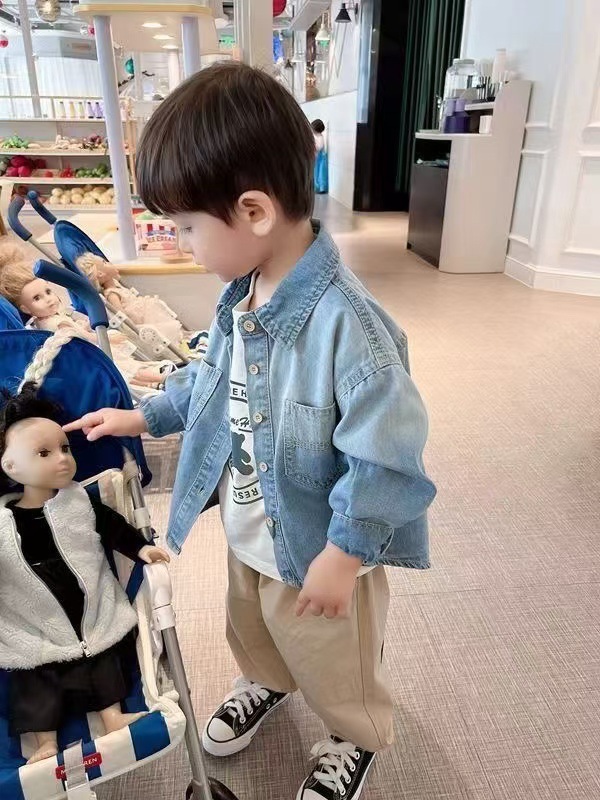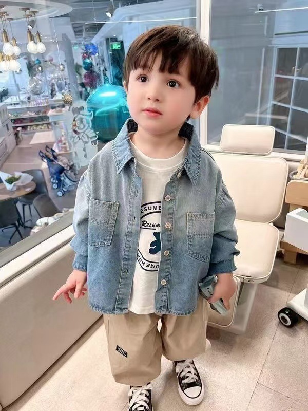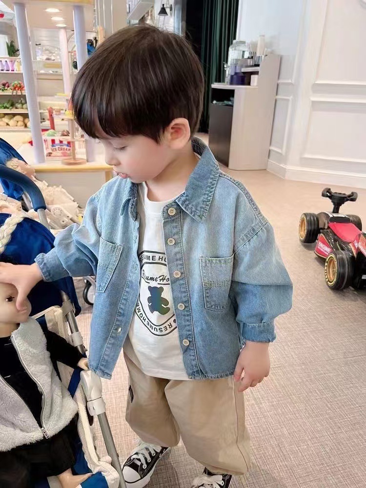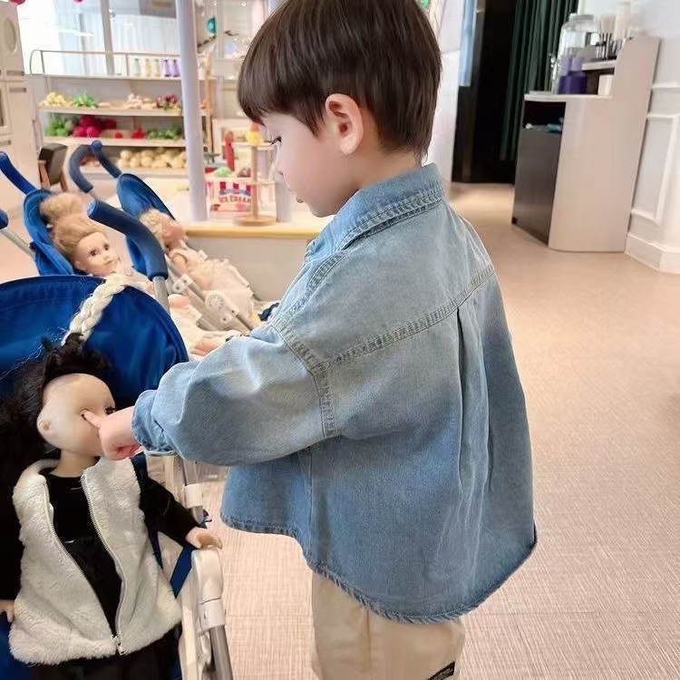 남아용 긴팔 셔츠, 봄, 가을 데님 재킷, 아동용 가디건, 남아용 다용도 데님 상의, 트렌디스토어 가기