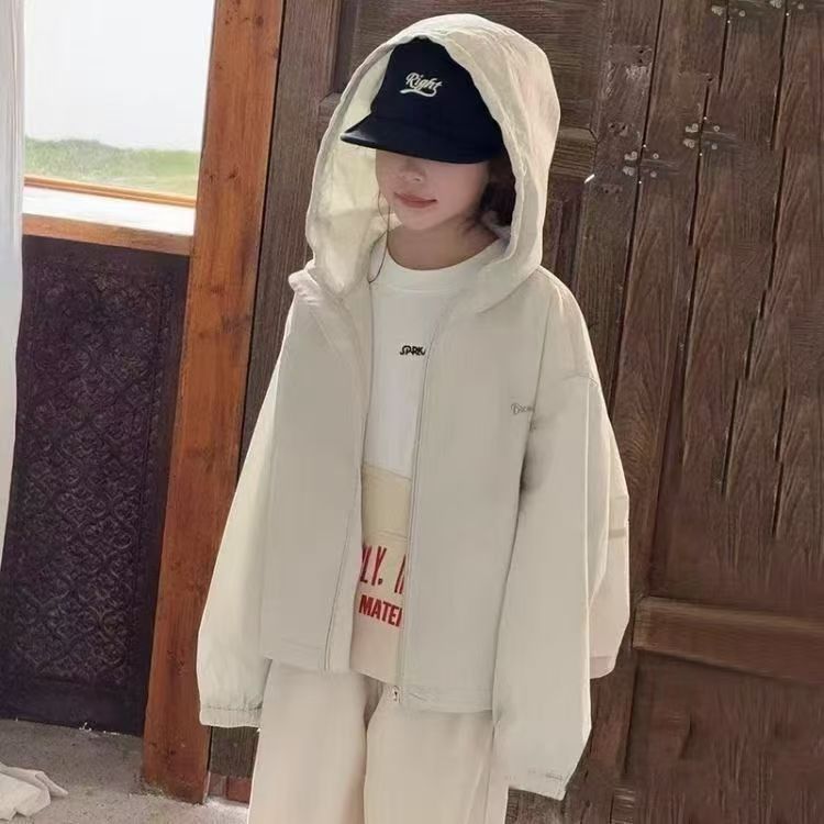 아동복, 봄 여름 코트, 에어컨 의류, 여아용 지퍼 셔츠, 신상 아동 캐주얼 상의, 중대형 아동용 루즈한 자외선 차단 의류스토어 가기