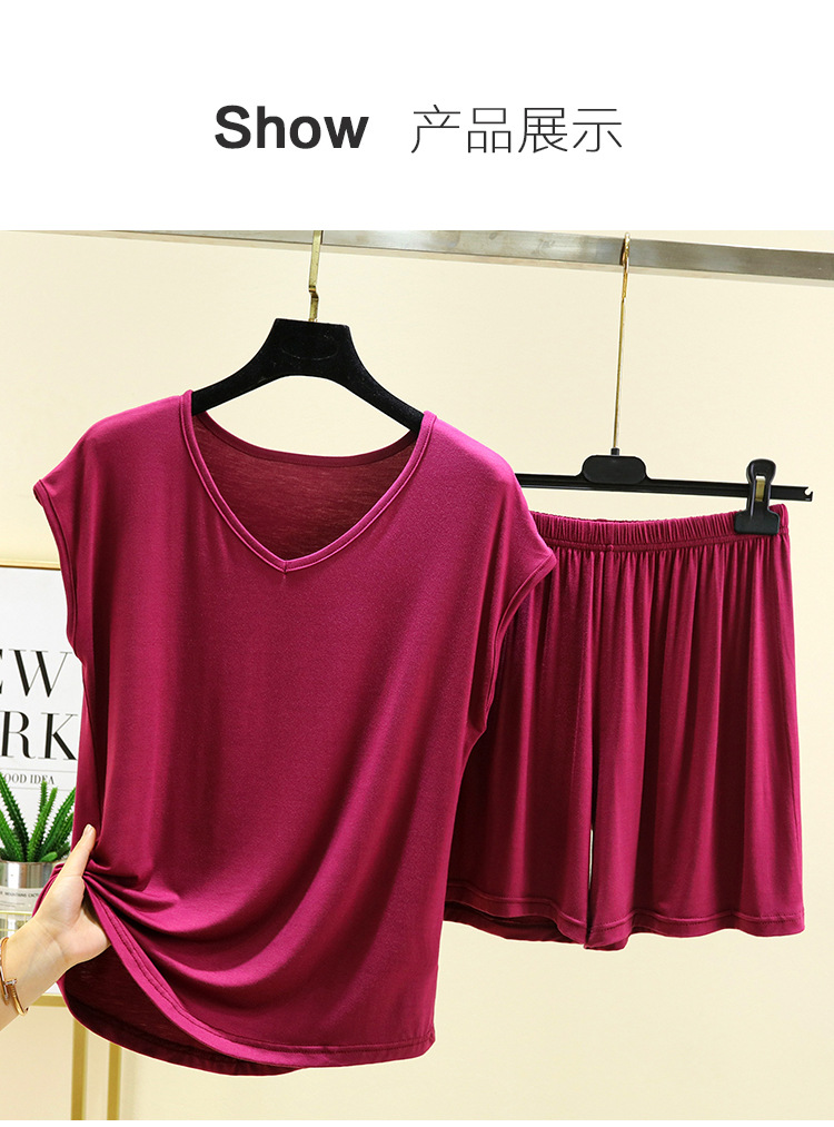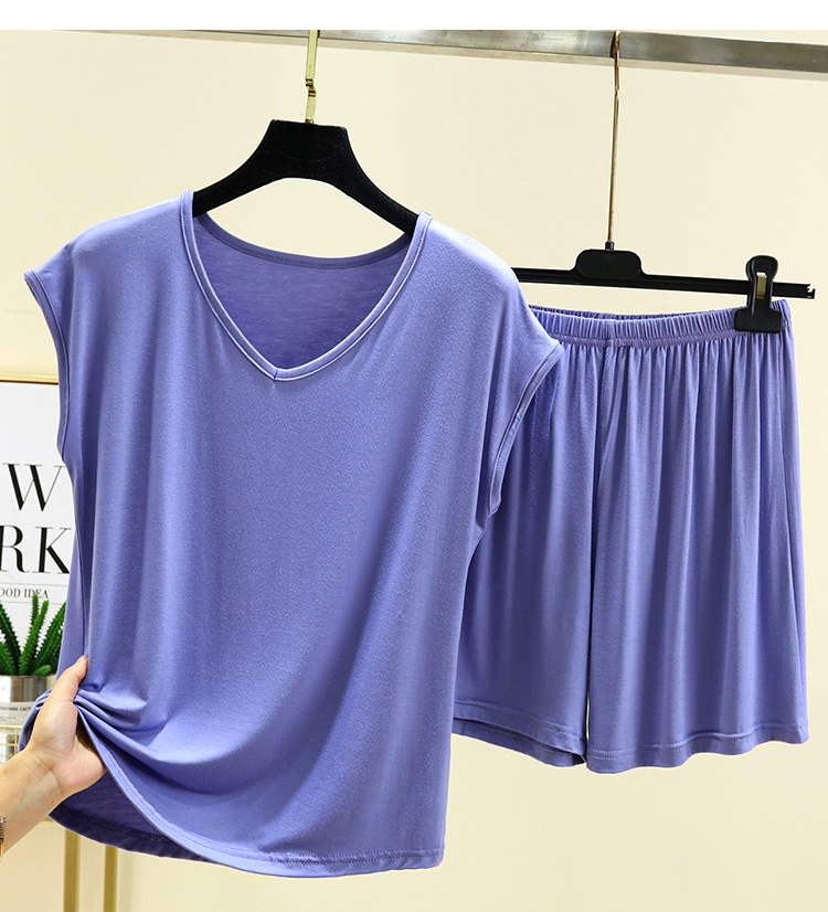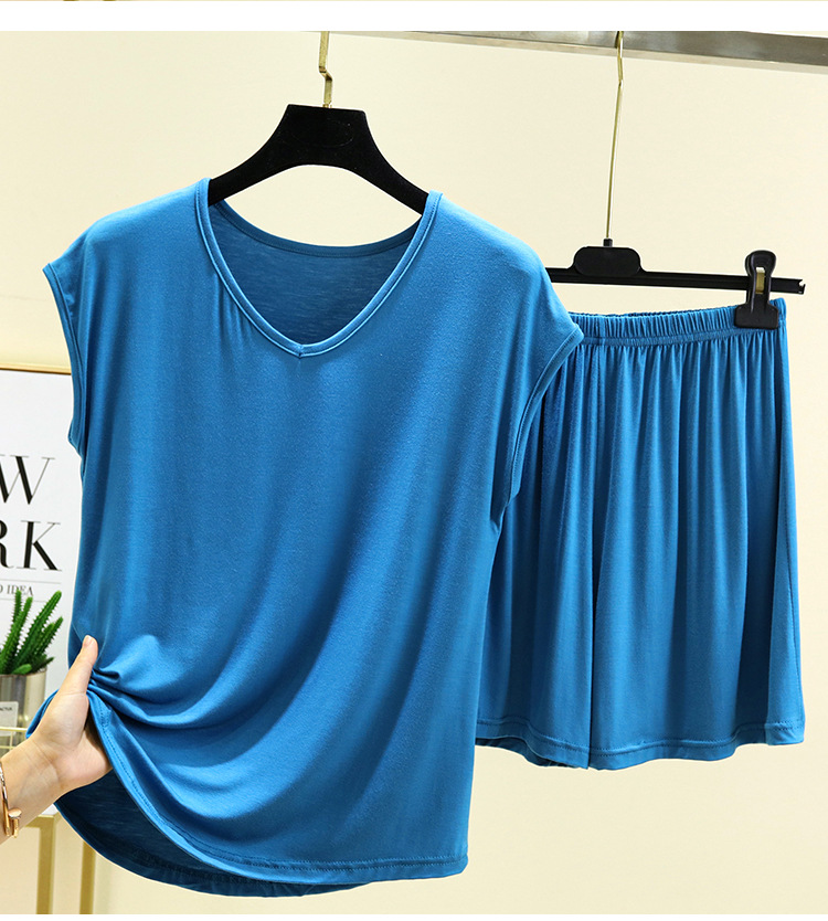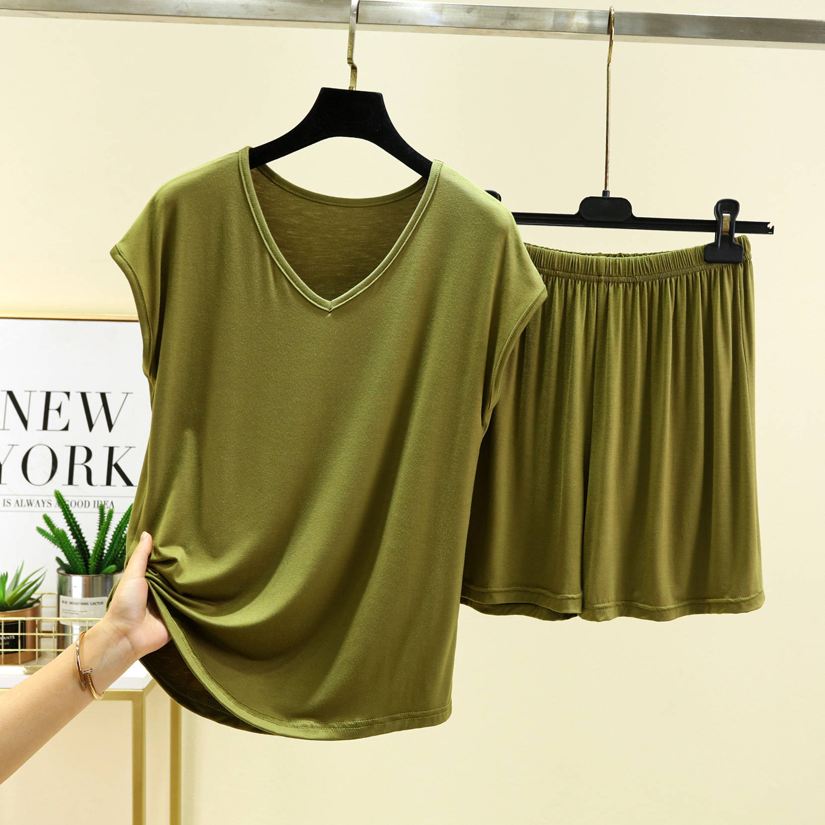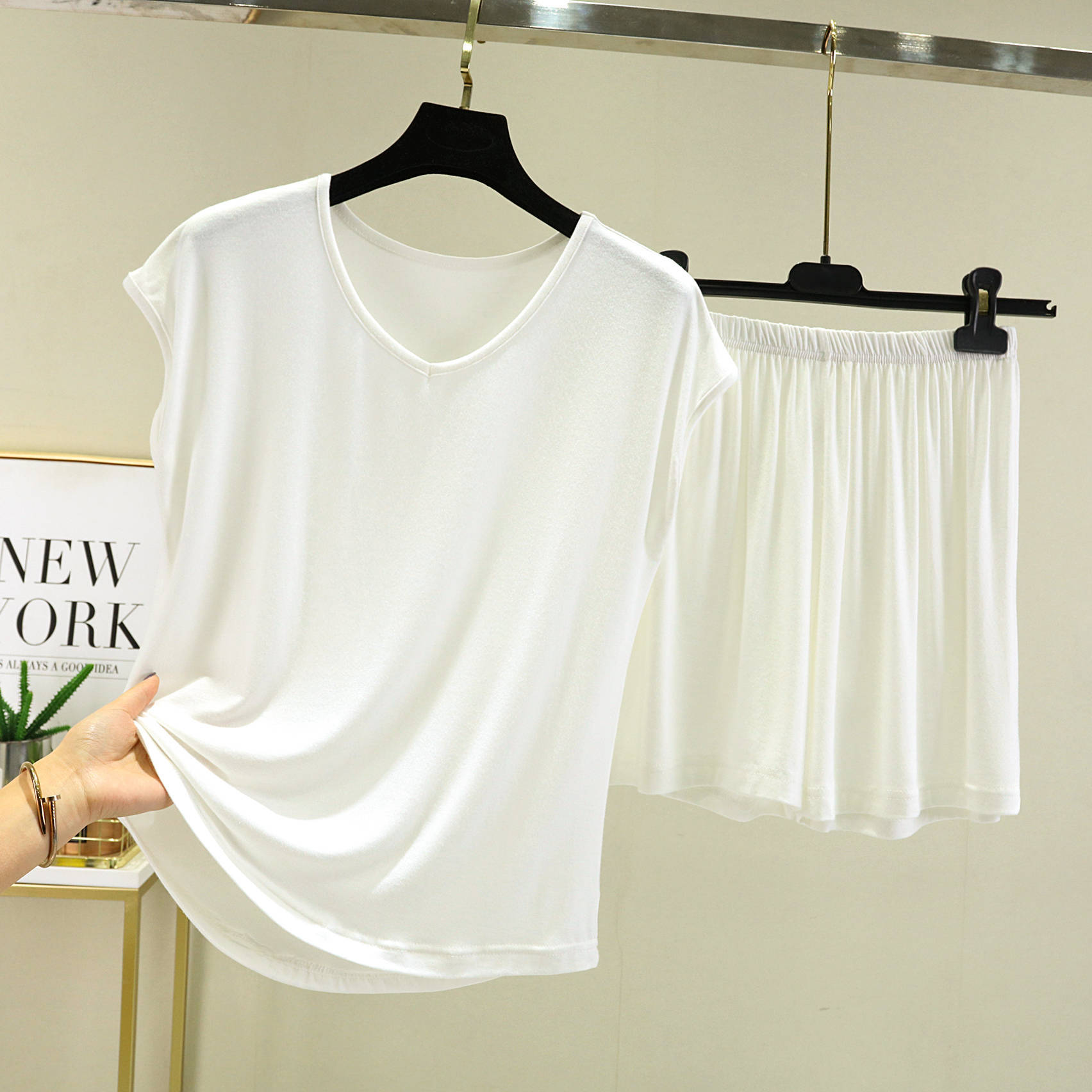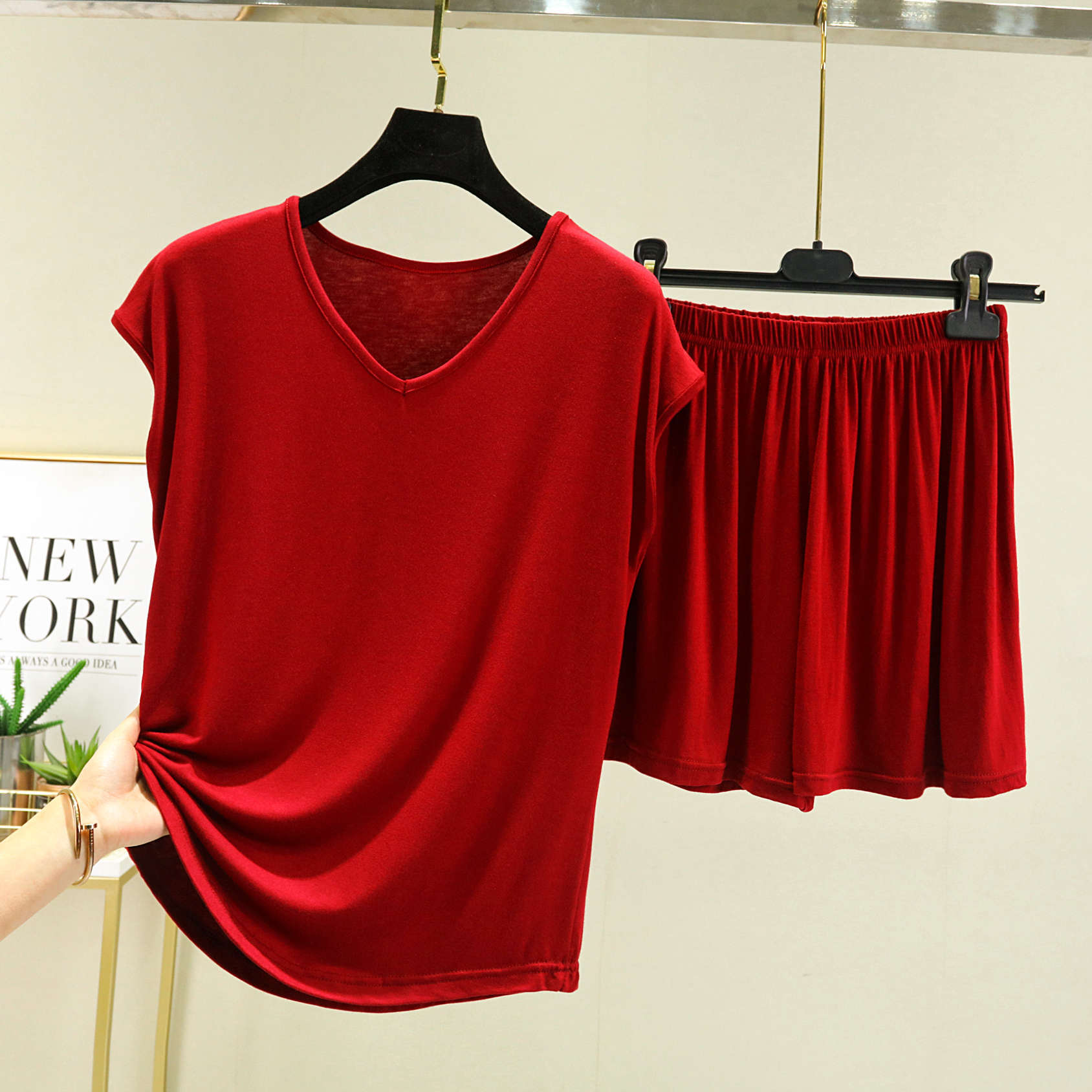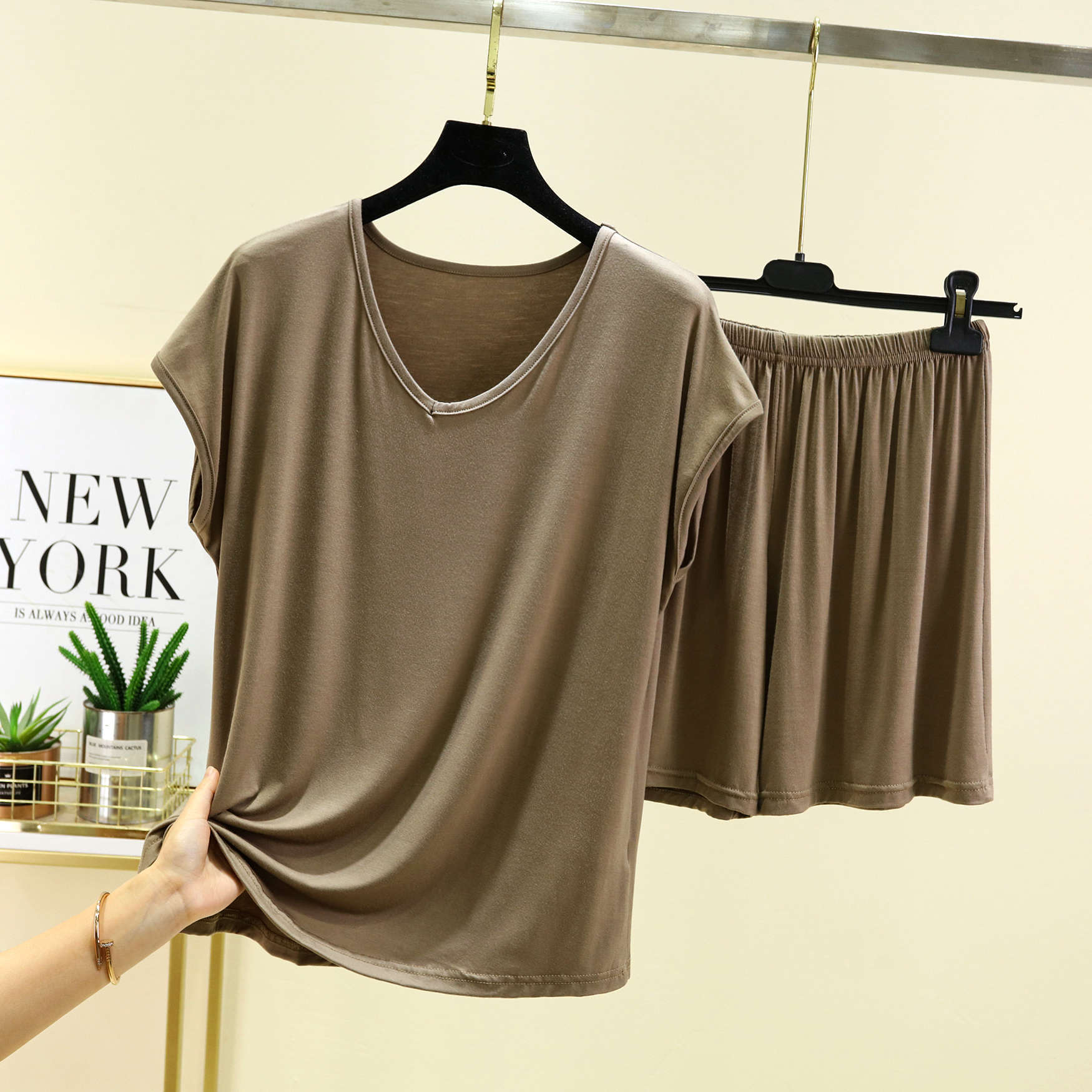 여성을위한 모달 느슨한 민소매 티셔츠 반바지 정장 여름 얇은 잠옷 플러스 사이즈 v 넥 홈웨어 투피스 세트