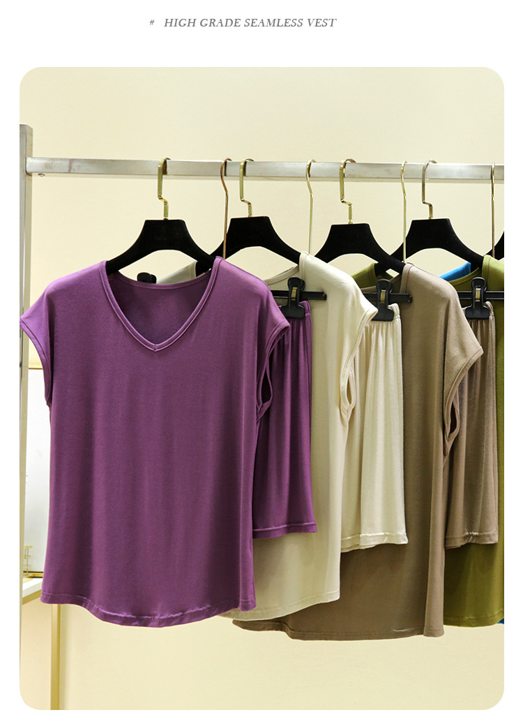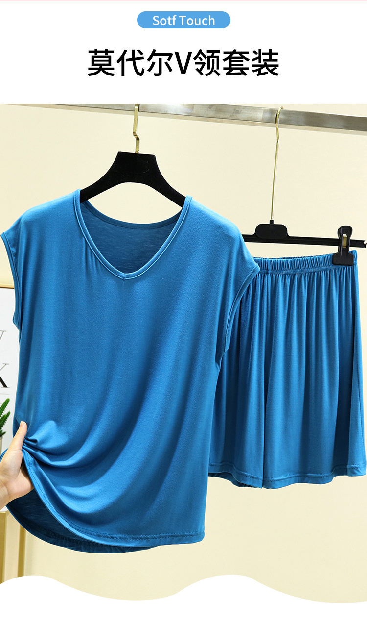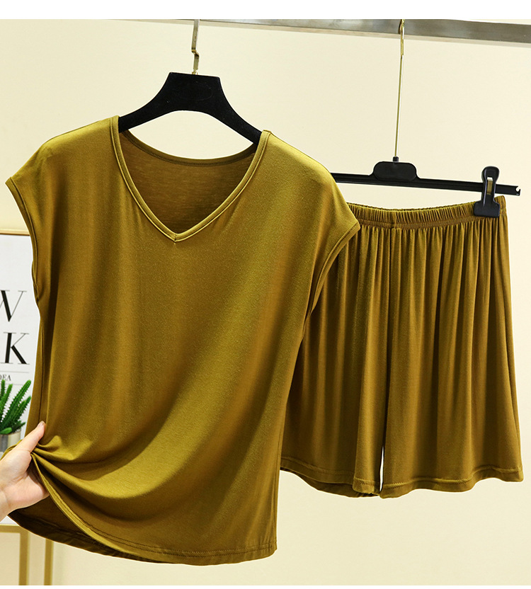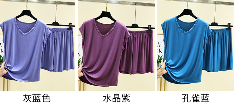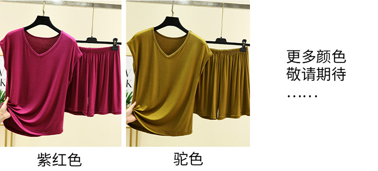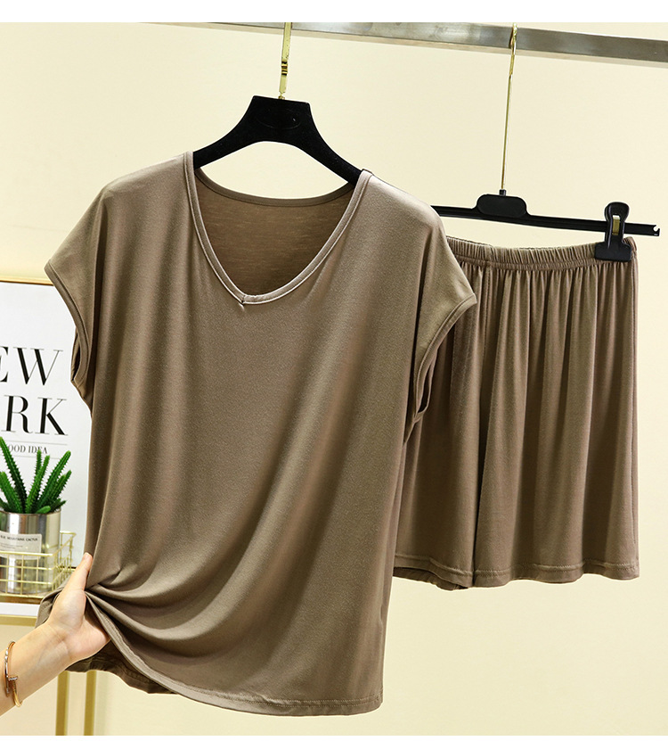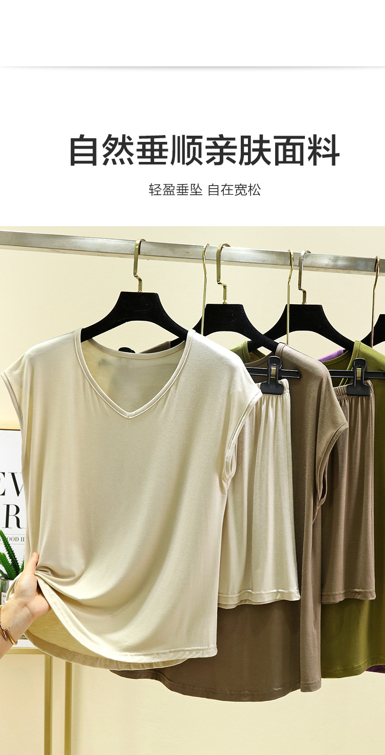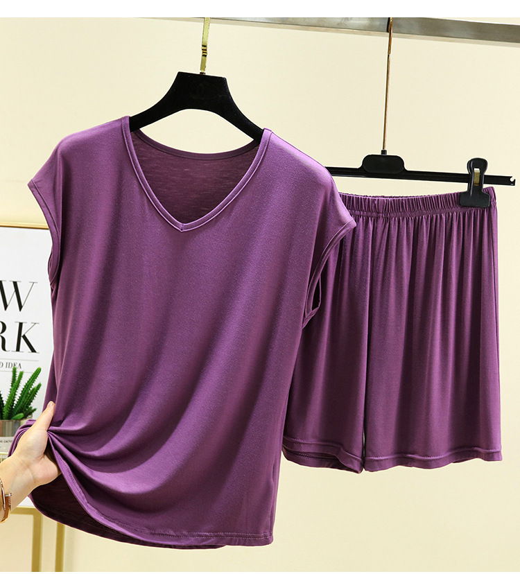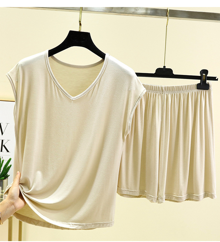 여성을위한 모달 느슨한 민소매 티셔츠 반바지 정장 여름 얇은 잠옷 플러스 사이즈 v 넥 홈웨어 투피스 세트