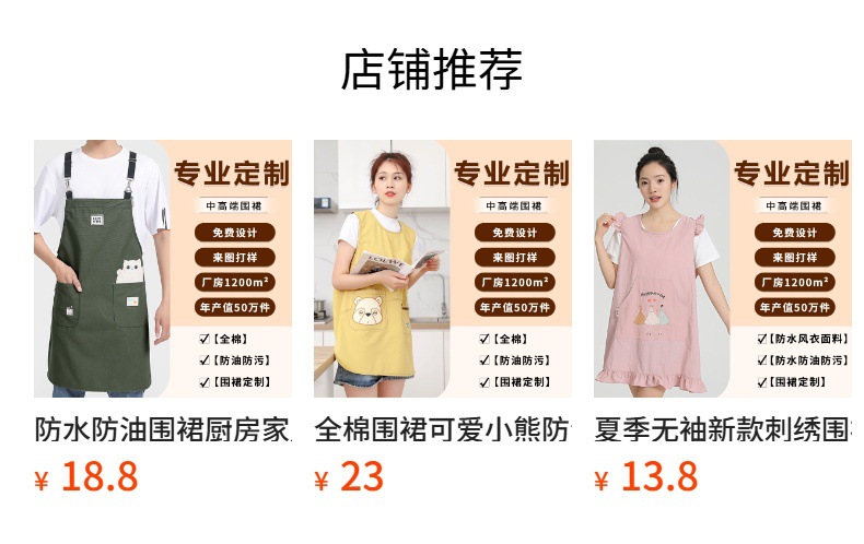 【원천공장】단색 앞치마 가정용 기름방지 로고 인쇄 가능 밀크티 가게 커피숍 성인 작업복스토어 가기