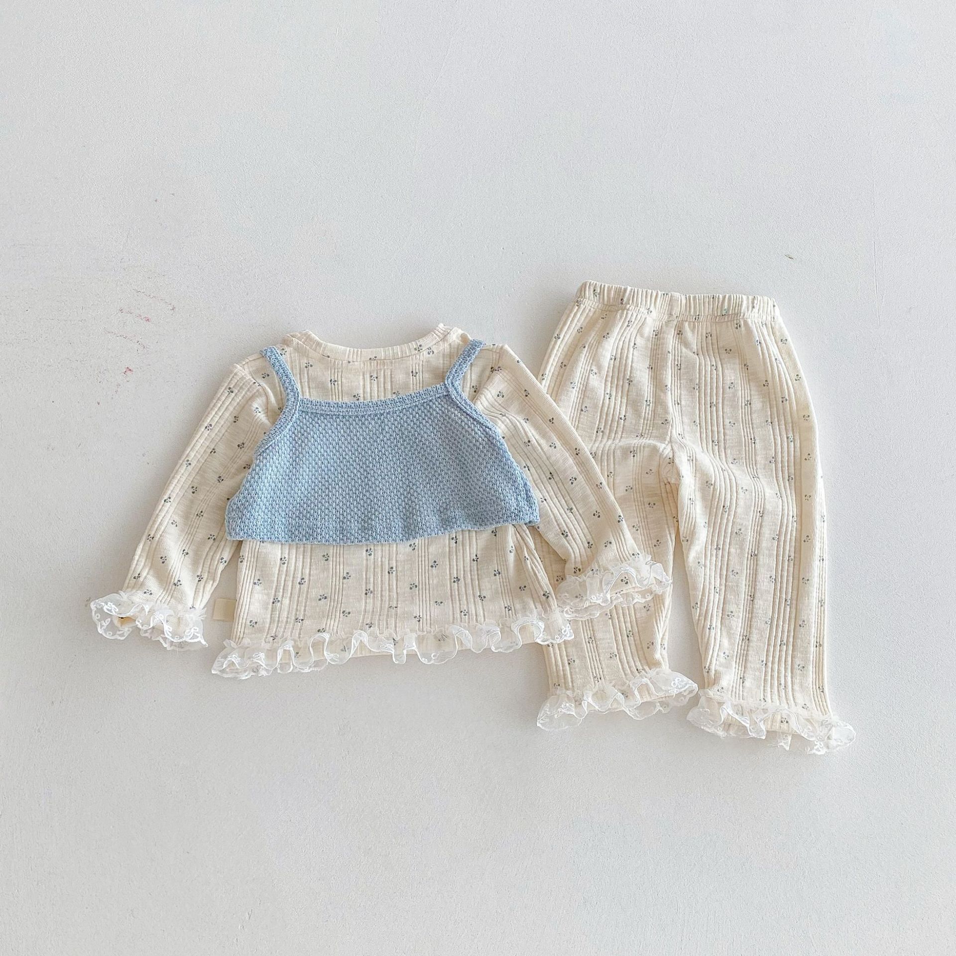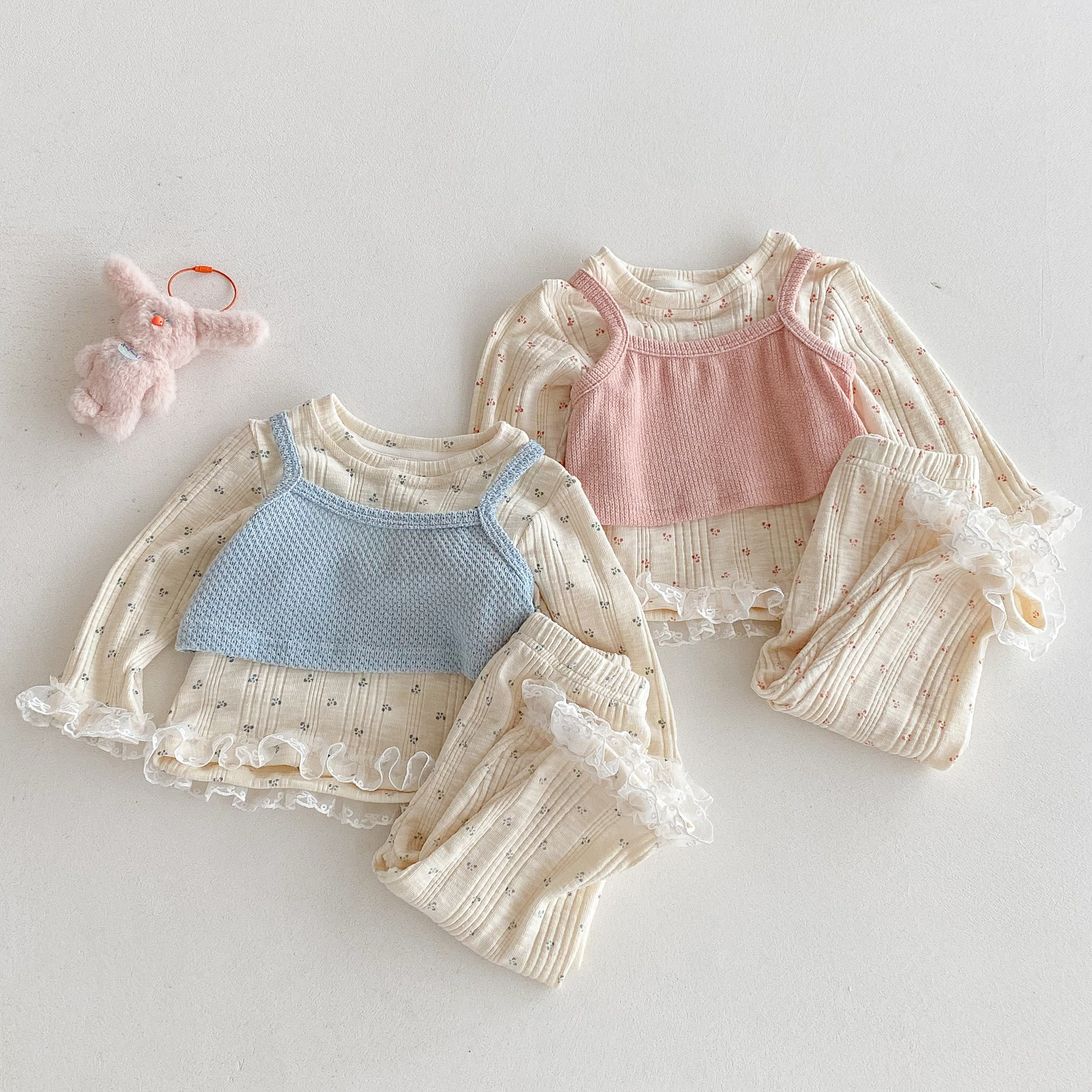 아기 가정복, 여아용 가을 잠옷, 캐주얼 슈트, 아기 가을 옷, 달콤한 가정복 3종 세트