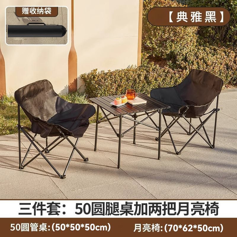 • 50cm 에그롤 테이블 [블랙] + 비치체어 2개 [블랙]