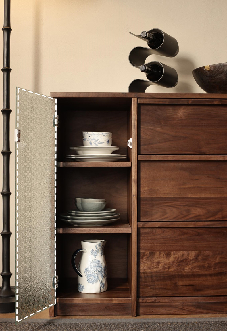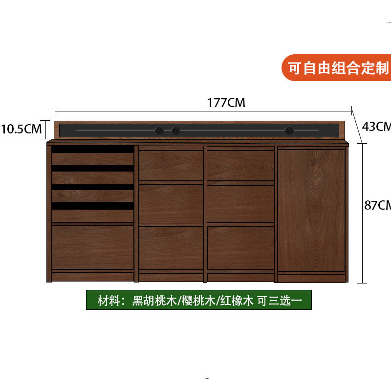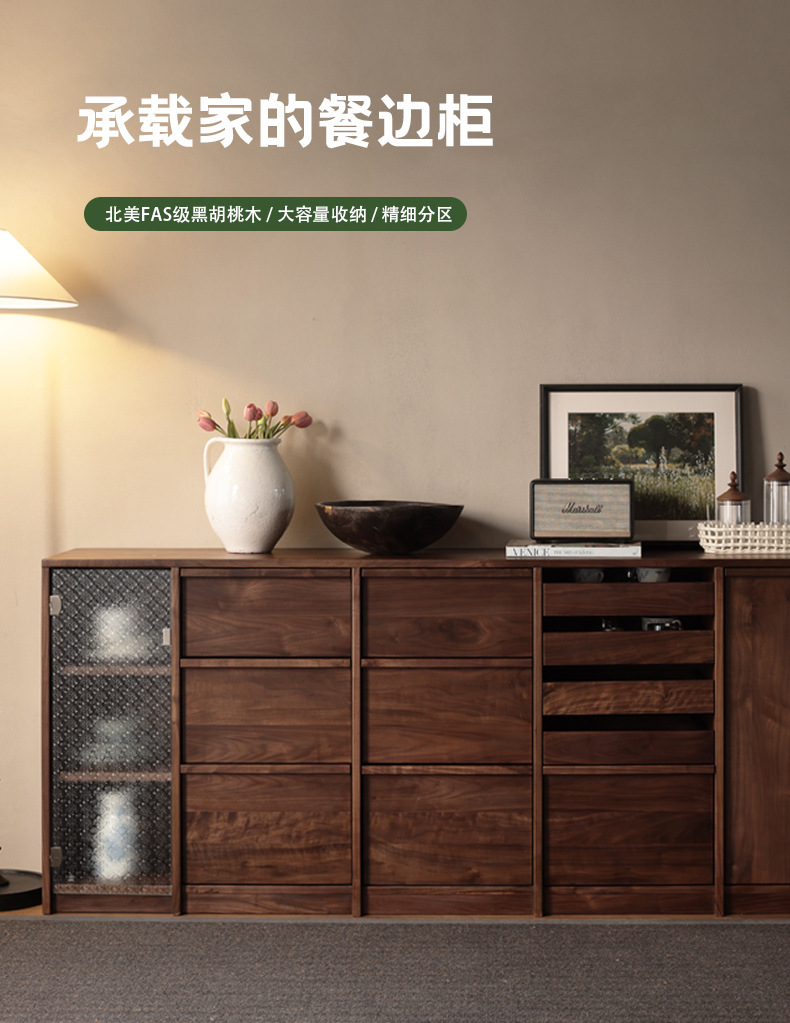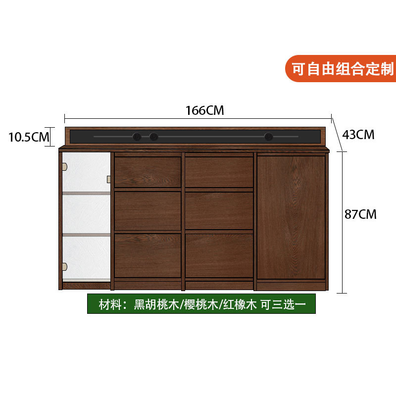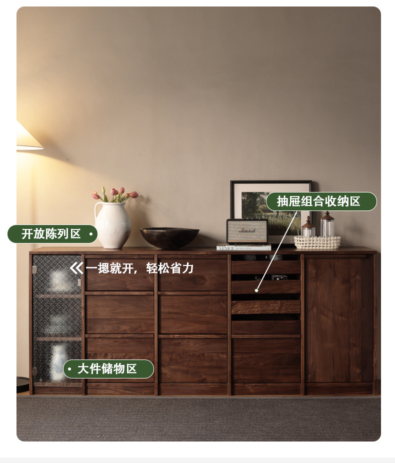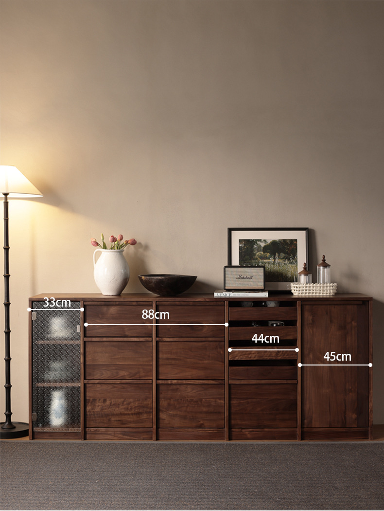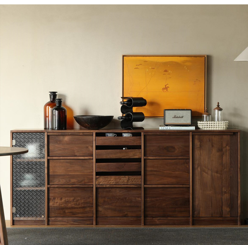 찬장, 심플한 북유럽 찬장, 스켈레톤 라인 찬장, 수납장, 수납장, 블랙 월넛 원목 커피 캐비닛