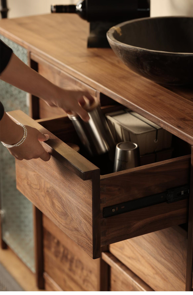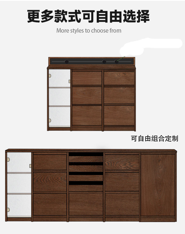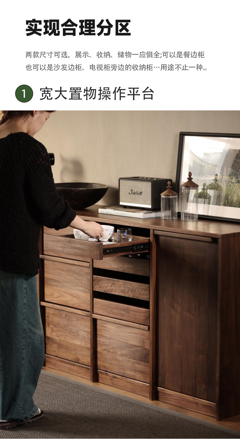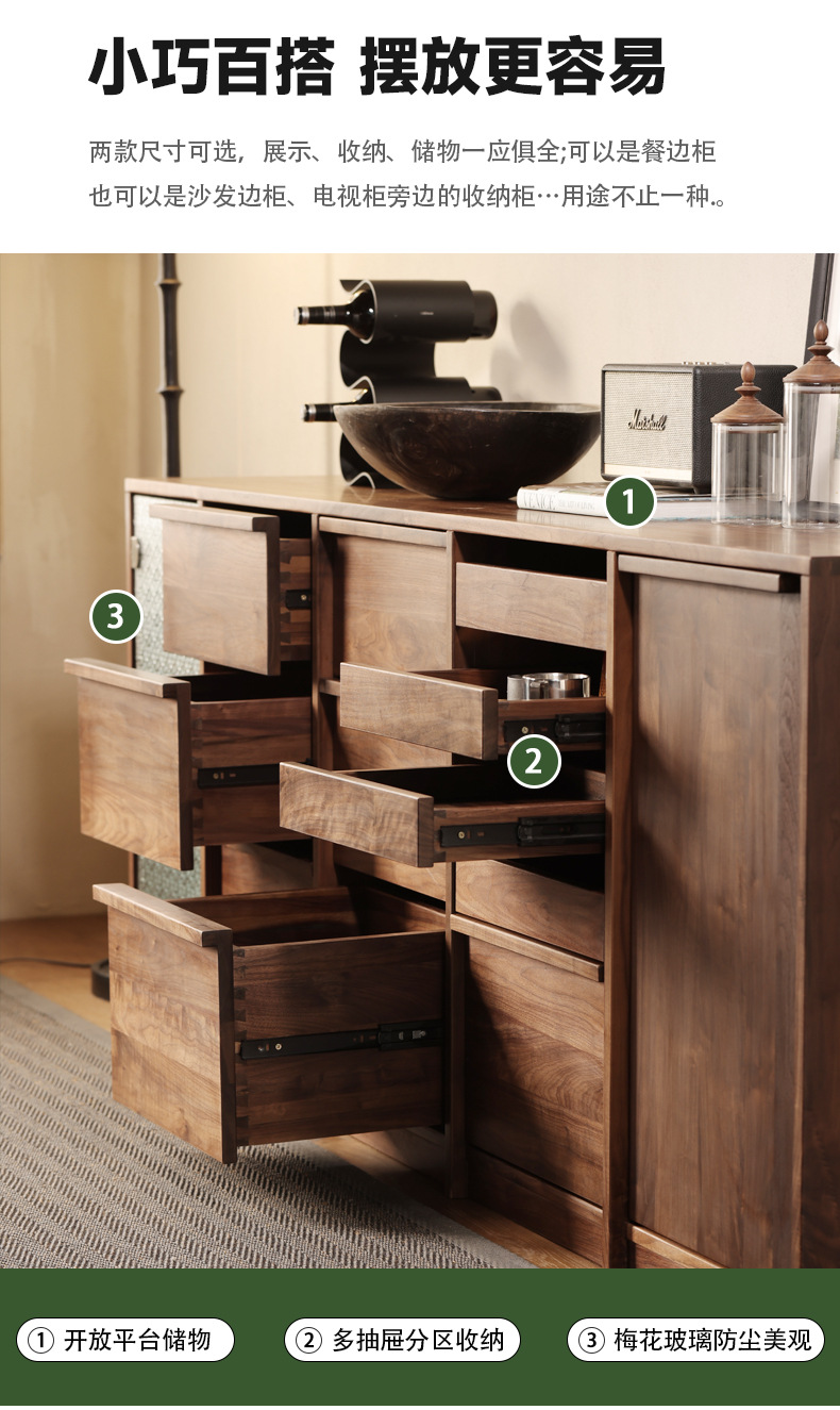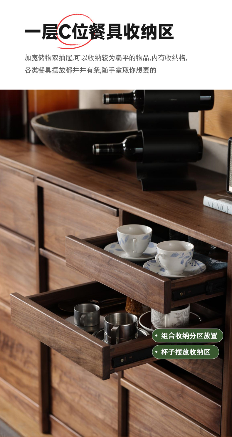 찬장, 심플한 북유럽 찬장, 스켈레톤 라인 찬장, 수납장, 수납장, 블랙 월넛 원목 커피 캐비닛