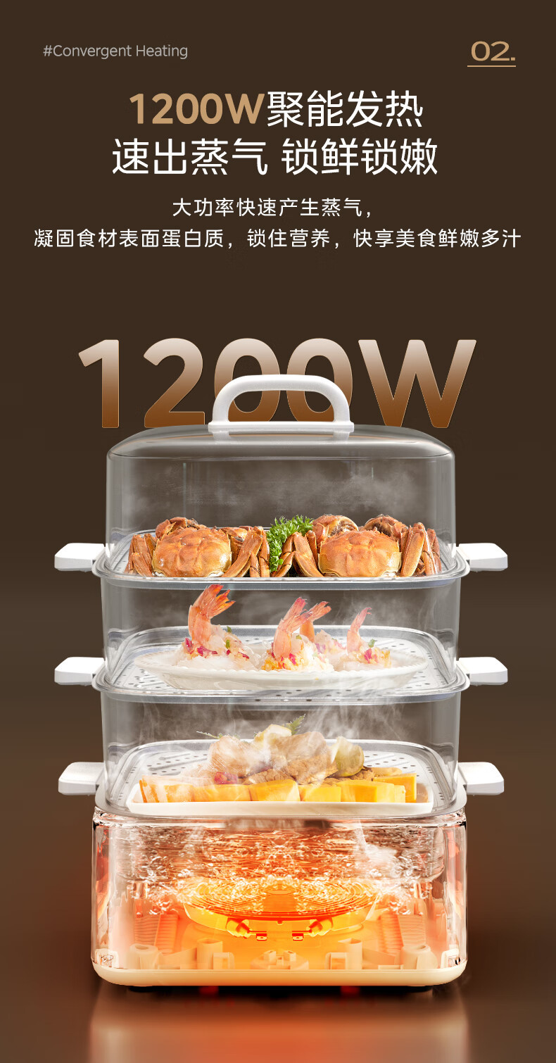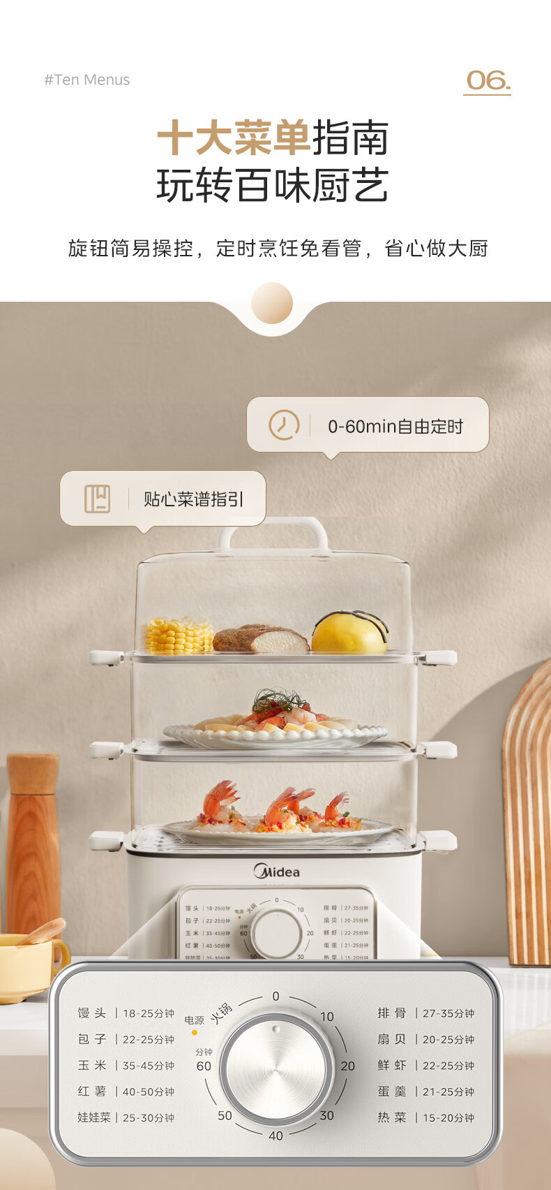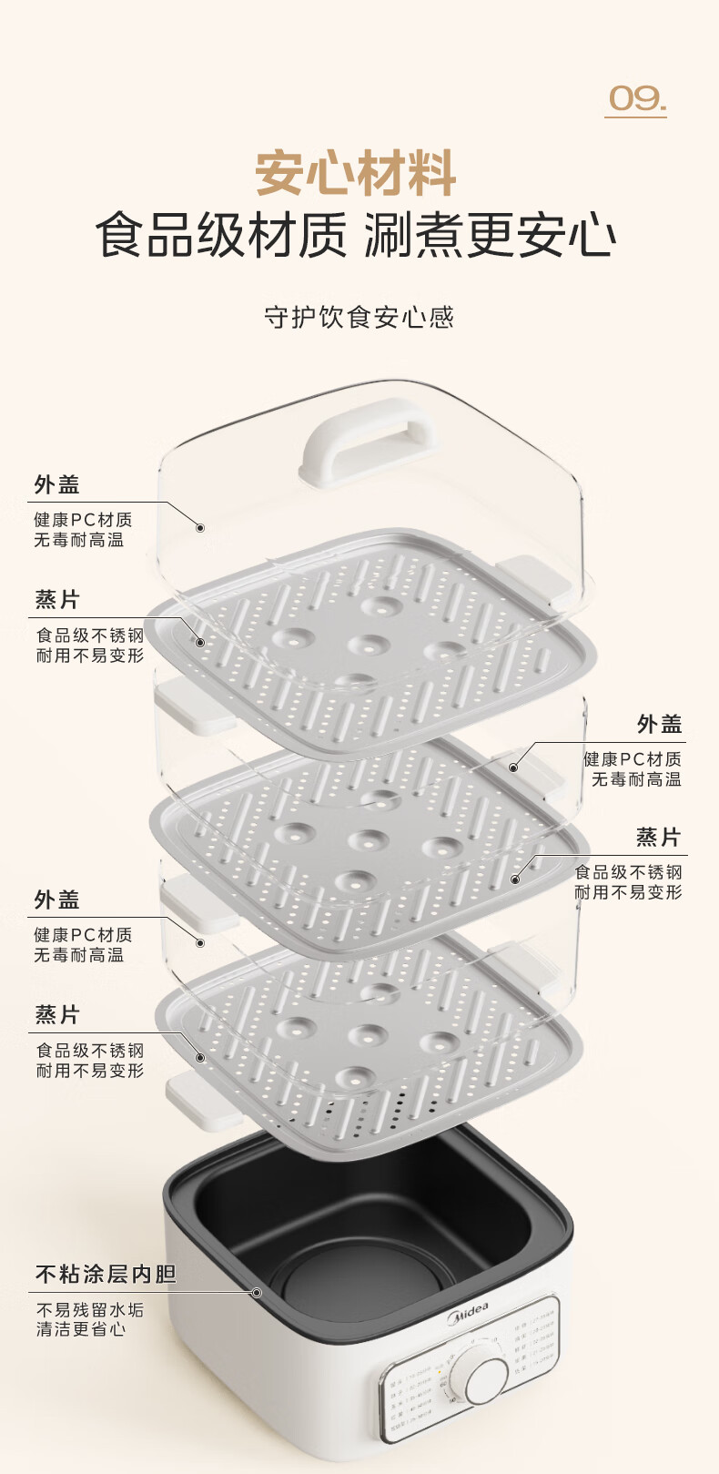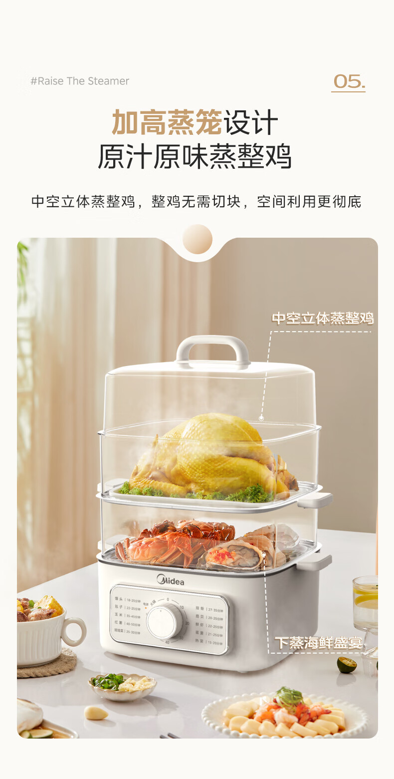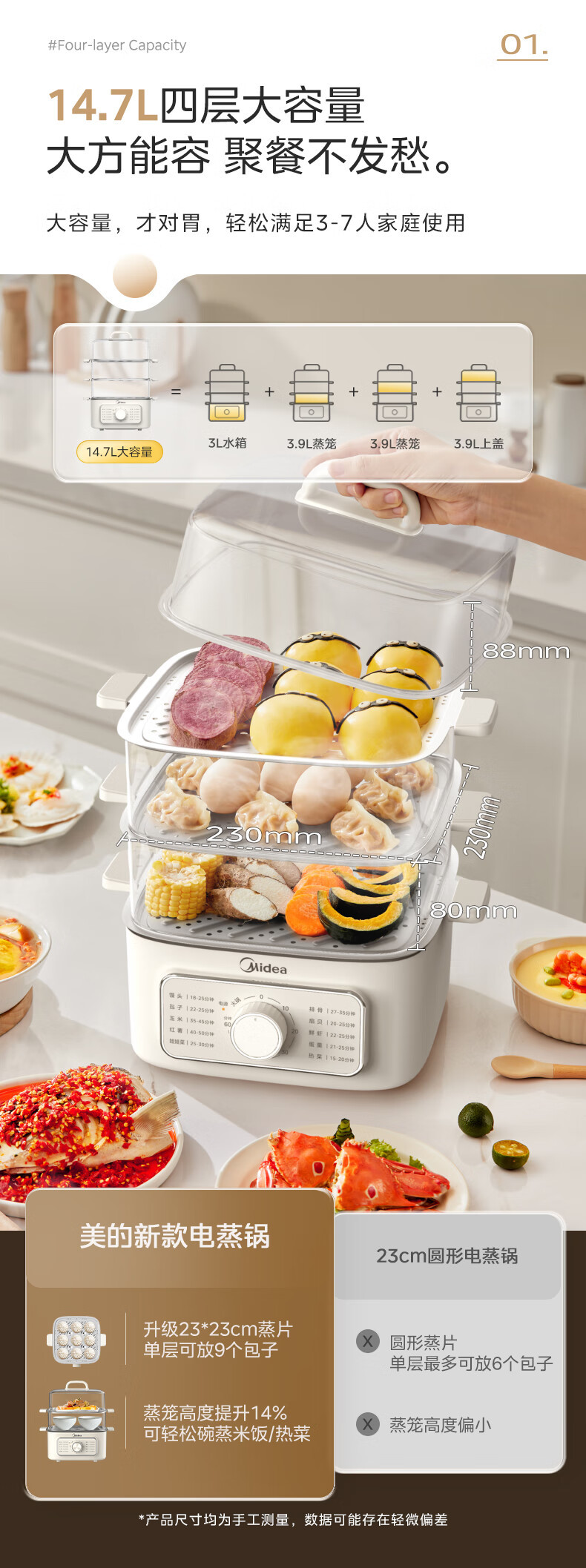 Midea 가정용 전기 찜통, 스튜 및 찜통, 4층 대용량 다목적 찜통, 찐빵 ZGE2323Z03X스토어 가기