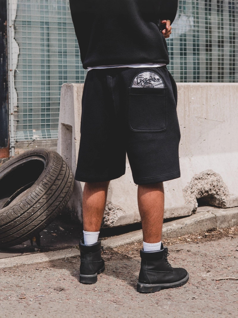 남성과 여성을 위한 국경 간 유럽과 미국의 트렌디한 브랜드 자수 캐주얼 바지, 스트리트 패션 레코드 디자인 패턴 루즈한 반바지스토어 가기