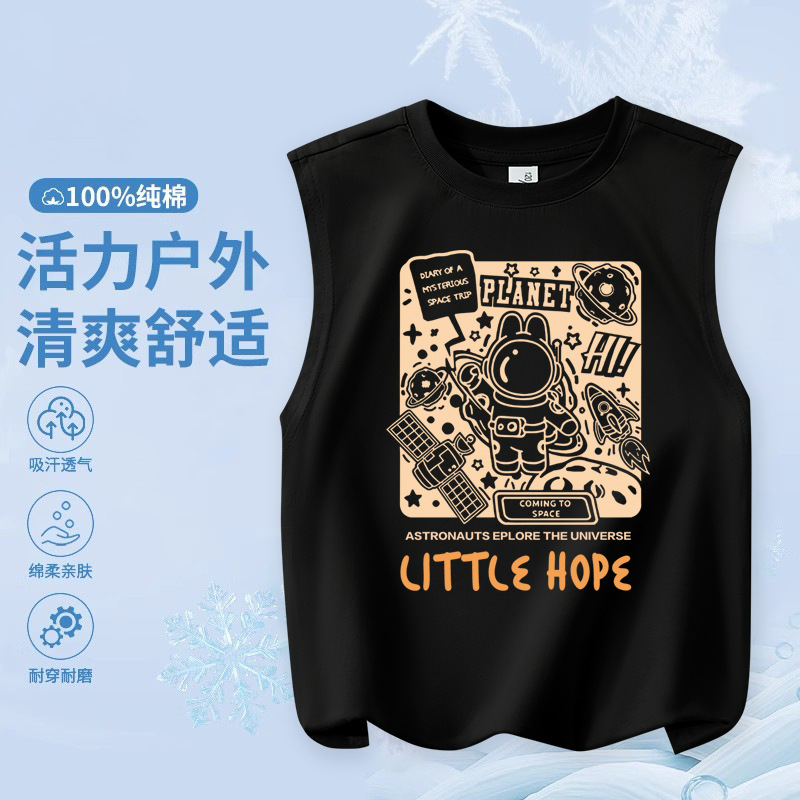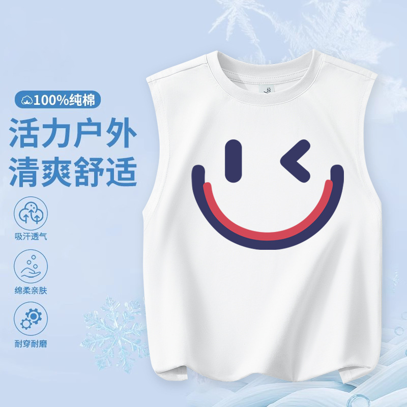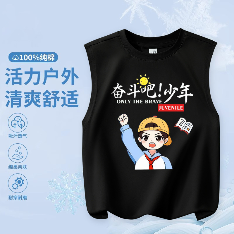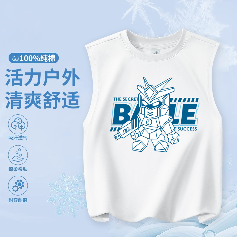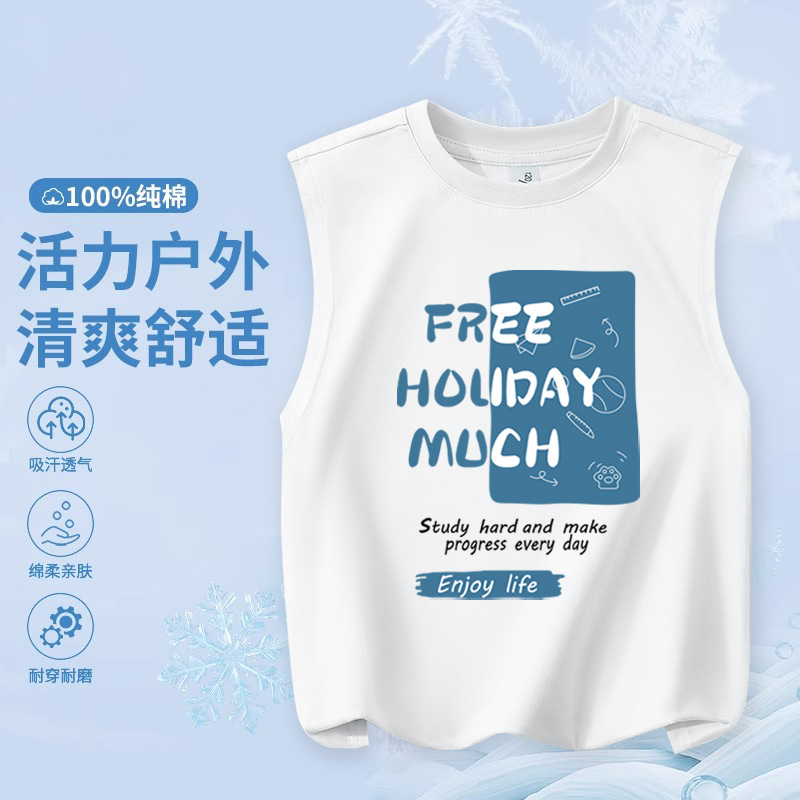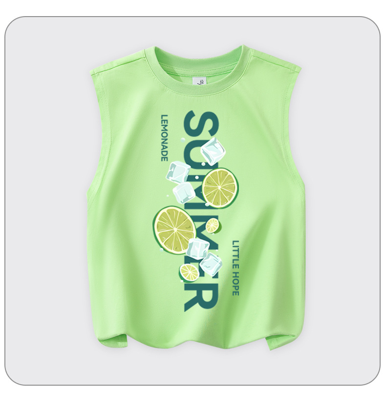 어린이 순수 코튼 조끼 민소매 티셔츠 탑 소년 여름 착용 얇은 양복 조끼 통기성 소년 라운드 넥 풀오버