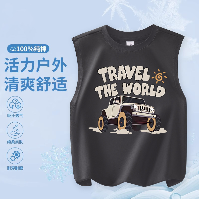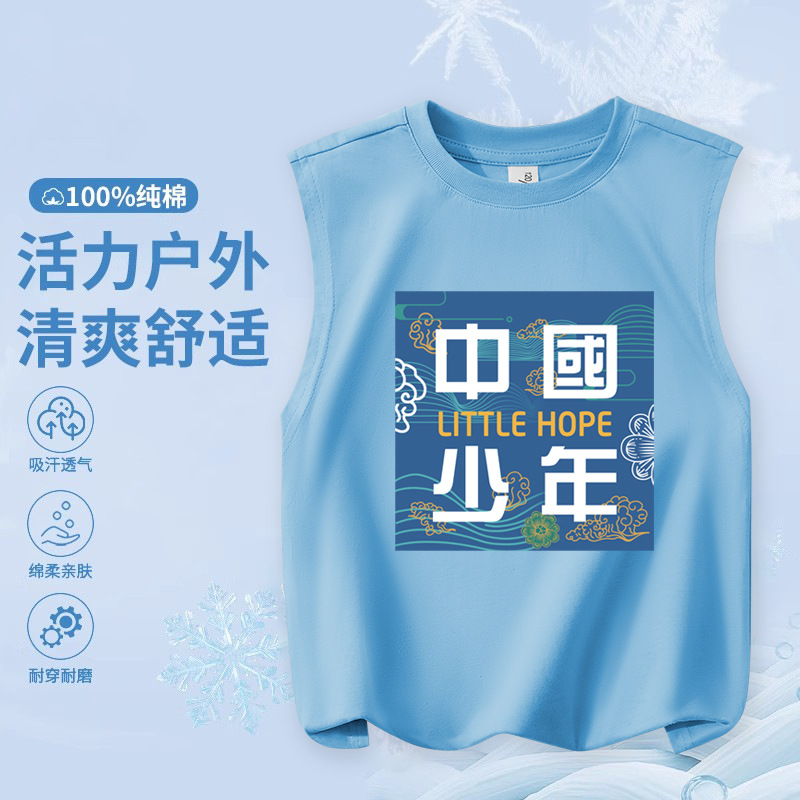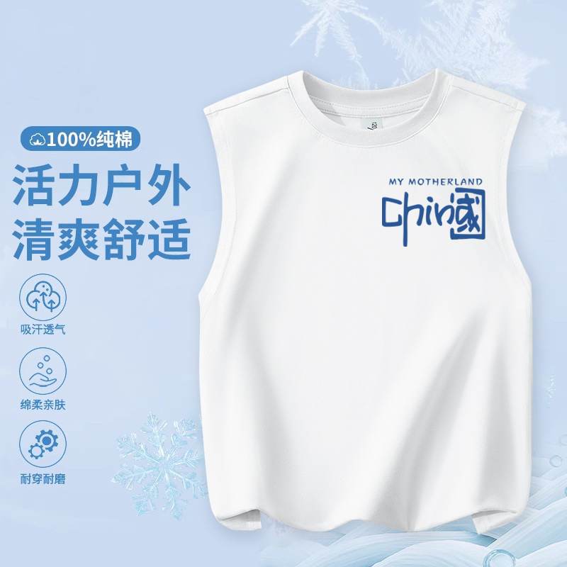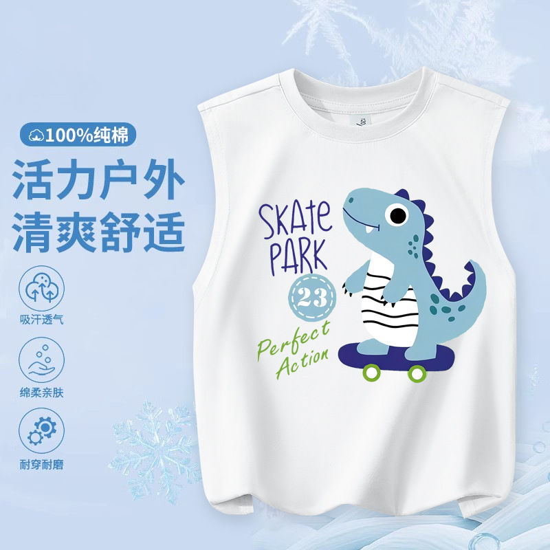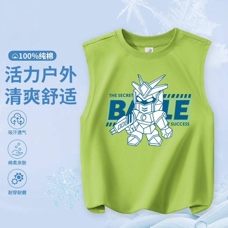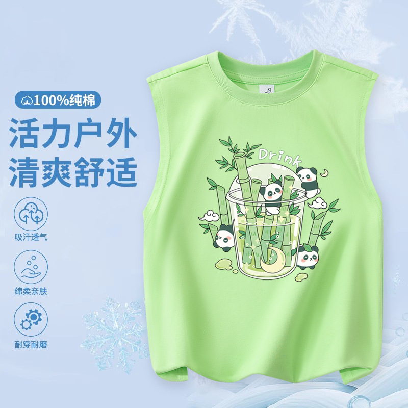 어린이 순수 코튼 조끼 민소매 티셔츠 탑 소년 여름 착용 얇은 양복 조끼 통기성 소년 라운드 넥 풀오버
