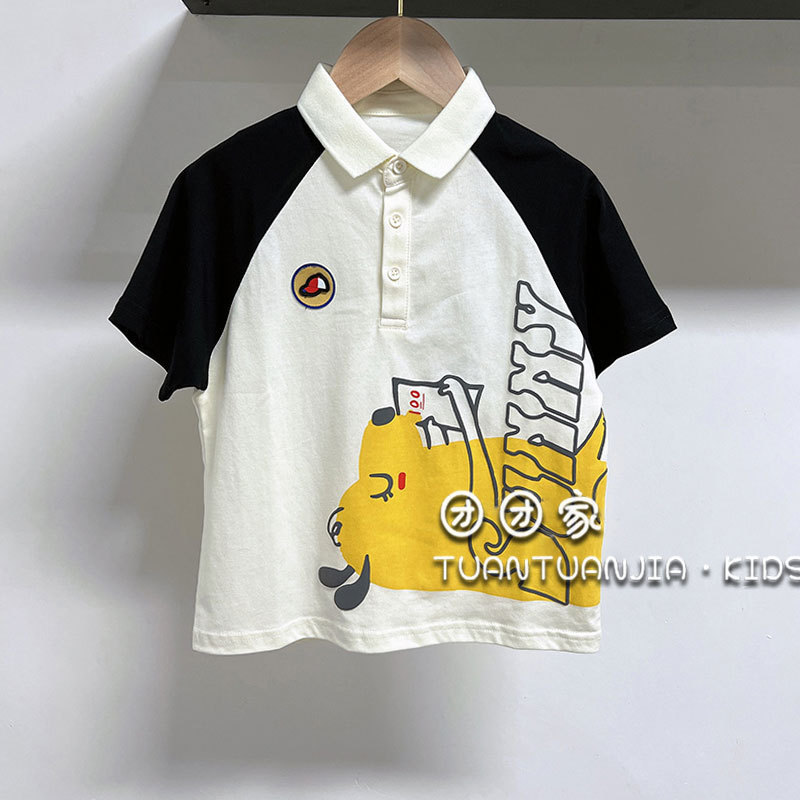 • 화이트 컬러 블록 카툰 프린트 폴로 셔츠