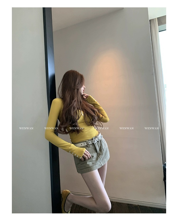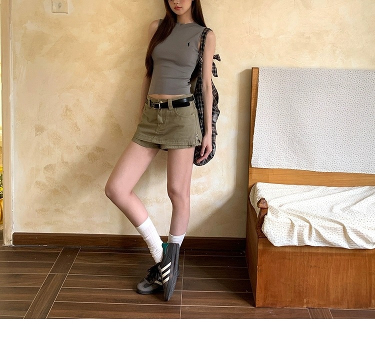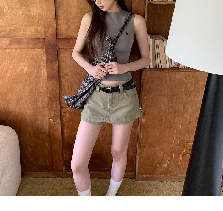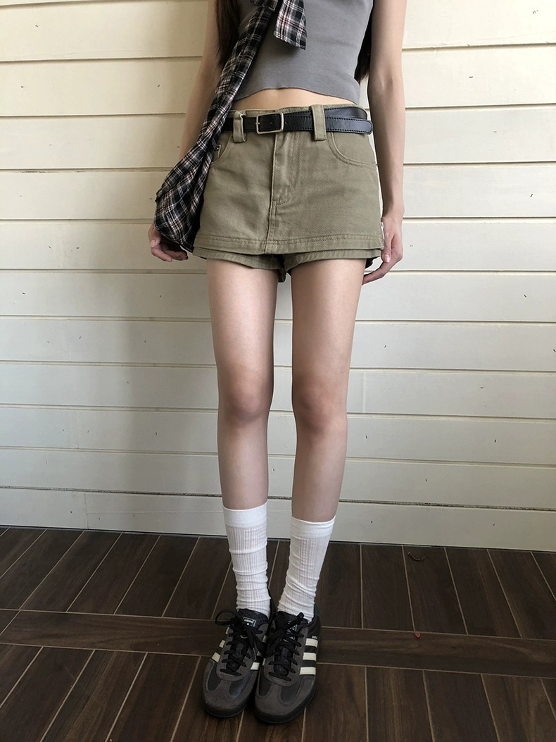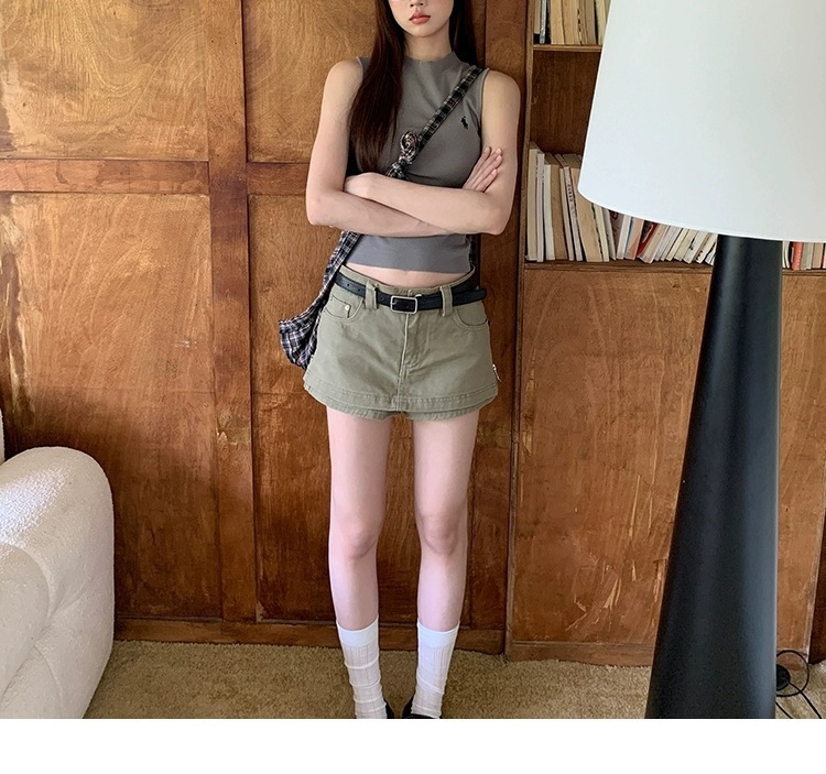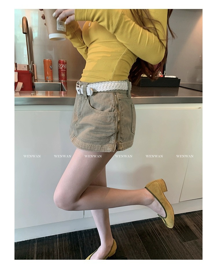 여성을위한 레드 박물관 데님 스커트 2025 새로운 여름 a 라인 스커트 힙 커버 작은 하이 웨이스트 슬림 스커트스토어 가기