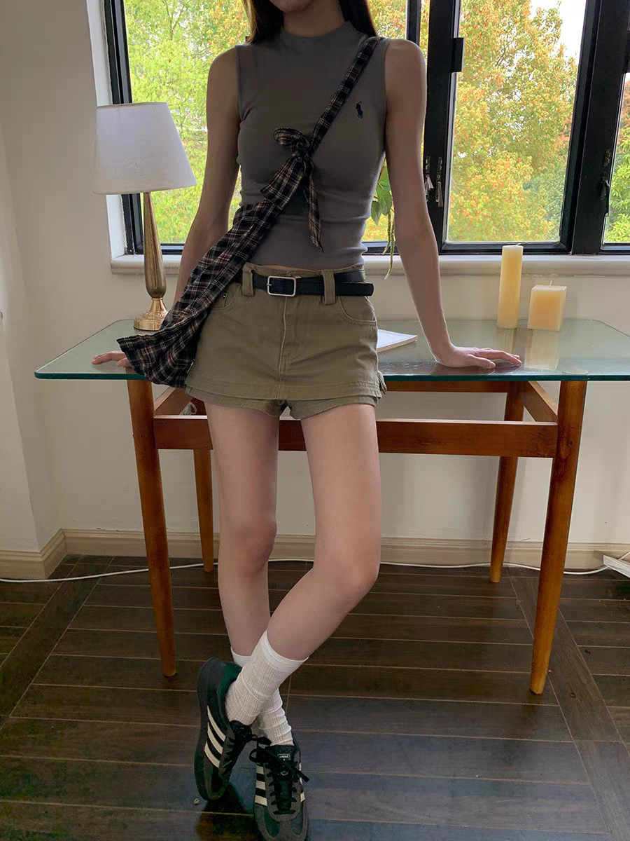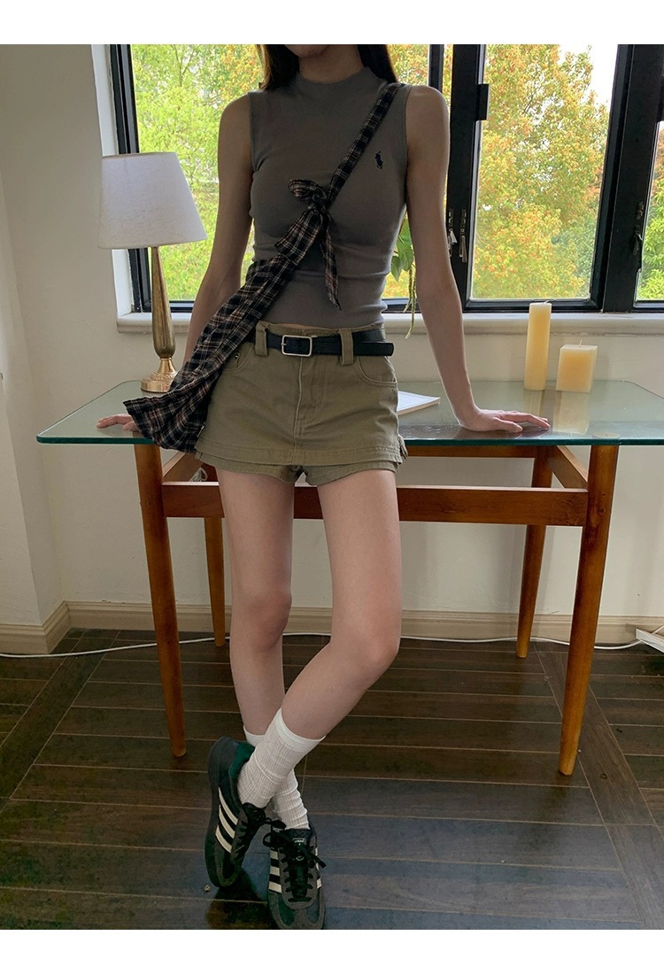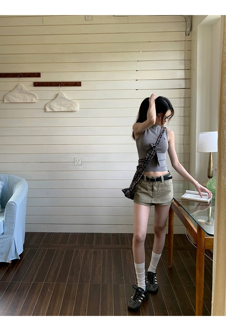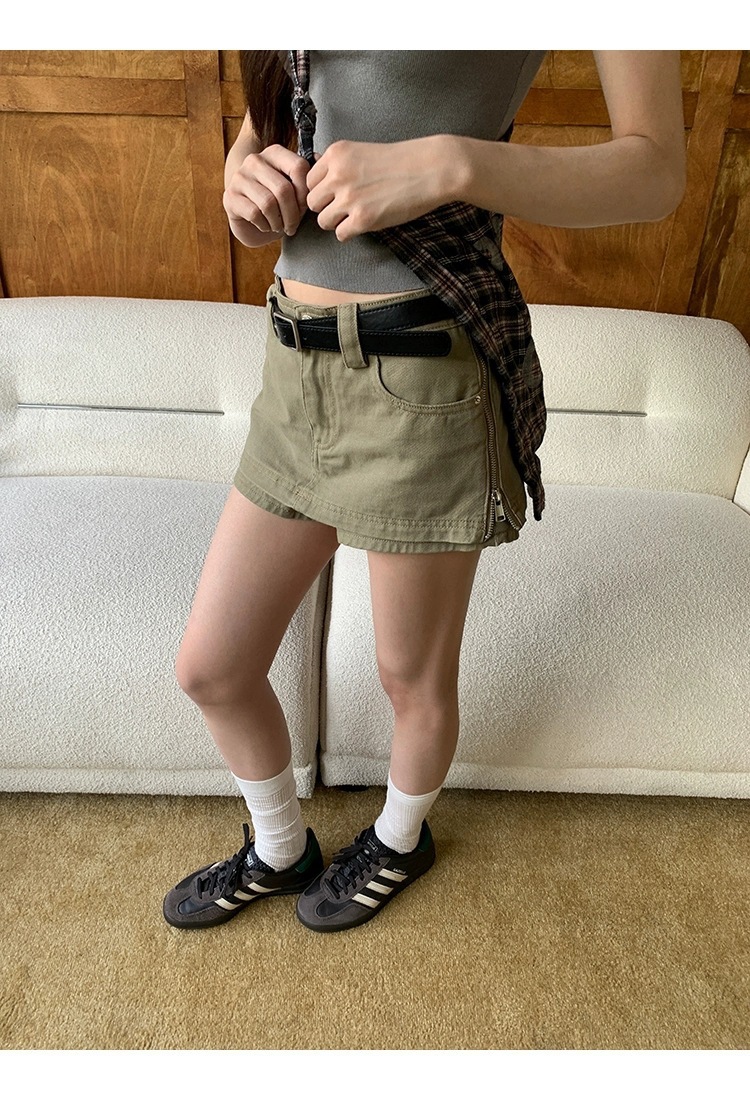 여성을위한 레드 박물관 데님 스커트 2025 새로운 여름 a 라인 스커트 힙 커버 작은 하이 웨이스트 슬림 스커트스토어 가기