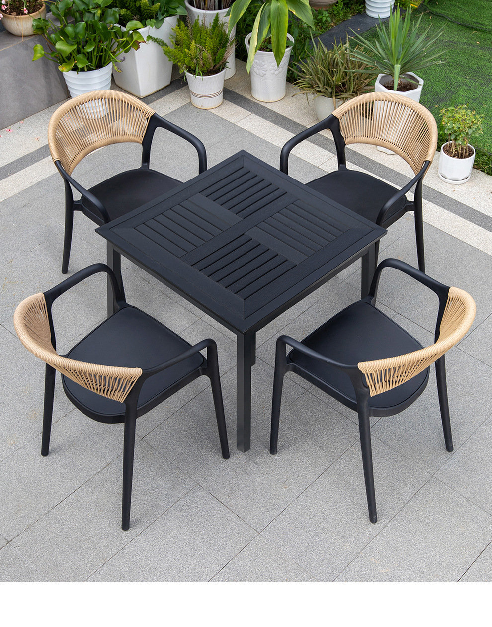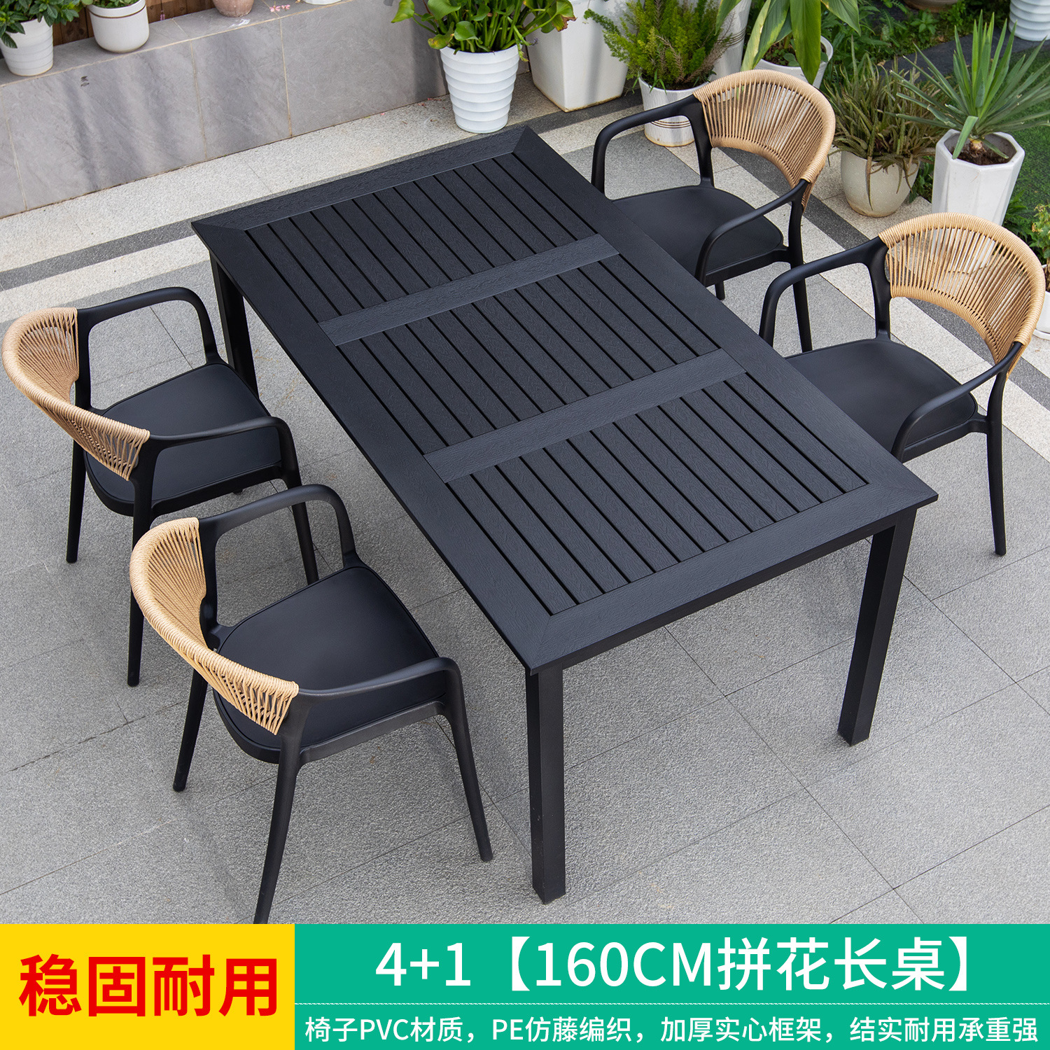 야외 안뜰 테이블과 의자, 카페 레저 야외 사각 테이블, 긴 테이블, 정원 플라스틱 목재 테이블과 의자, 방수 및 자외선 차단 조합