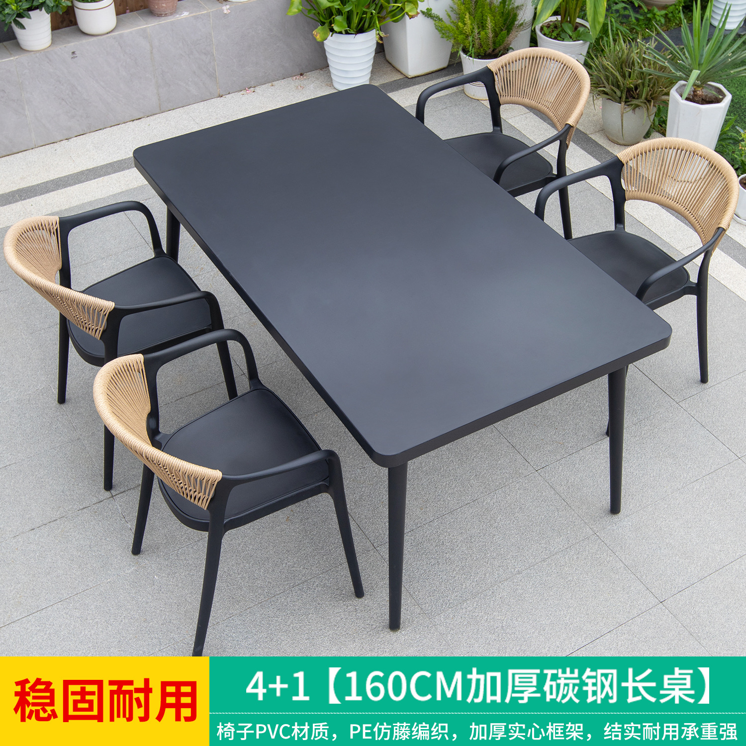 • 만라 의자 4개 + 160X90 두꺼운 탄소강 롱 테이블