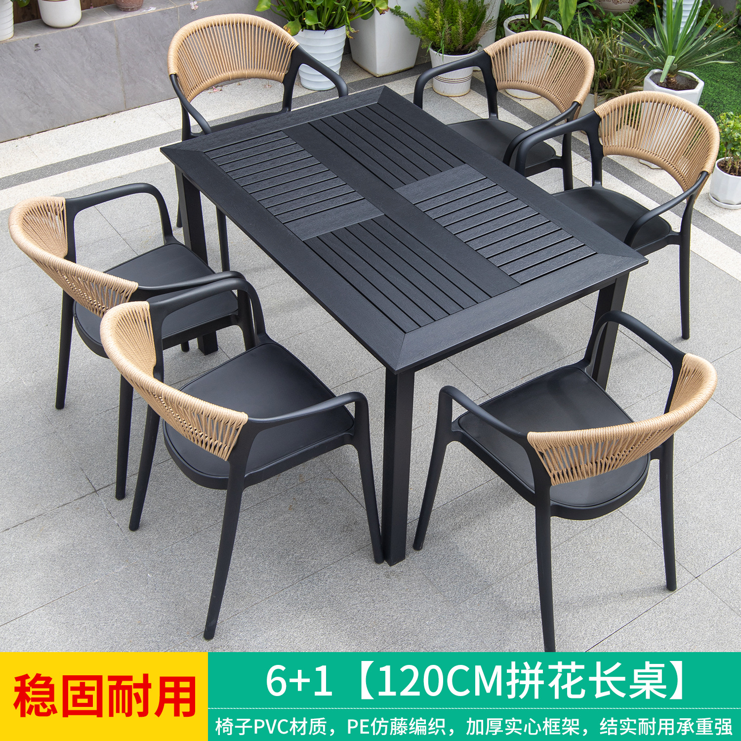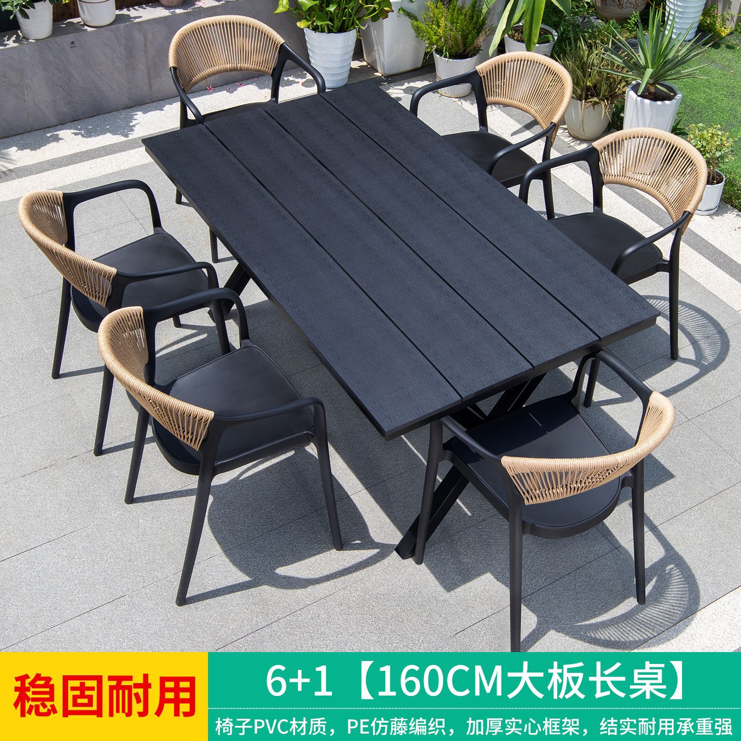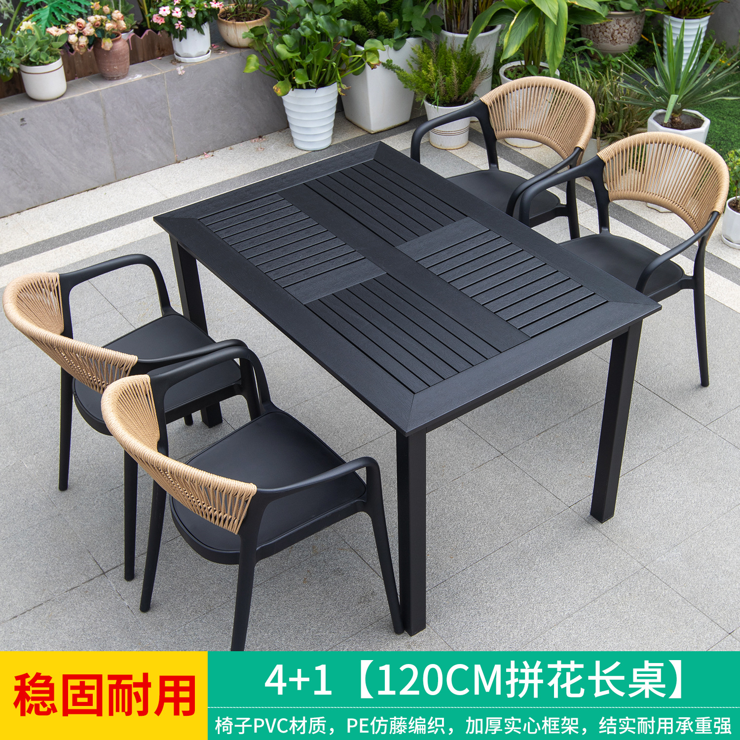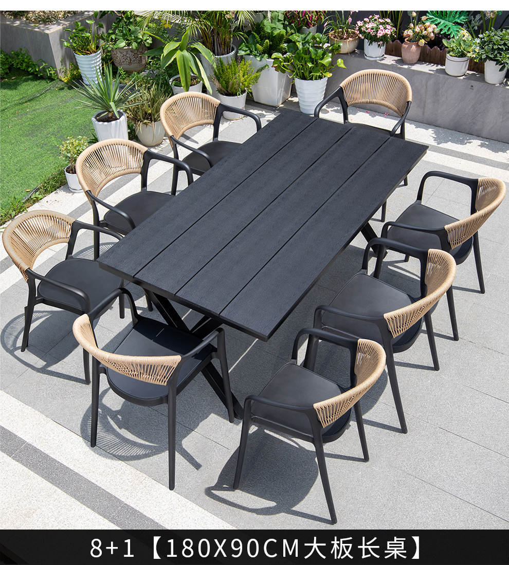 야외 안뜰 테이블과 의자, 카페 레저 야외 사각 테이블, 긴 테이블, 정원 플라스틱 목재 테이블과 의자, 방수 및 자외선 차단 조합스토어 가기