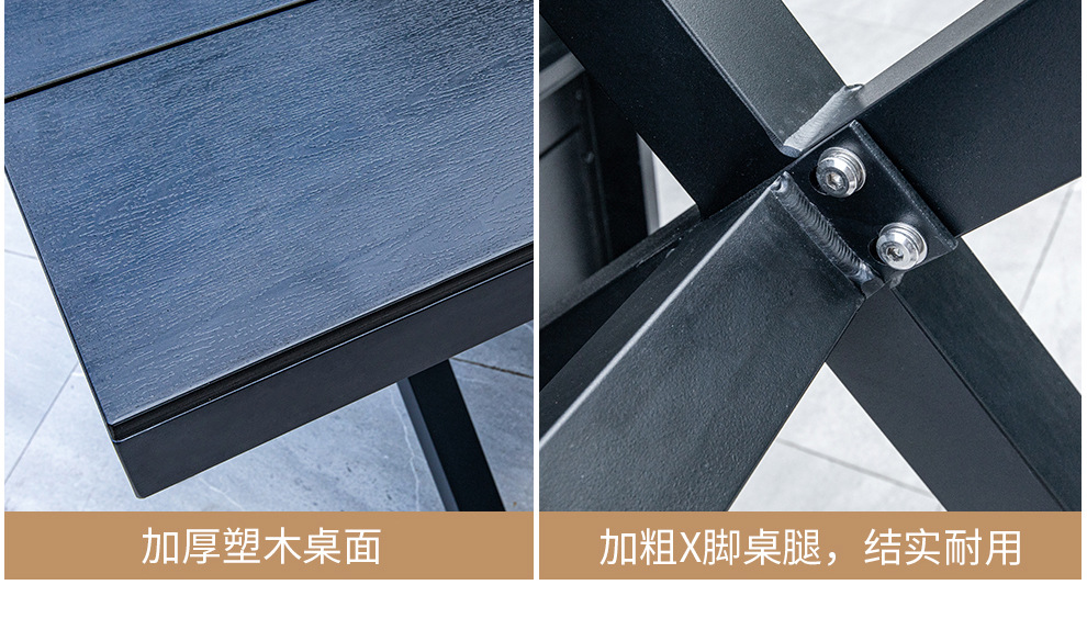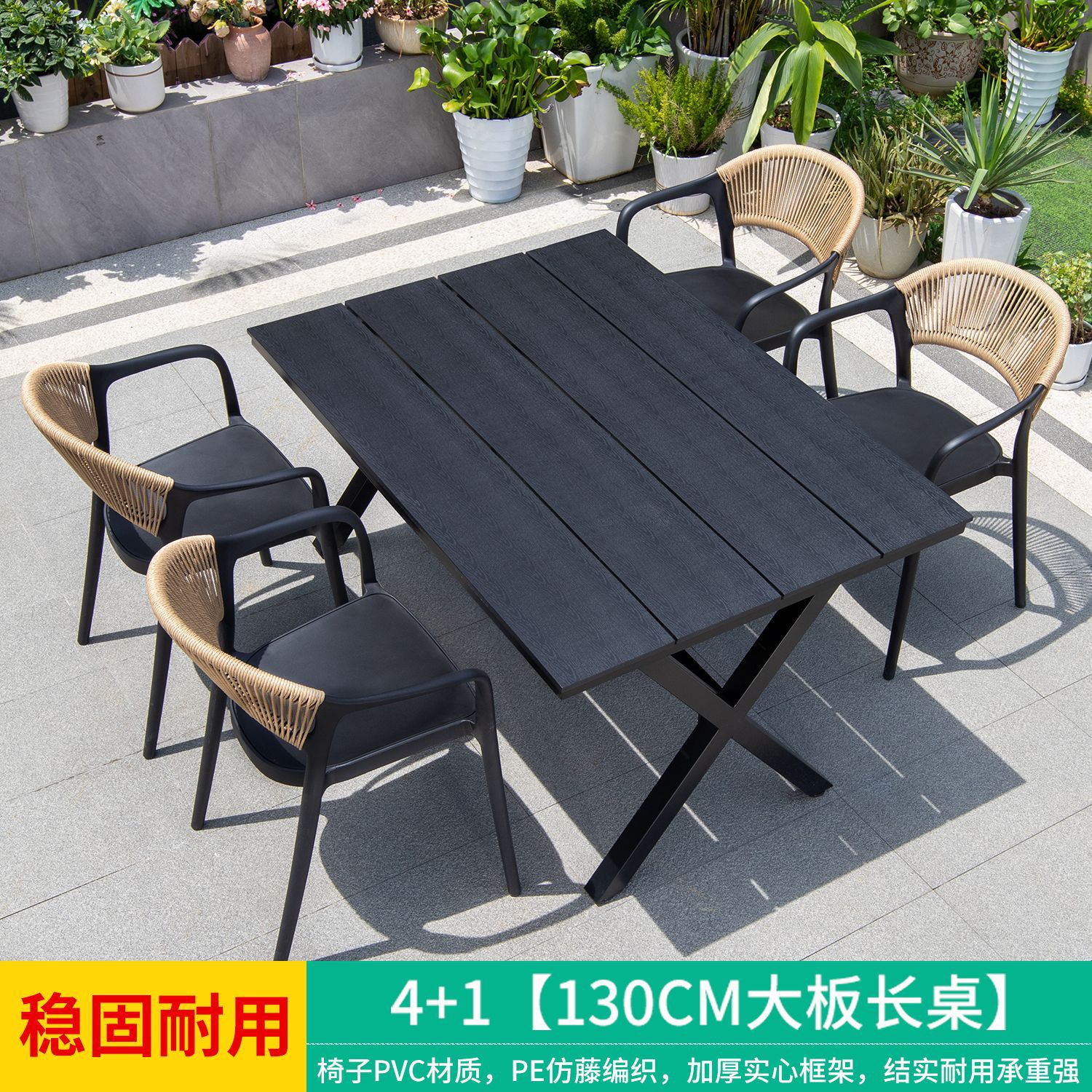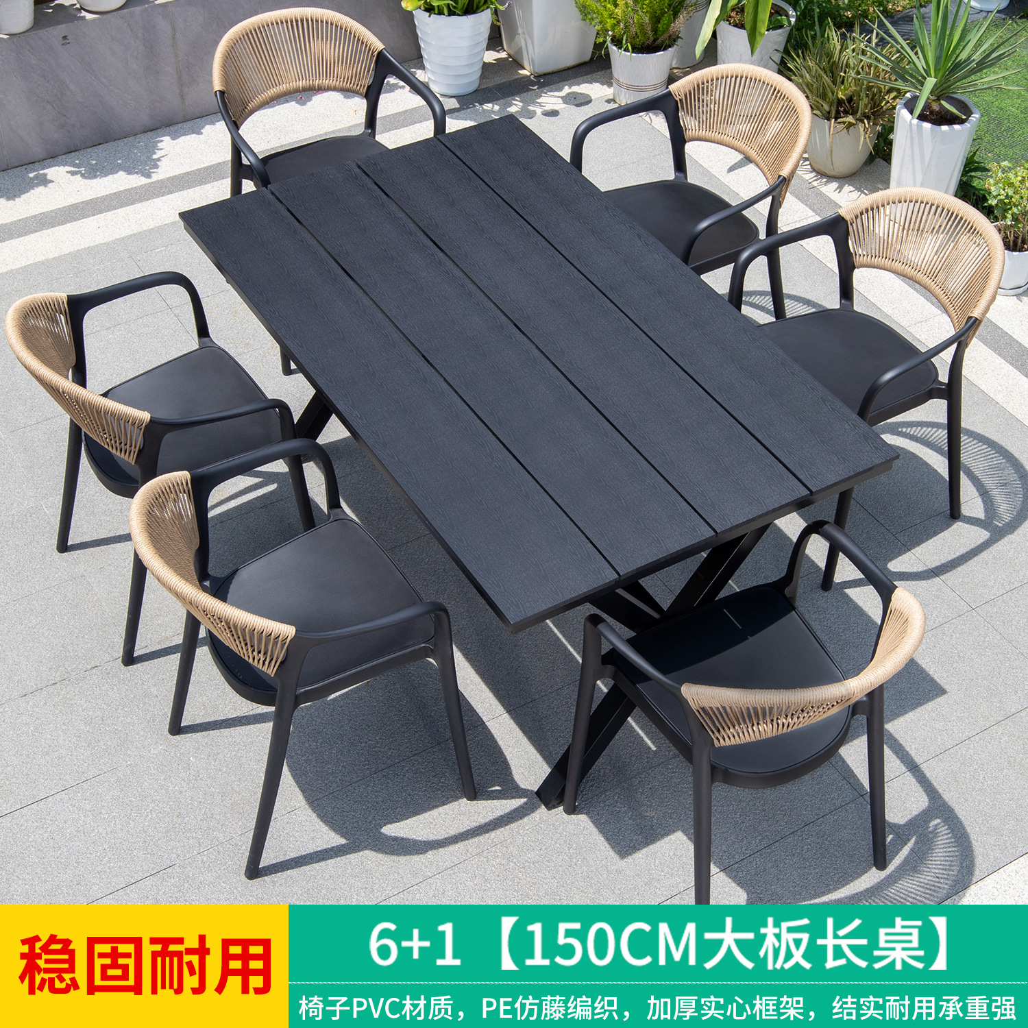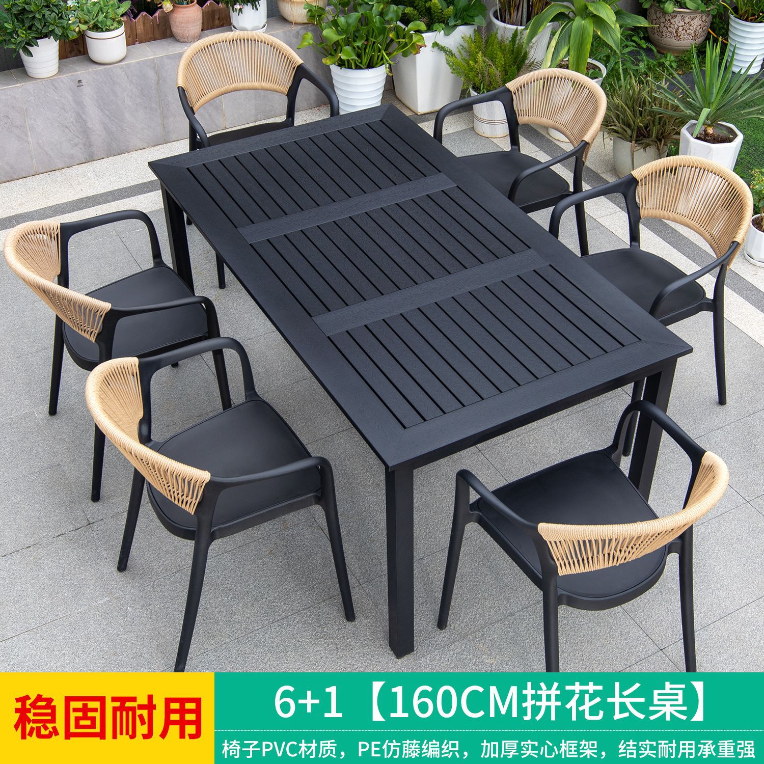 야외 안뜰 테이블과 의자, 카페 레저 야외 사각 테이블, 긴 테이블, 정원 플라스틱 목재 테이블과 의자, 방수 및 자외선 차단 조합스토어 가기