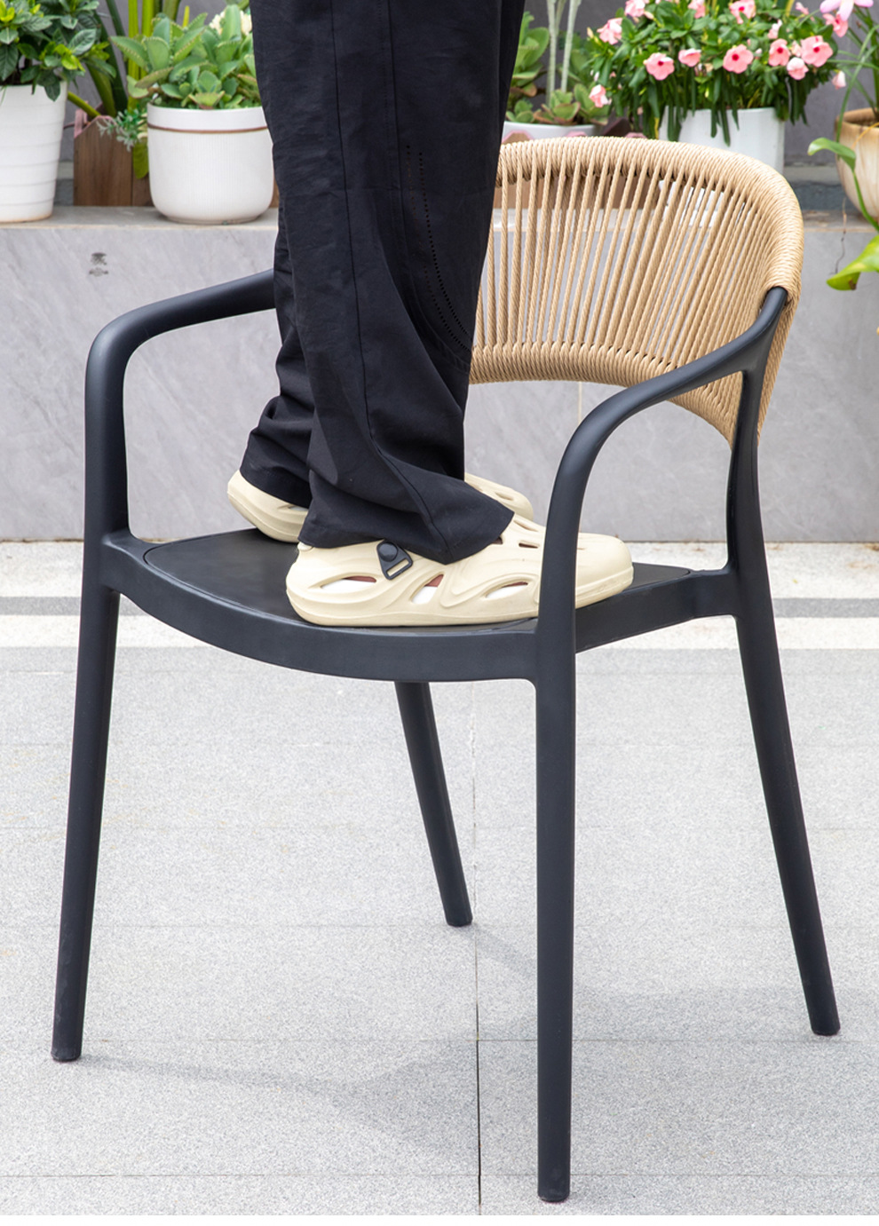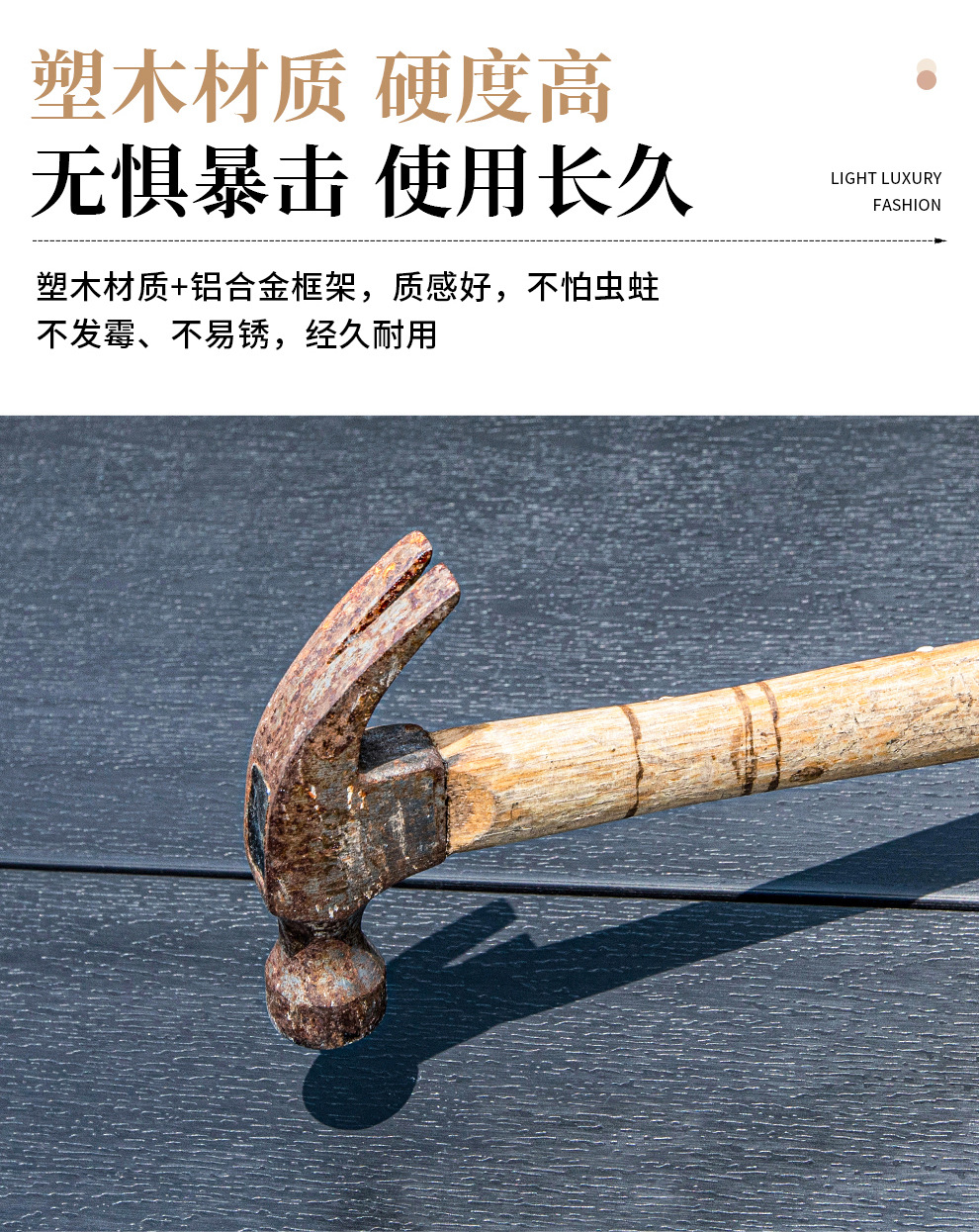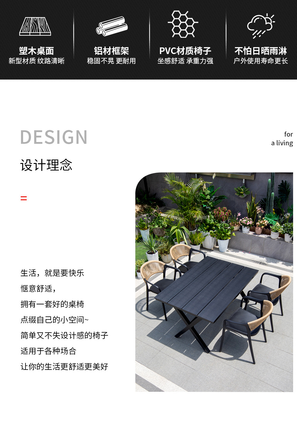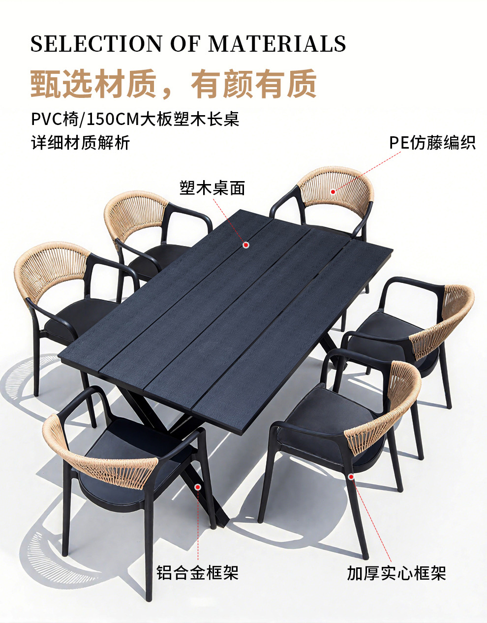 야외 안뜰 테이블과 의자, 카페 레저 야외 사각 테이블, 긴 테이블, 정원 플라스틱 목재 테이블과 의자, 방수 및 자외선 차단 조합스토어 가기