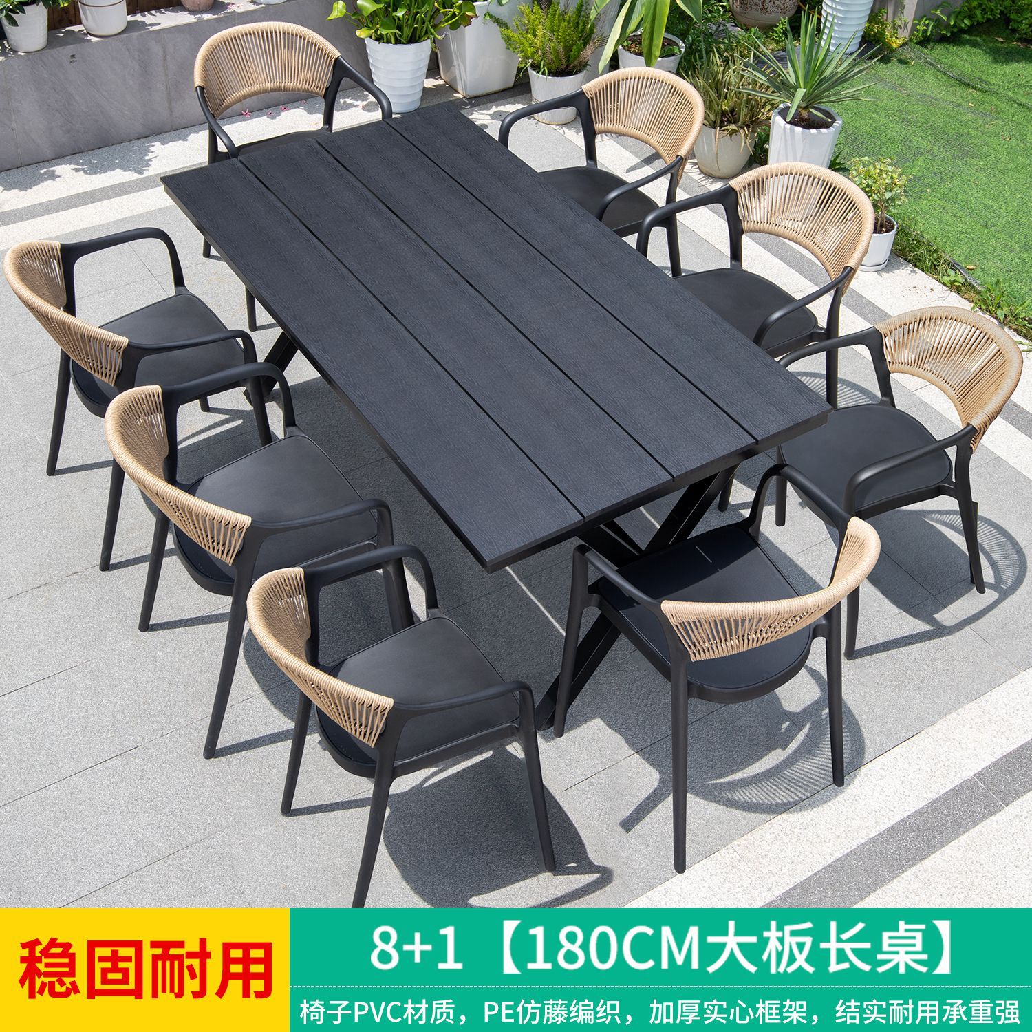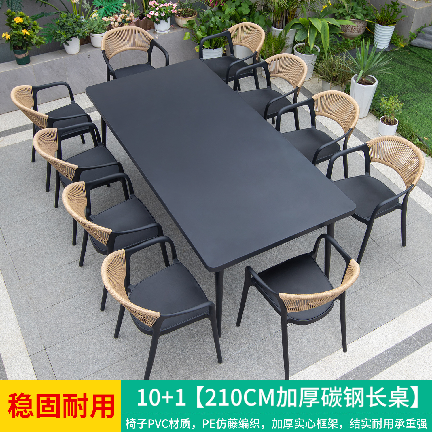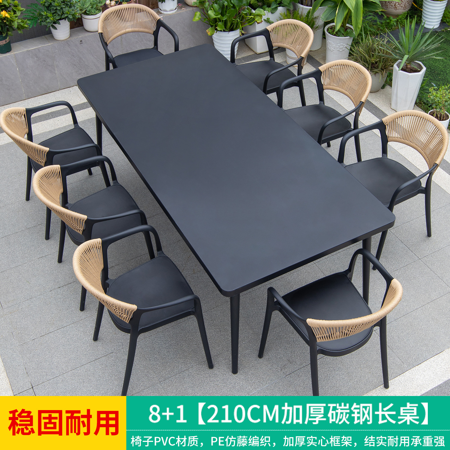 • 만라 의자 8개 + 210X100 두꺼운 탄소강 긴 테이블