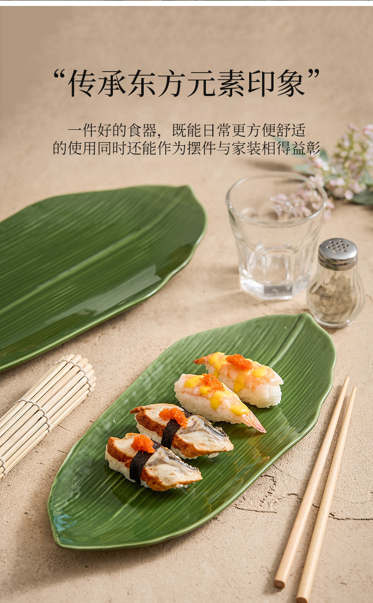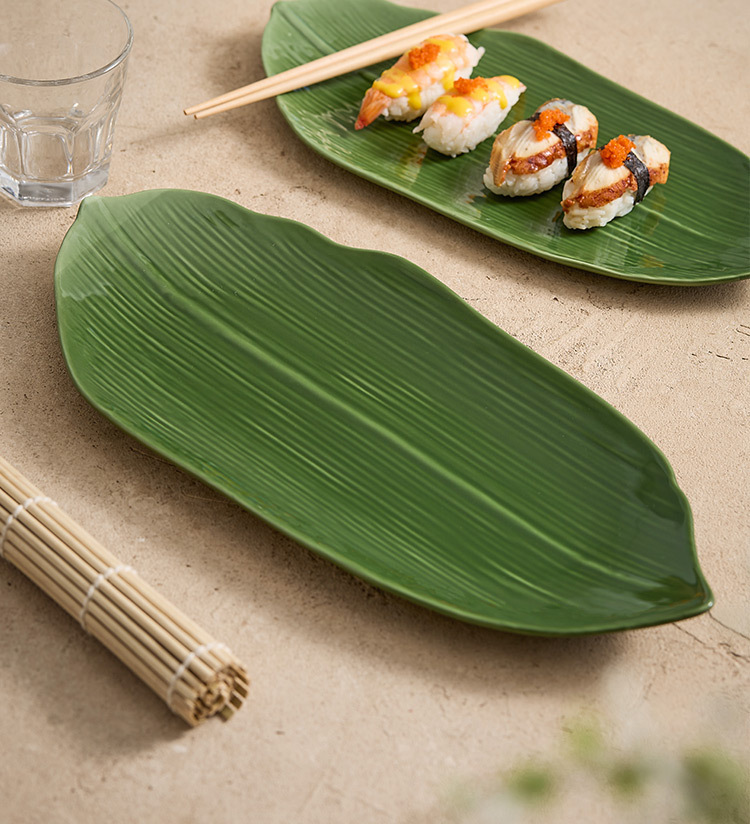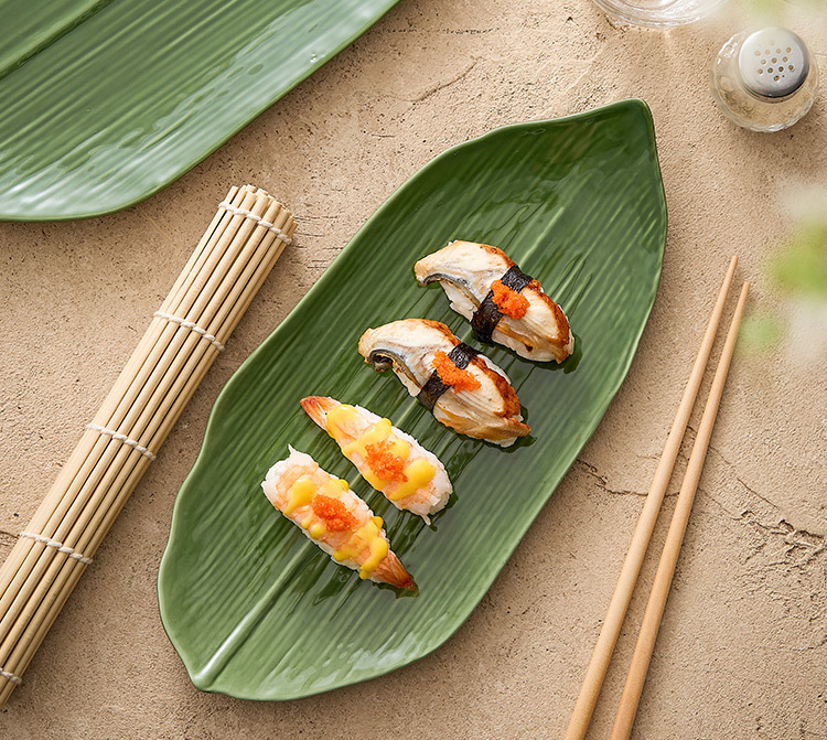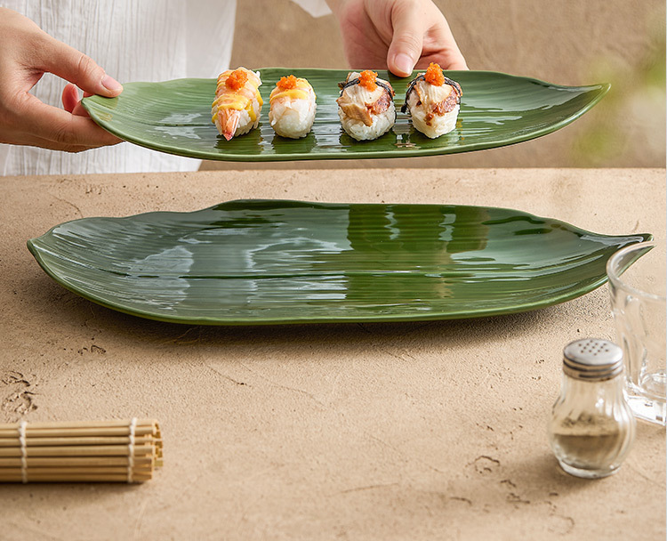 Dehua 세라믹 스시 접시 크리 에이 티브 특별 쌀 빵 잎 접시 직사각형 일본 요리 사시미 접시 과자 디저트 접시