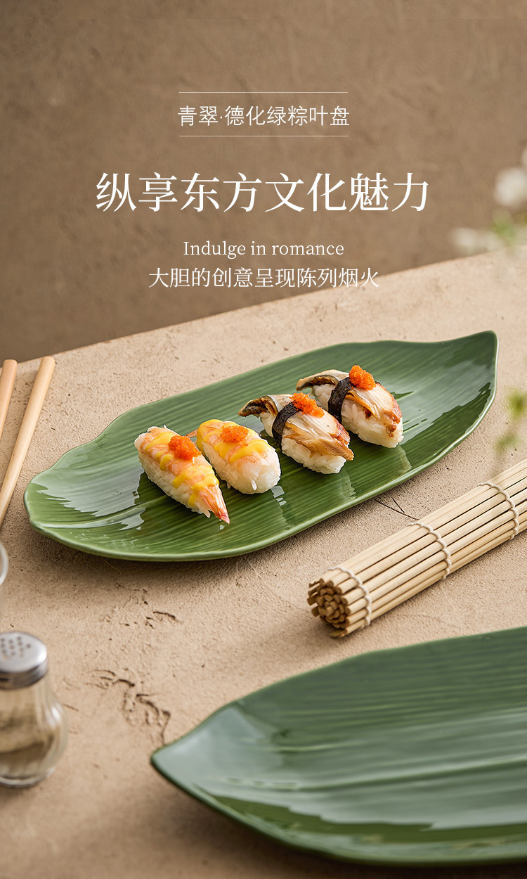 Dehua 세라믹 스시 접시 크리 에이 티브 특별 쌀 빵 잎 접시 직사각형 일본 요리 사시미 접시 과자 디저트 접시스토어 가기