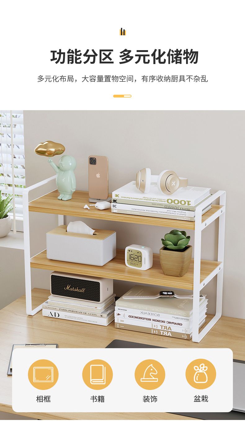 데스크탑 책장 철제 테이블 다층 스토리지 랙 작은 선반 학생 책상 정리 및 보관 계층형 더블 레이어