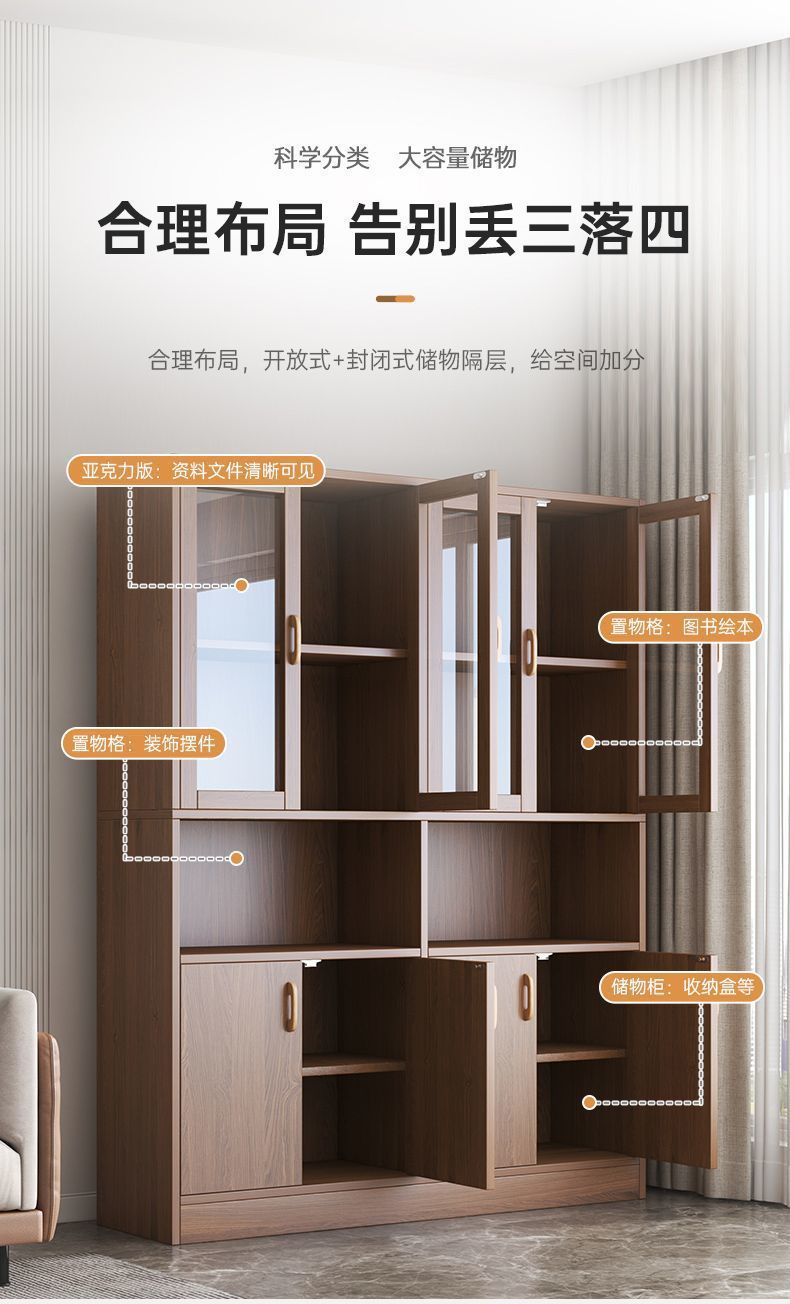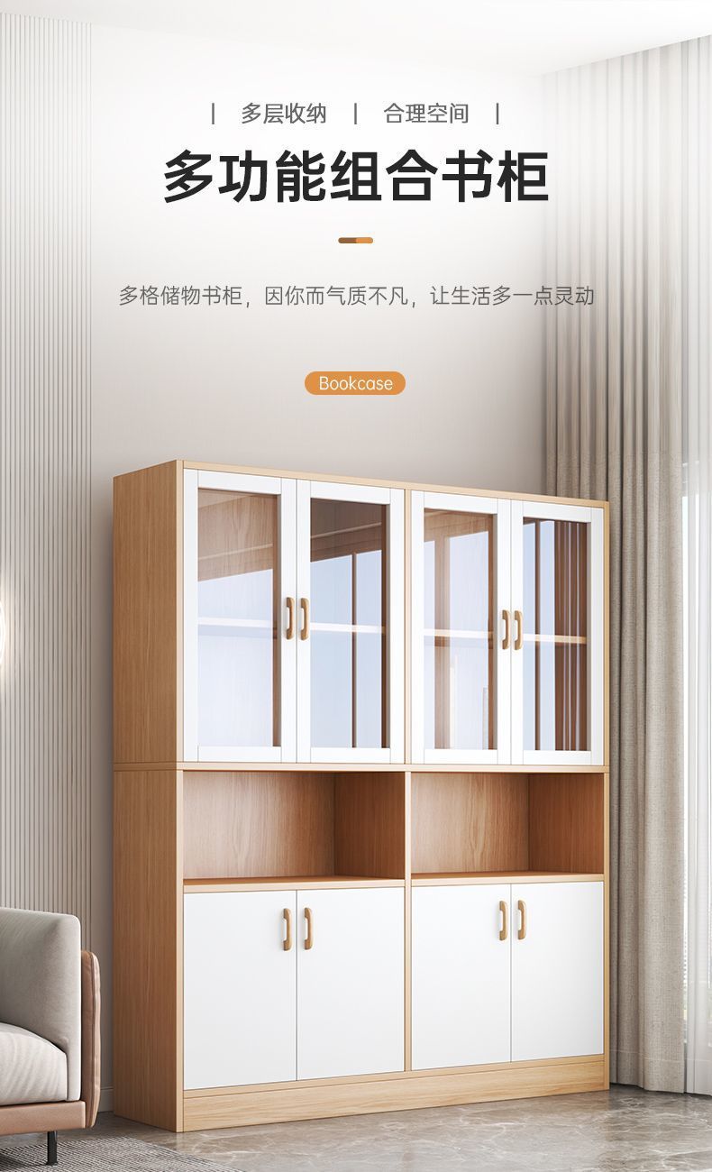 책장 수납 선반 홈 거실 벽걸이형 간단한 방진 도어 책장 바닥 사무실 수납 수납 캐비닛