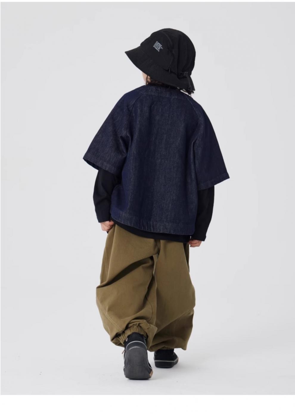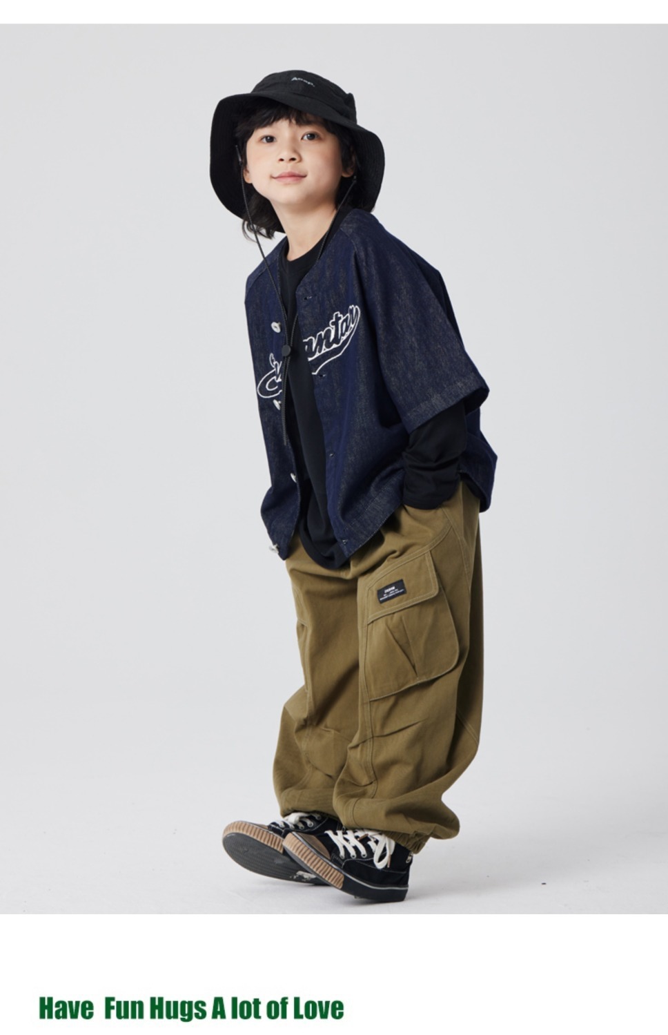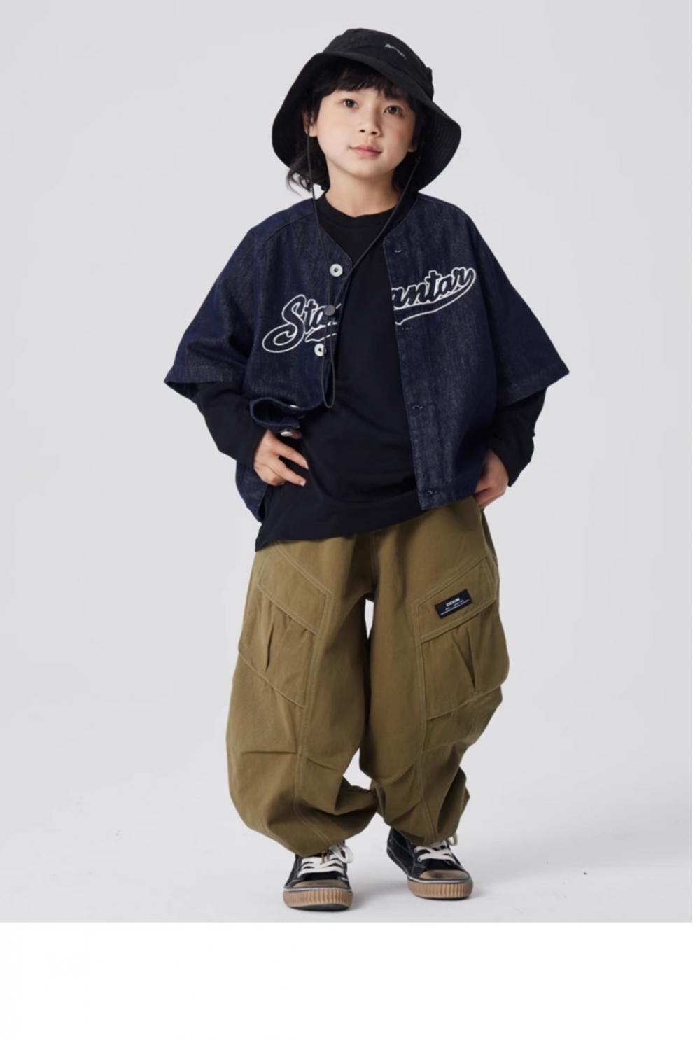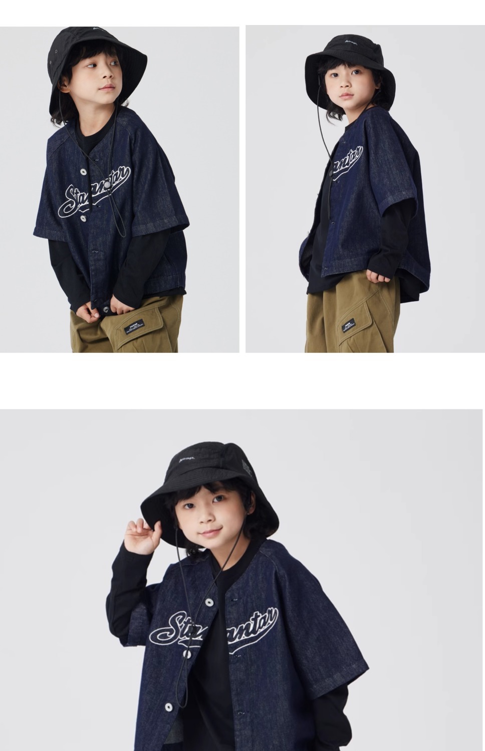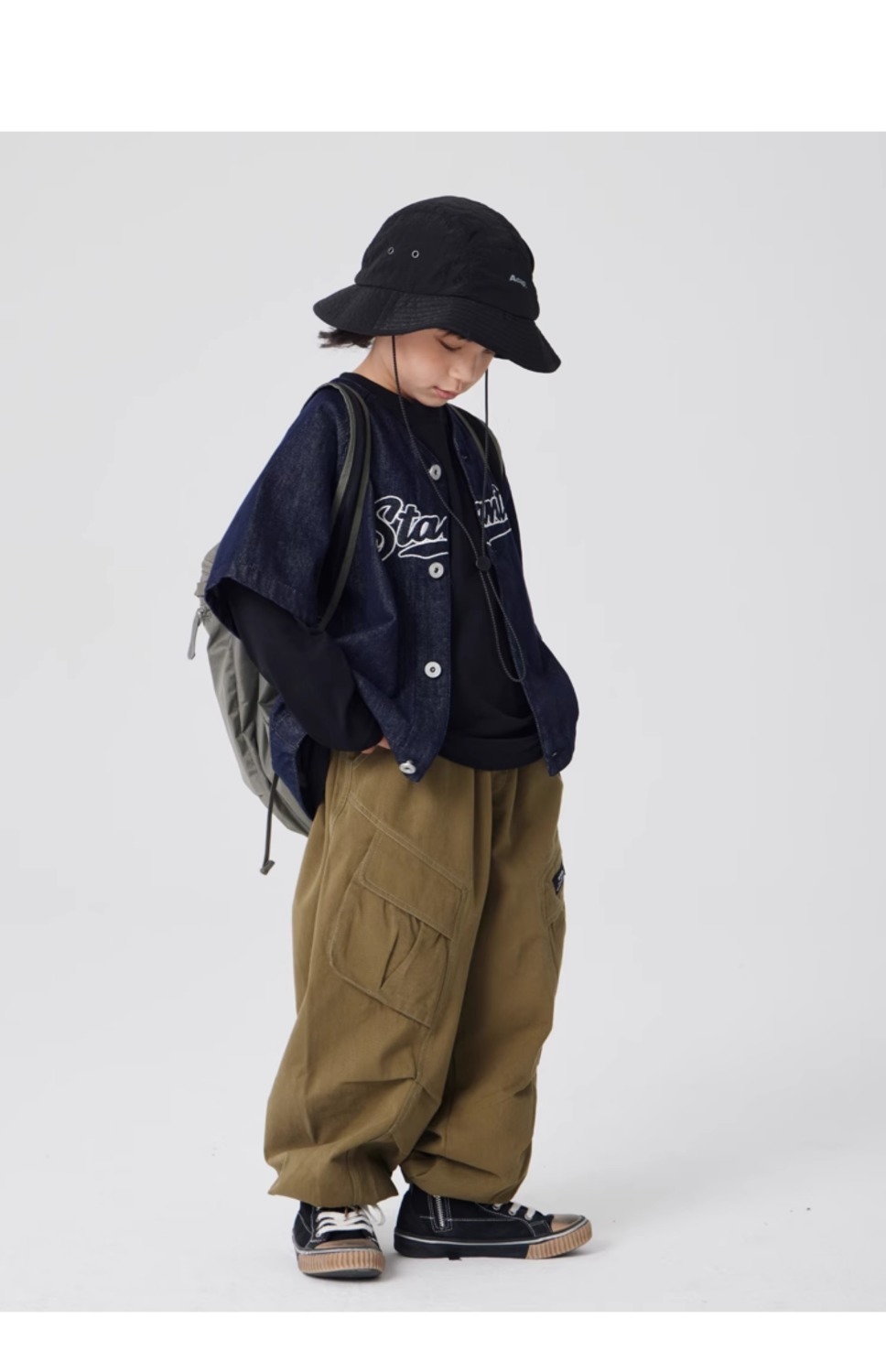 아동복 미국 복고풍 비 페이딩 데님 소년 소녀 조끼 재킷 중대형 어린이를위한 잘 생기고 트렌디 한