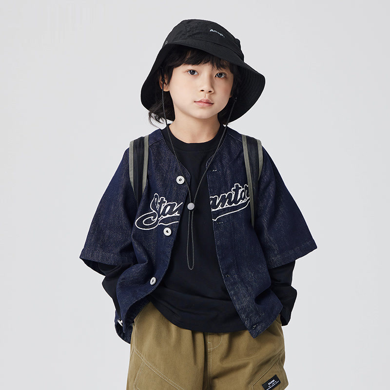 아동복 미국 복고풍 비 페이딩 데님 소년 소녀 조끼 재킷 중대형 어린이를위한 잘 생기고 트렌디 한스토어 가기