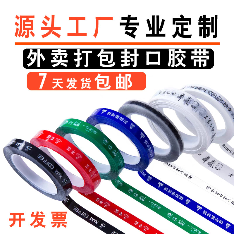 테이크아웃 테이프 맞춤형 로고 커피 포장 씰링 스티커 좁은 투명 테이프 인쇄 누출 방지 씰링 테이프