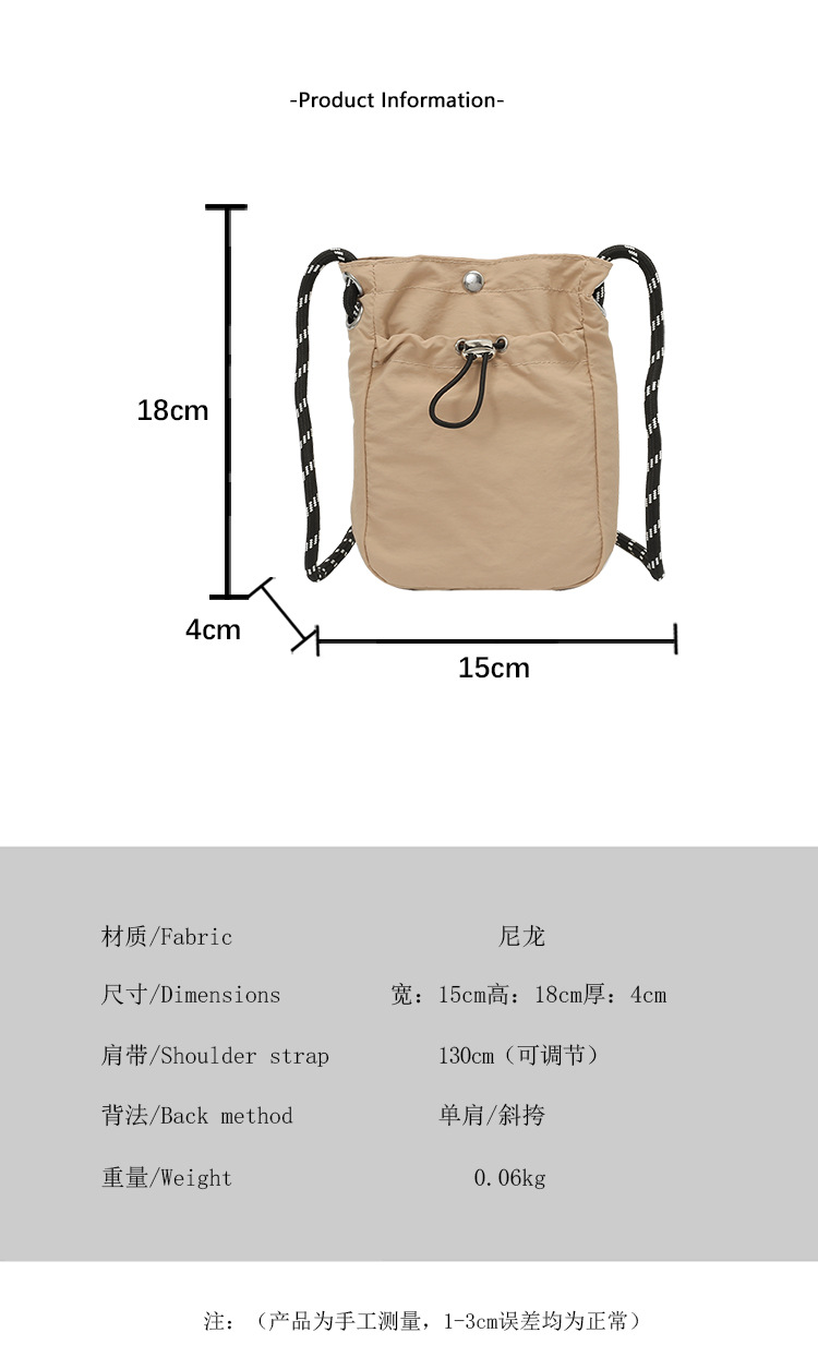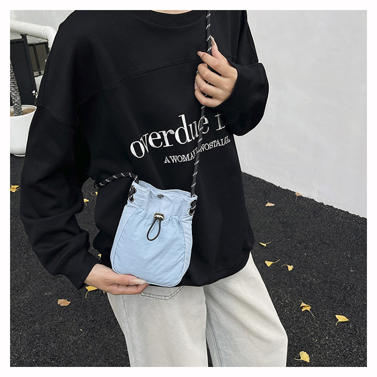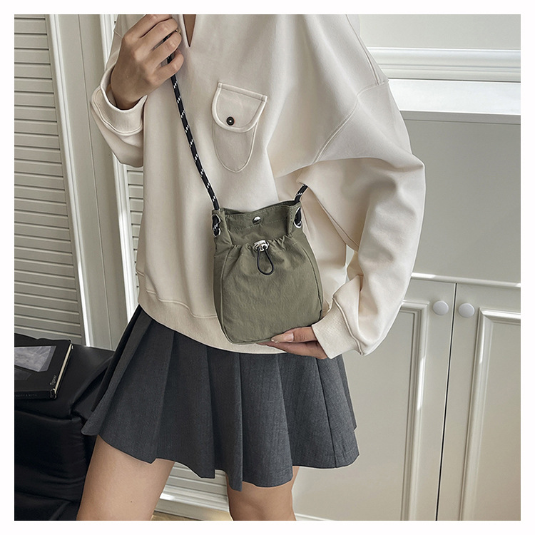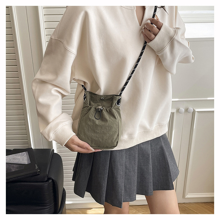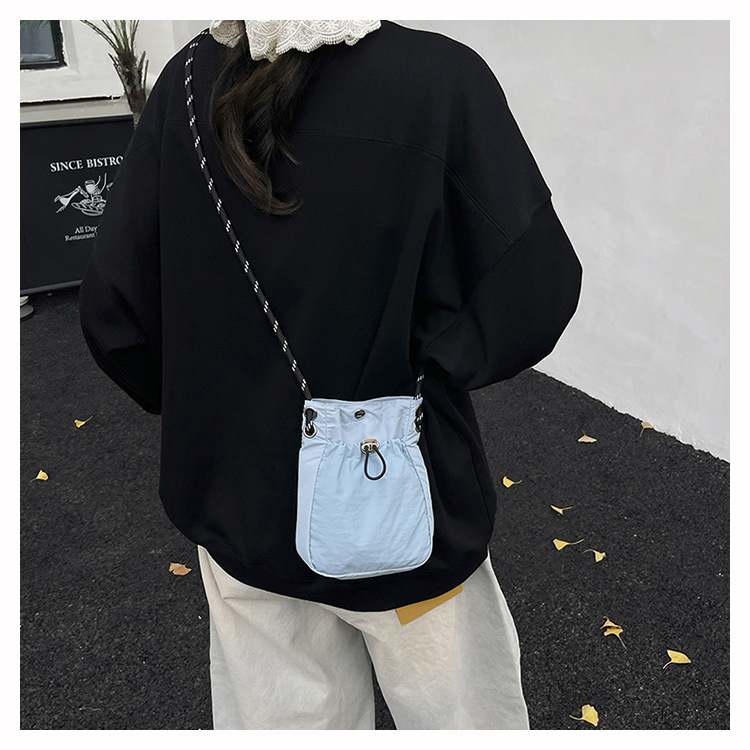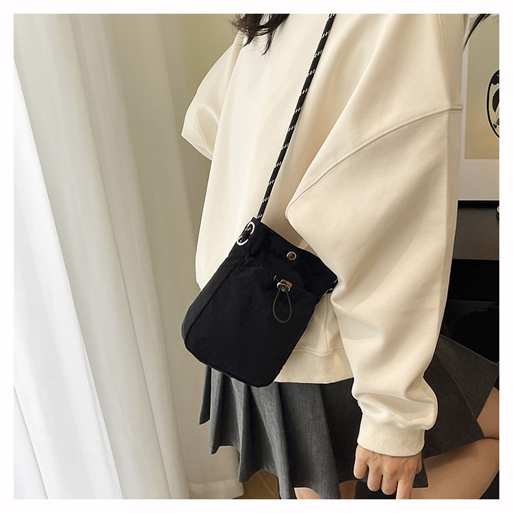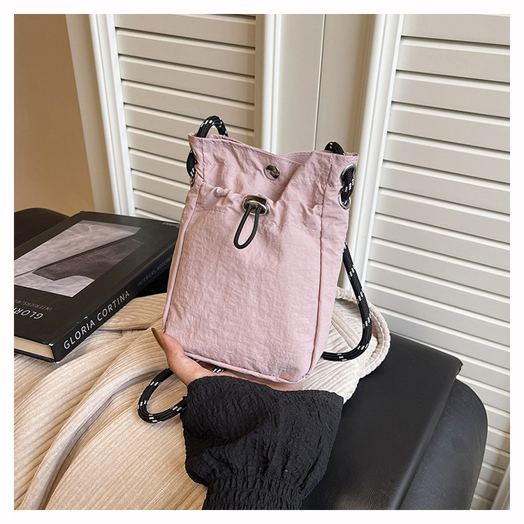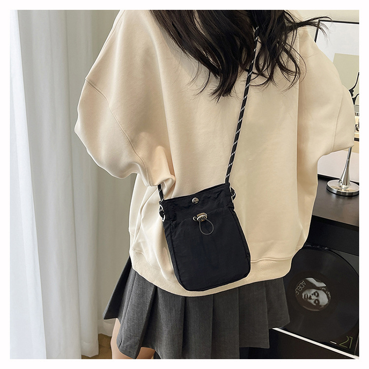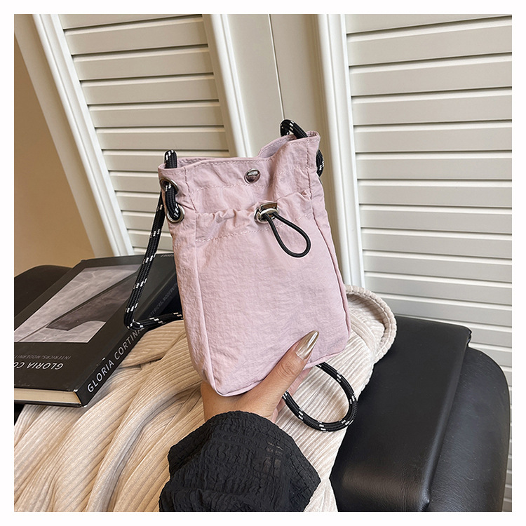세련된 드로스트링 디자인 미니 사각형 가방 야외 소형 휴대용 휴대폰 가방 남성과 여성 캐주얼 어깨 크로스 바디 백스토어 가기