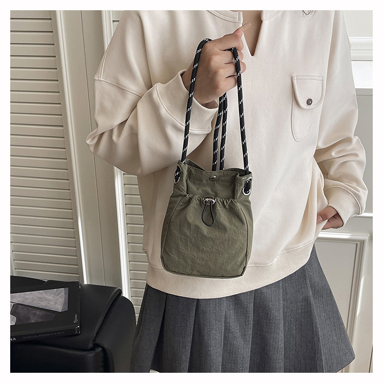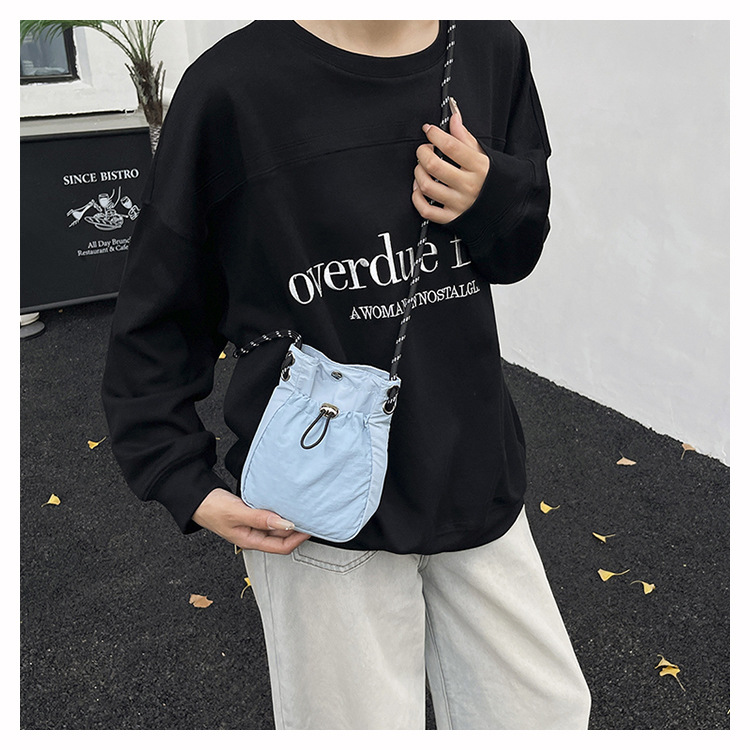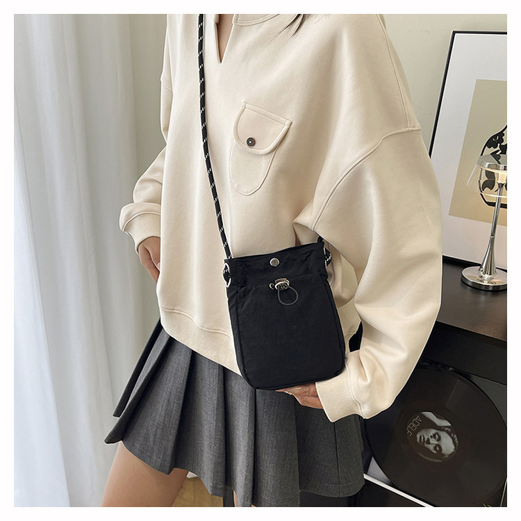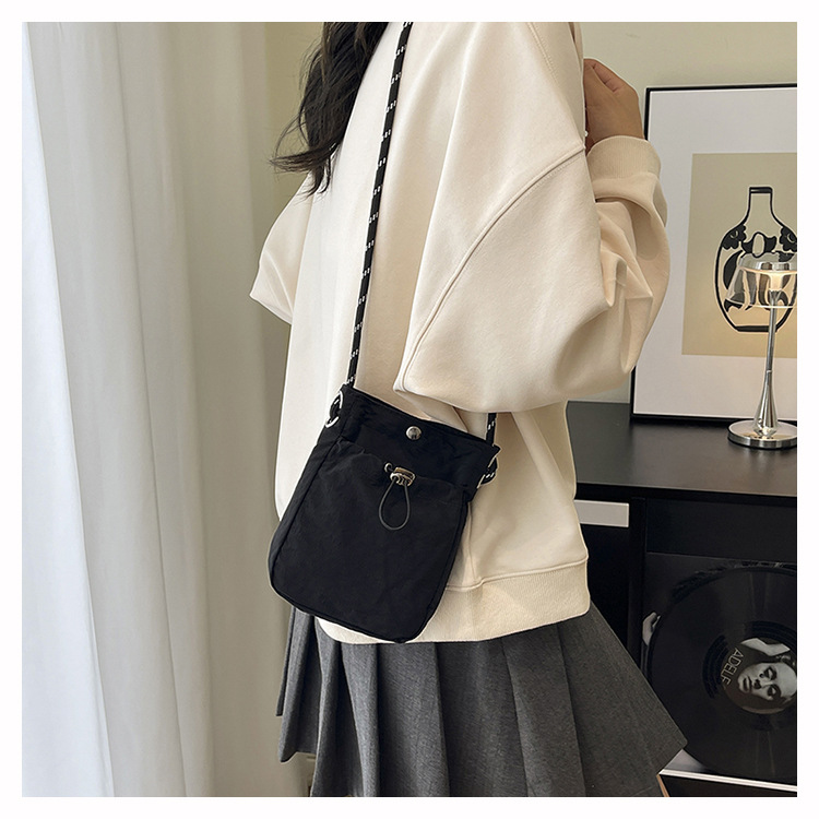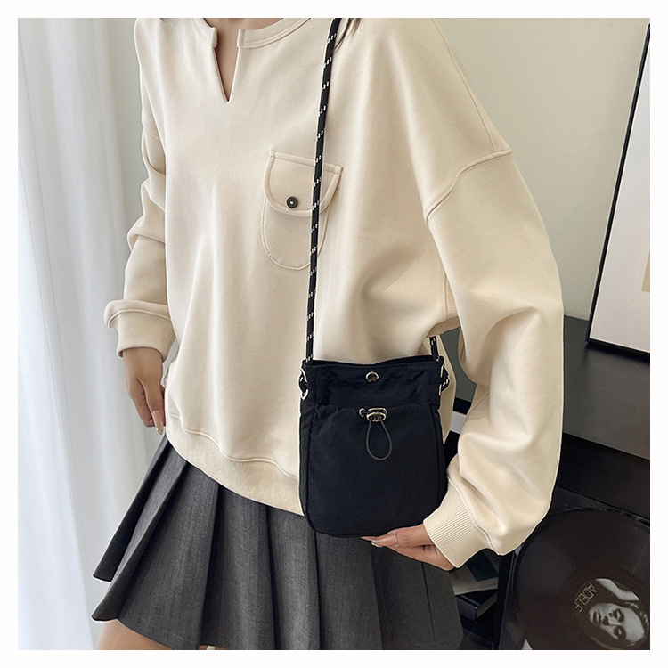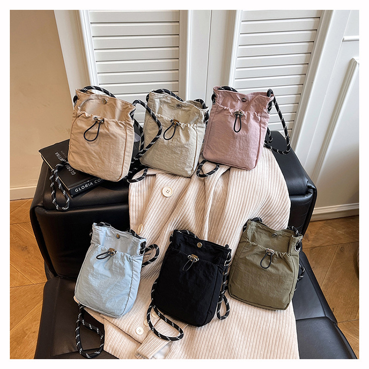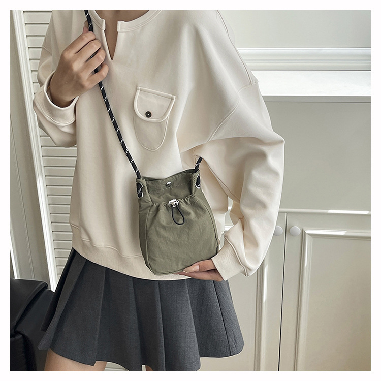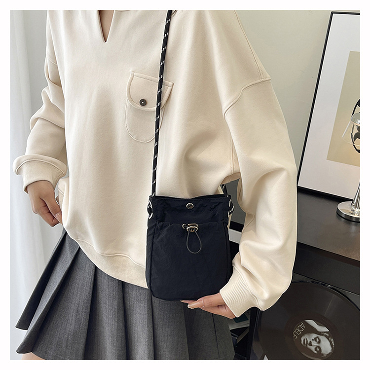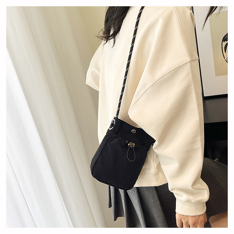 세련된 드로스트링 디자인 미니 사각형 가방 야외 소형 휴대용 휴대폰 가방 남성과 여성 캐주얼 어깨 크로스 바디 백스토어 가기