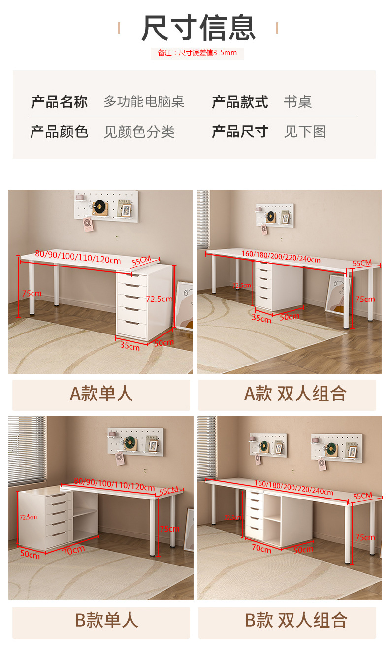 간단한 가정 학생 학습 테이블 코너 서랍 책상 침실 메이크업 테이블 싱글 더블 사무실 컴퓨터 테이블스토어 가기
