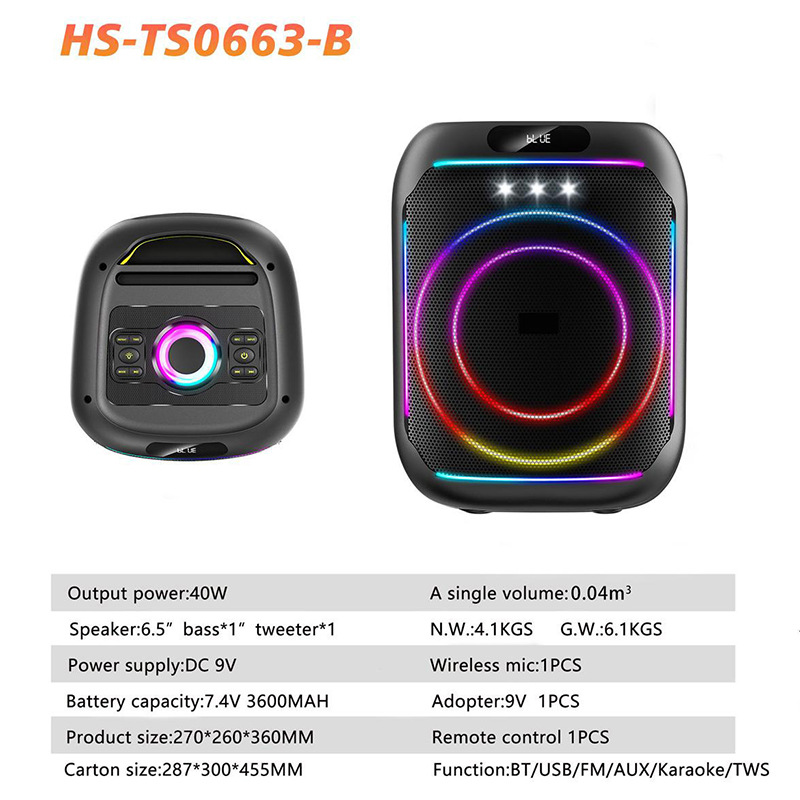 功能:BT/USB/TF/FM/AUX/Karaoke/TWS
