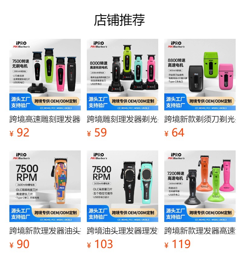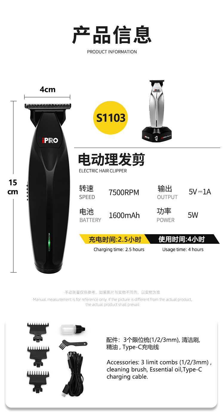 IPRO2025 새로운 국경 간 전기 머리 깎기 전기 머리 깎기 고속 푸시 조각 가위 충전식 헤어 살롱 전용스토어 가기