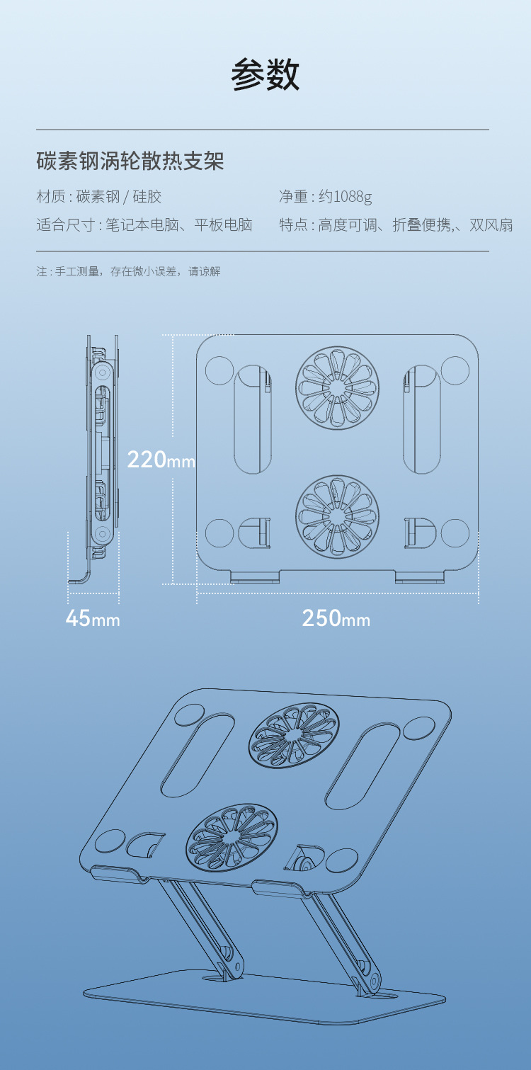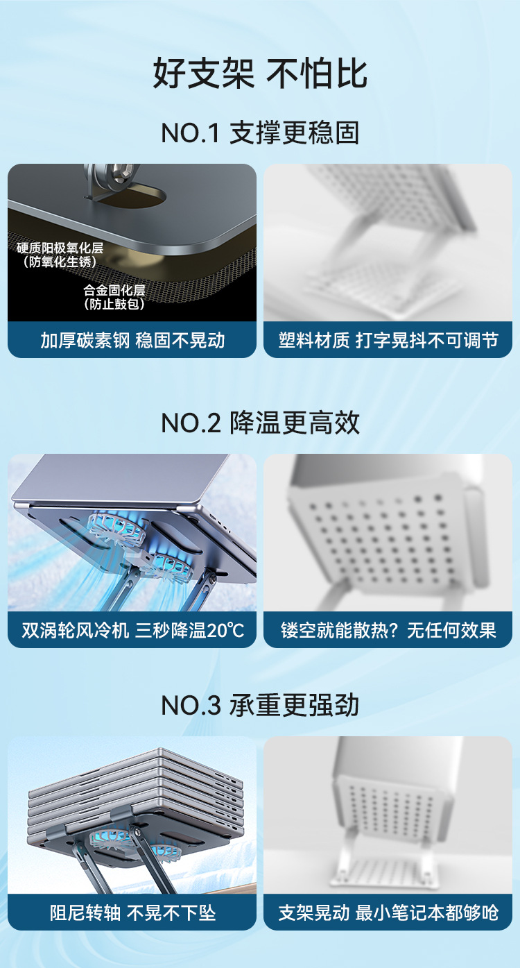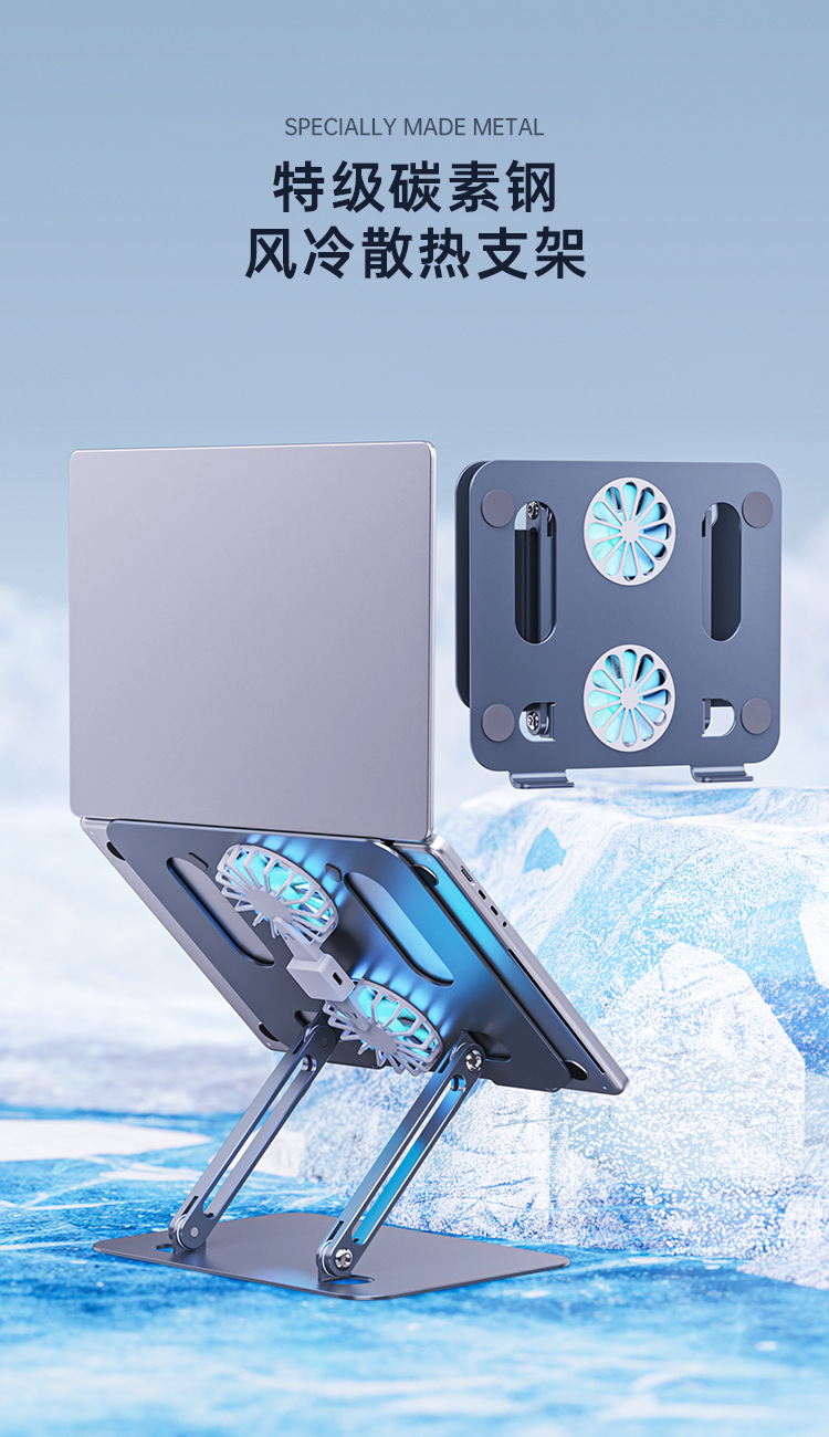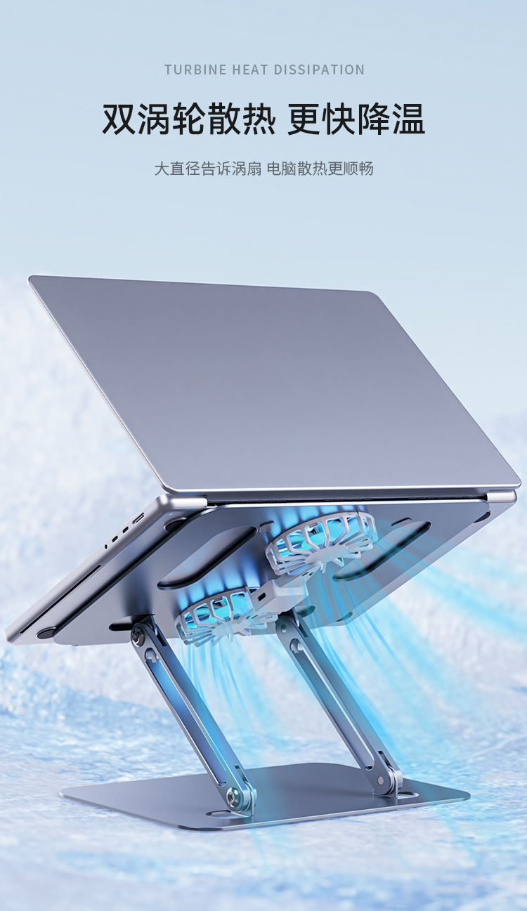 Boneruy 더블 팬 냉각 컴퓨터 스탠드 접이식 저장 알루미늄 합금 노트북 스탠드